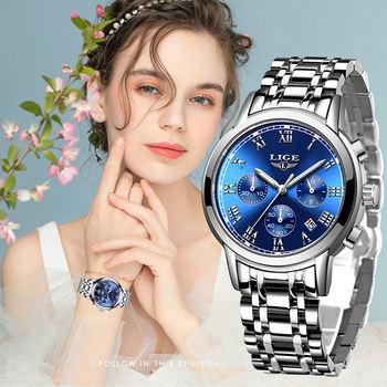 LIGE Fashion Luxury Woman Watch Simple Elegant Stainless Steel Casual Quartz Watches for Women Calendar Ladies Romantic Gift New