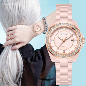 LIGE Brand Woman Watch Ceramics Strap Simple Waterproof Calendar Week Quartz Watches for Women Elegant Ladies Bracelet for Gifts