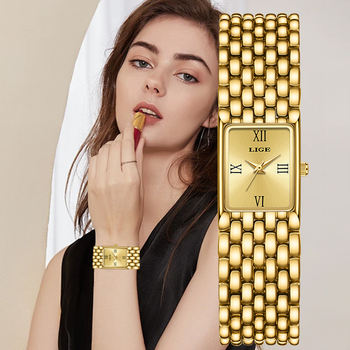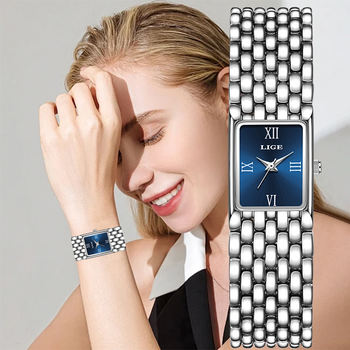 LIGE Top Brand Luxury Woman Watch Elegant Fashion Casual Square Bracelet Quartz Watches for Women Analog Movement Ladies Clocks