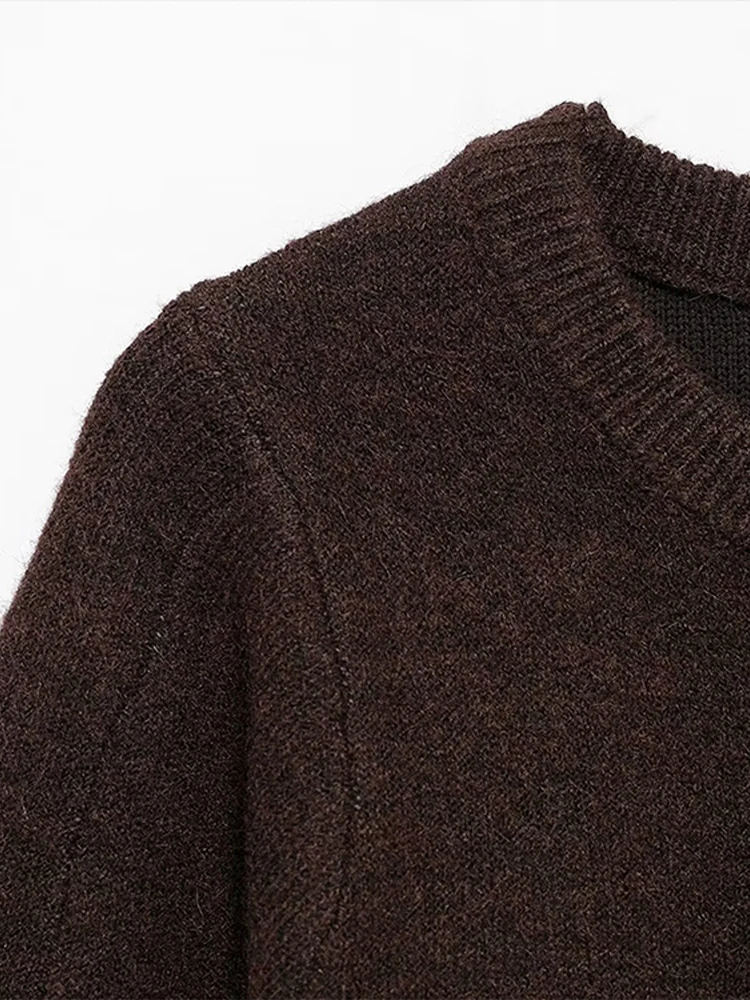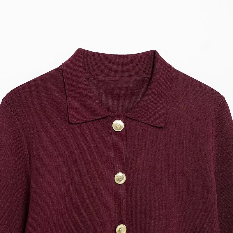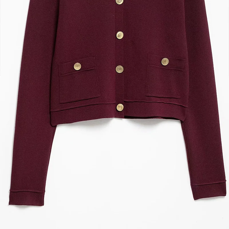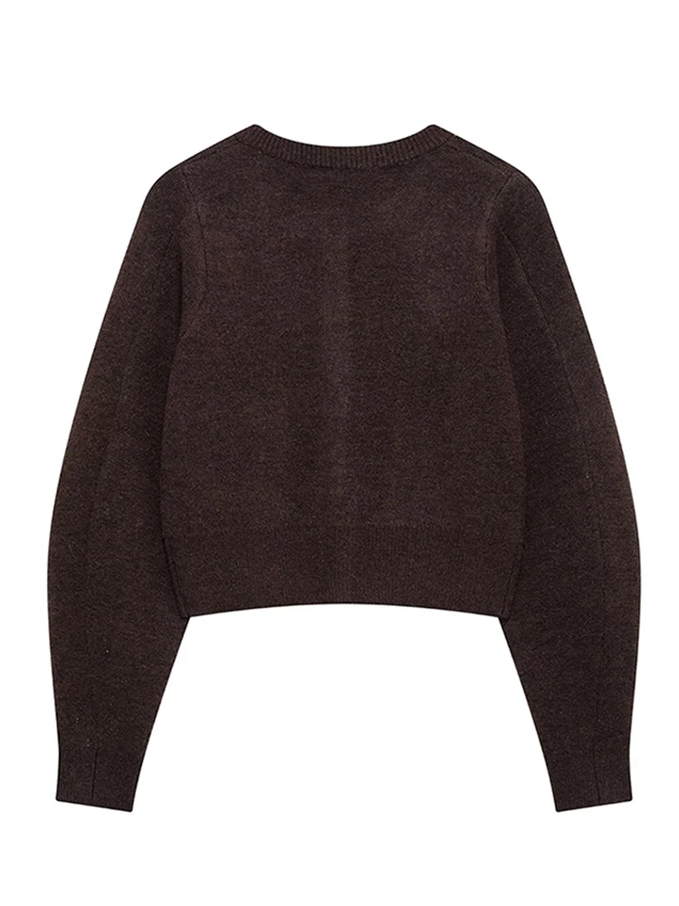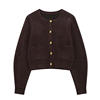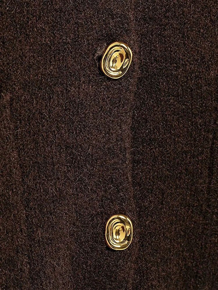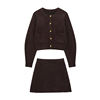 Elegant Brown Skirt Suits Knitted O-Neck Long Sleeve Metal Button Cardigan High Waist A-line Mini Skirts 2025 Spring Lady Outfit