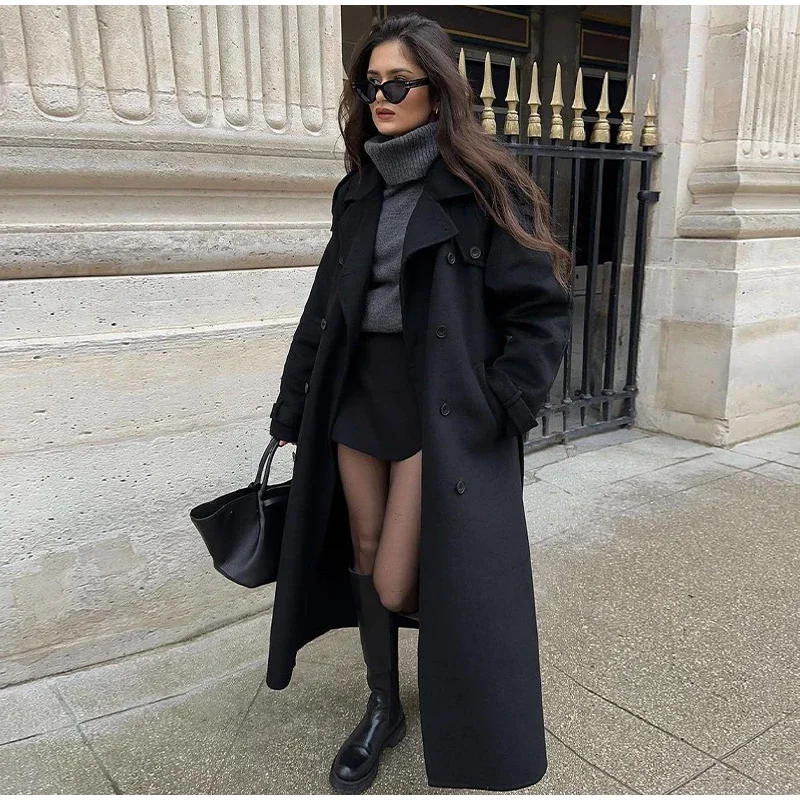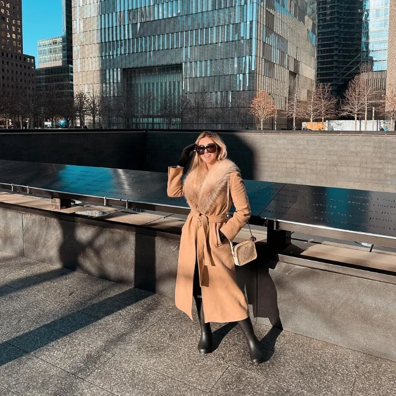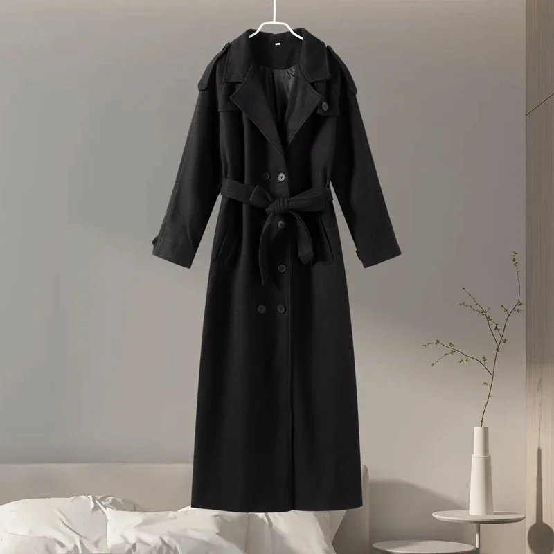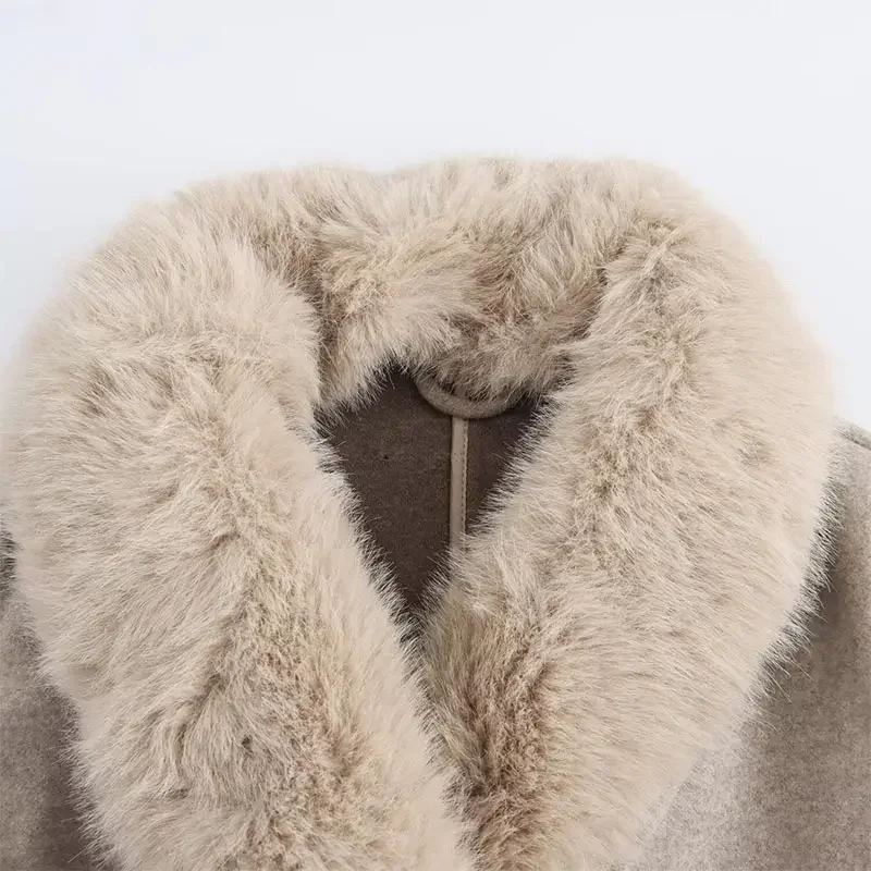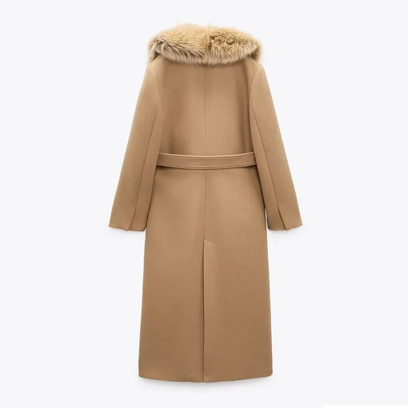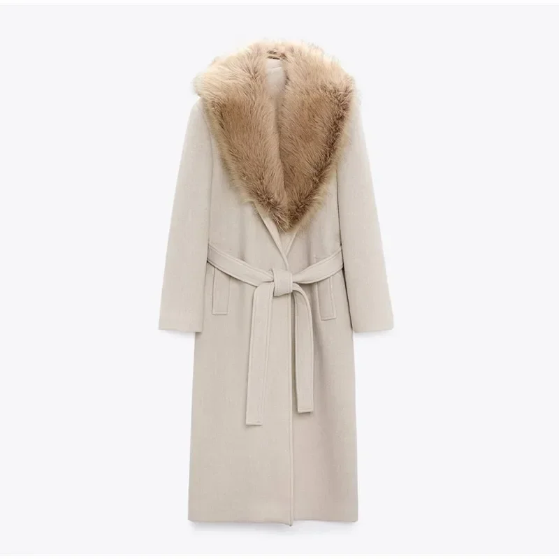 Elegant Fur Lapel Maxi Coats Women High Street Lace Up Full Sleeve Pocket Wool Long Overcoats 2024 Winter New Lady Outwear