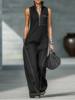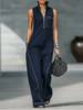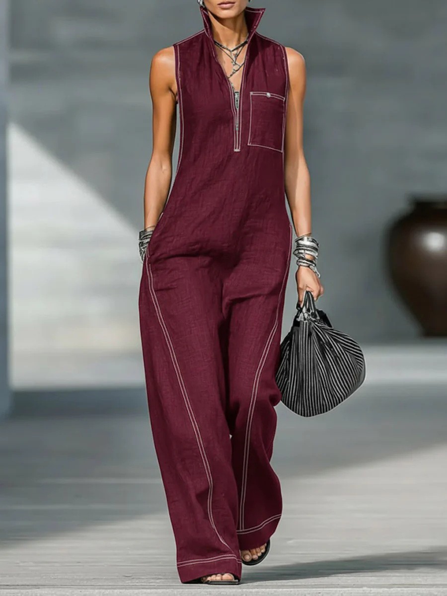 Elegant High Street Linen Cotton Jumpsuit Casual Sleeveless Stand Collar Pockets Loose Party Playsuits Fashion Solid Romper