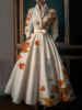 Elegant Leaf Pattern Maxi Dresses Multicolor Stand Collar Long Sleeve Cotton Long Dress Party Wedding Evening Dress 2024