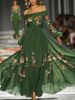 Elegant Long Sleeve Off The Shoulder Long Dress Lantern Sleeve Floral Print High Waist Woman Dress Autumn Strapless Prom Dress