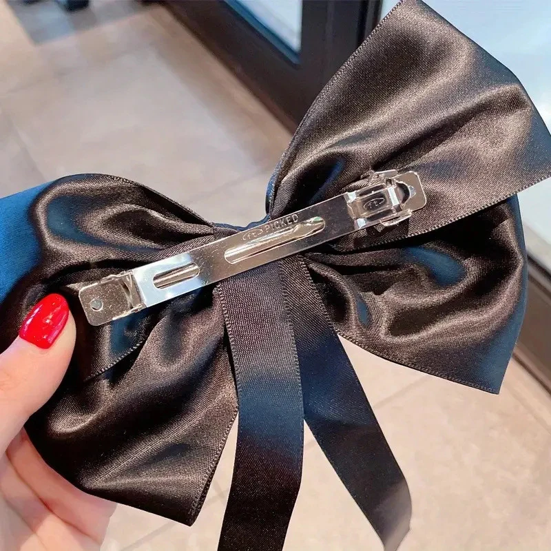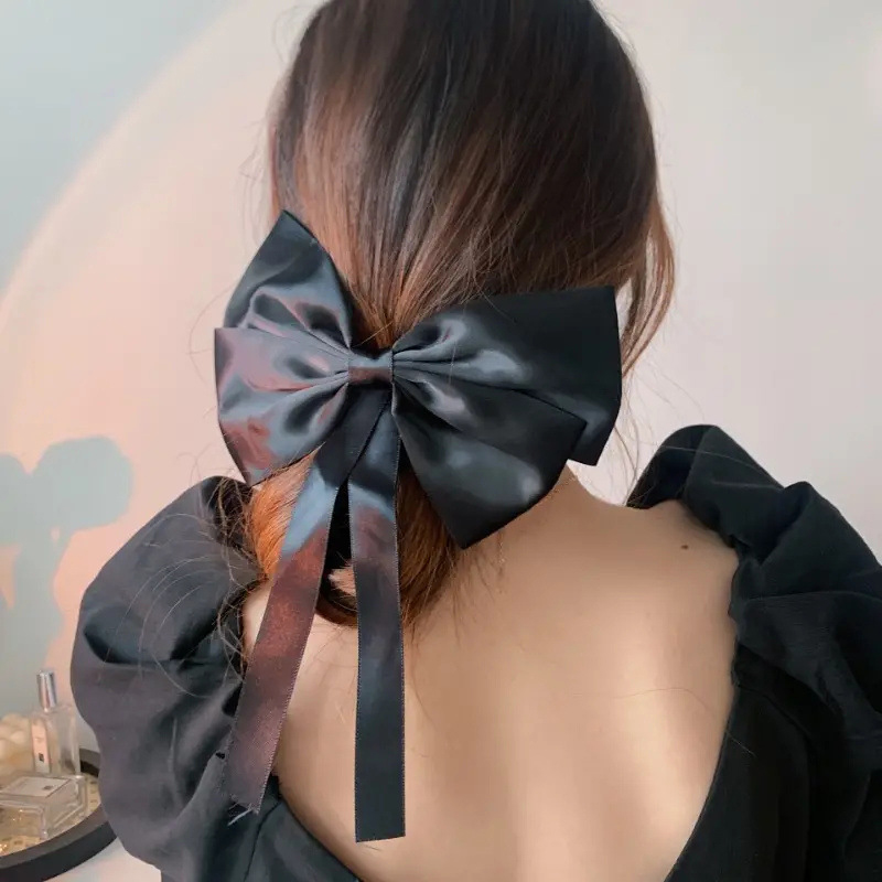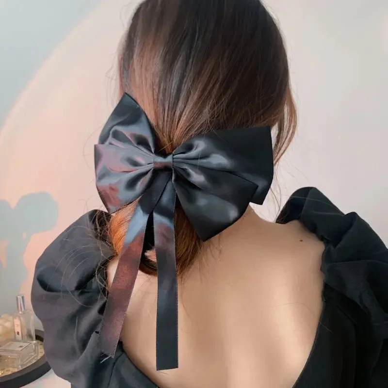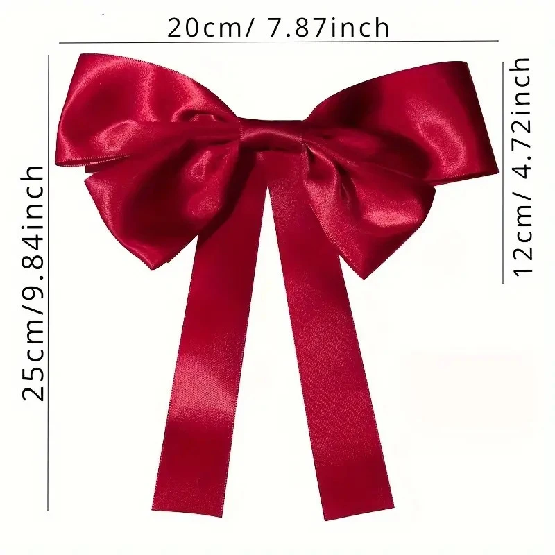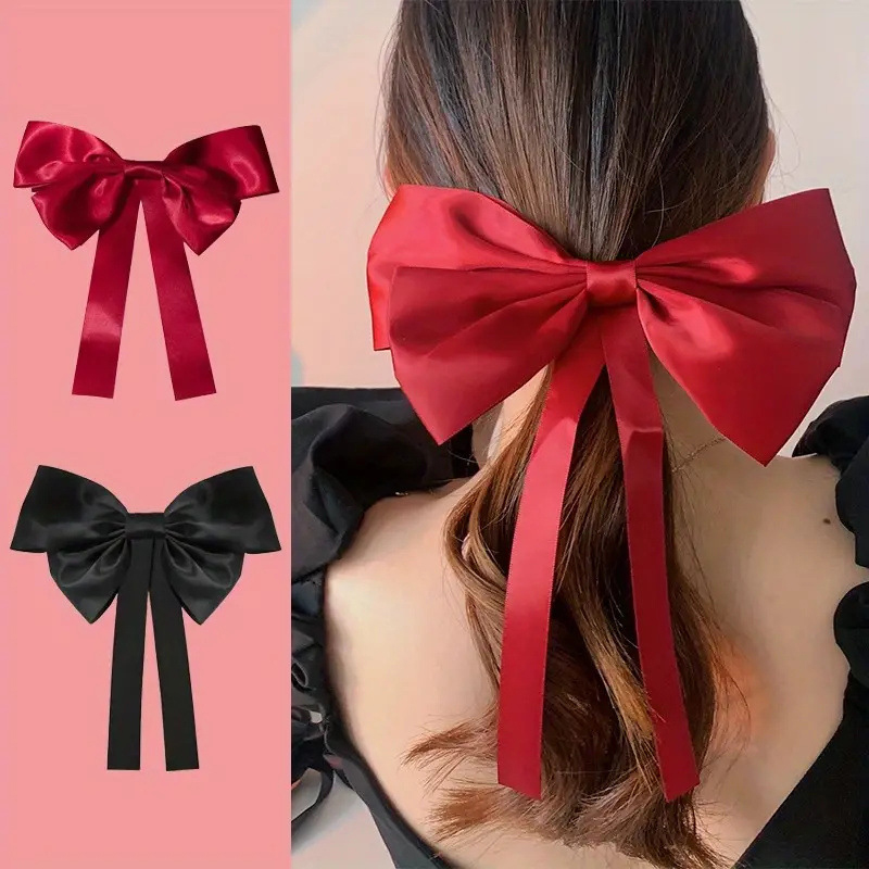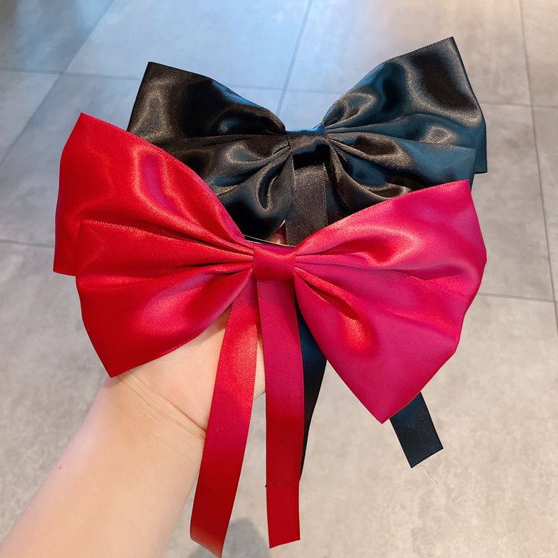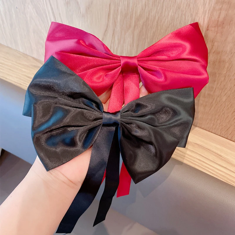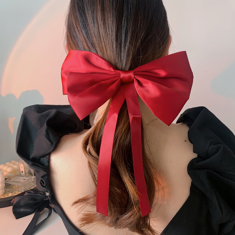 Elegant Red Streamer Large Bow Ribbon Hair Clip Women Girls Headbands Sweet Solid Satin Ponytail Bow Hairpin Hair Accessories