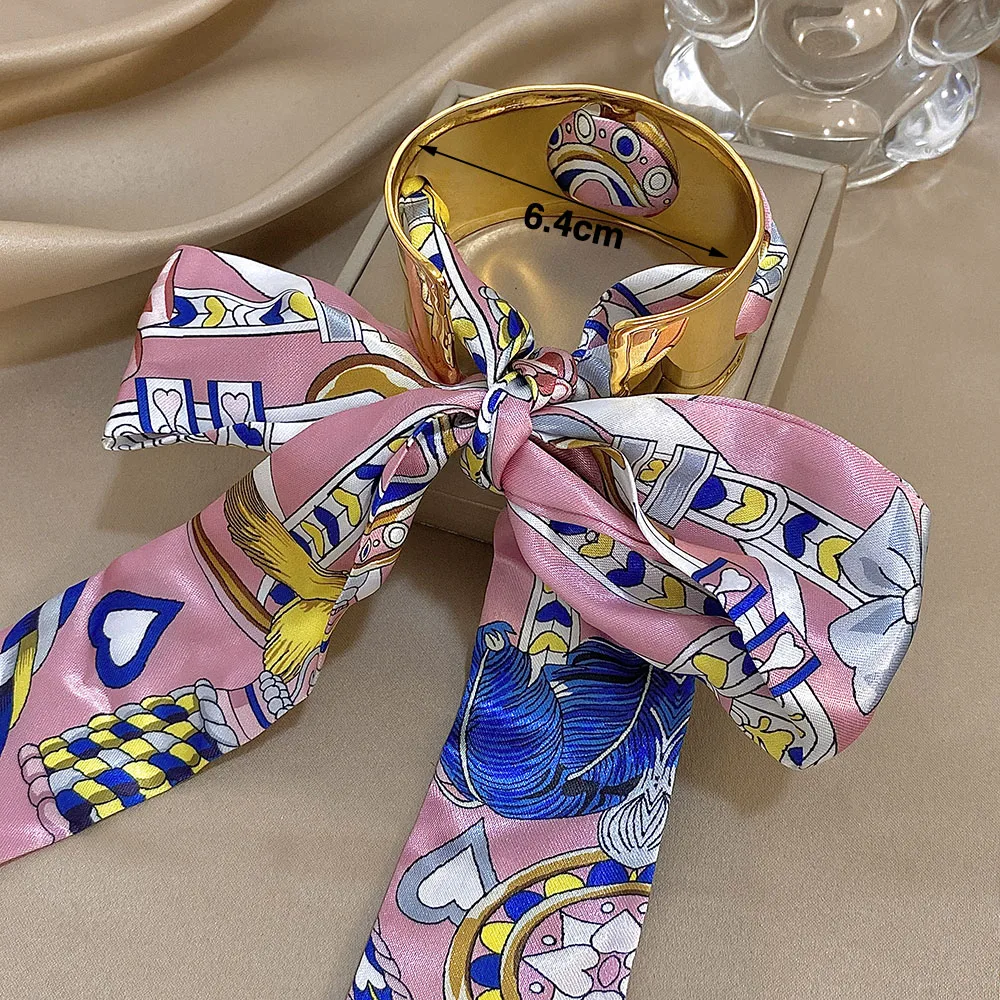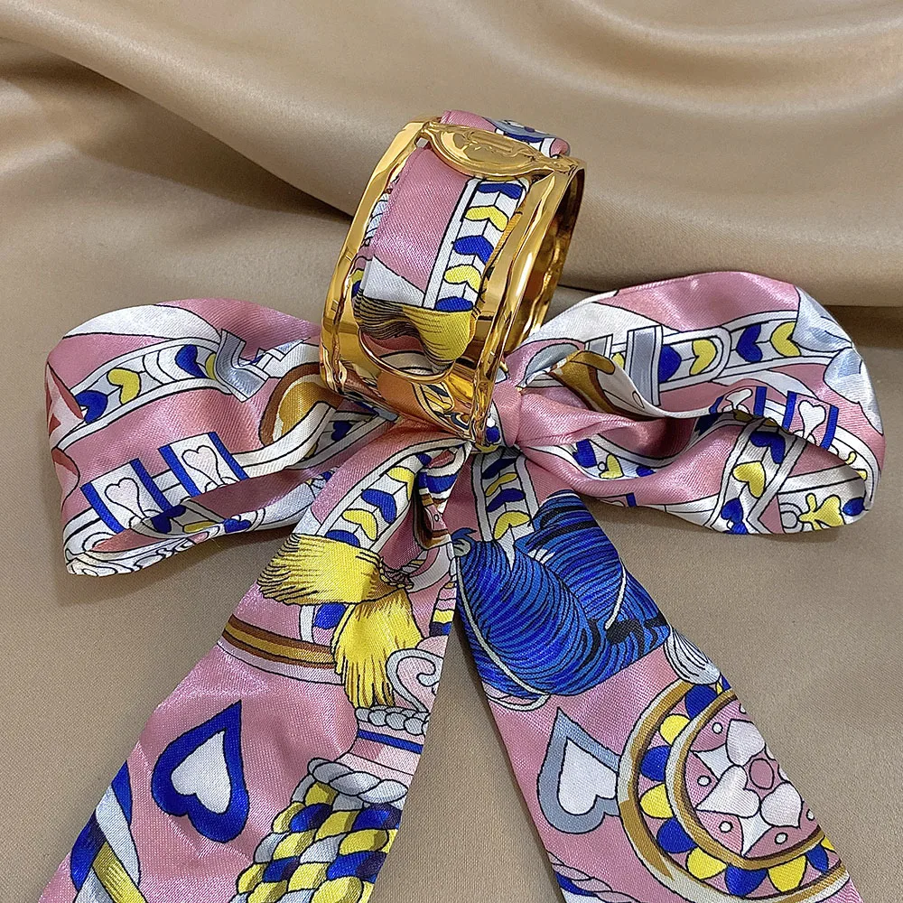 Elegant Ribbon Braided Wrap Stainless Steel Cuff Bracelet for Women Fashion Gold Color Chunky Bangle Bracelets Jewelry Gifts