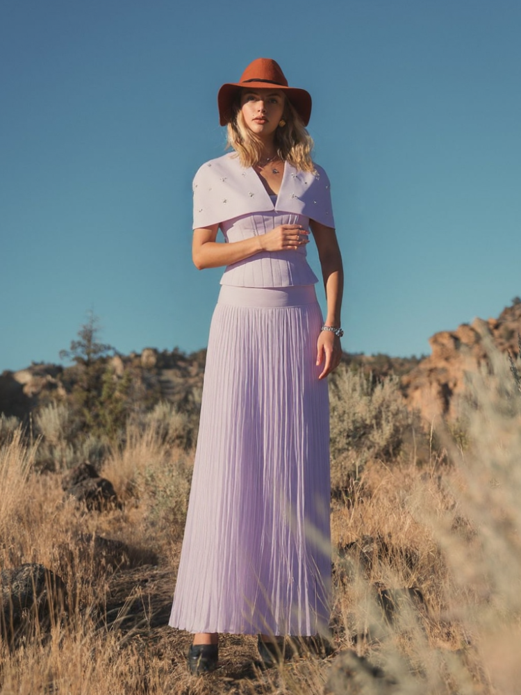 Elegant Shawl Slim Top Pleated Skirt Set Lady Retro Purple Sleeveless Tube High Waist Long Skirts Sets Women Chic Evening Summer