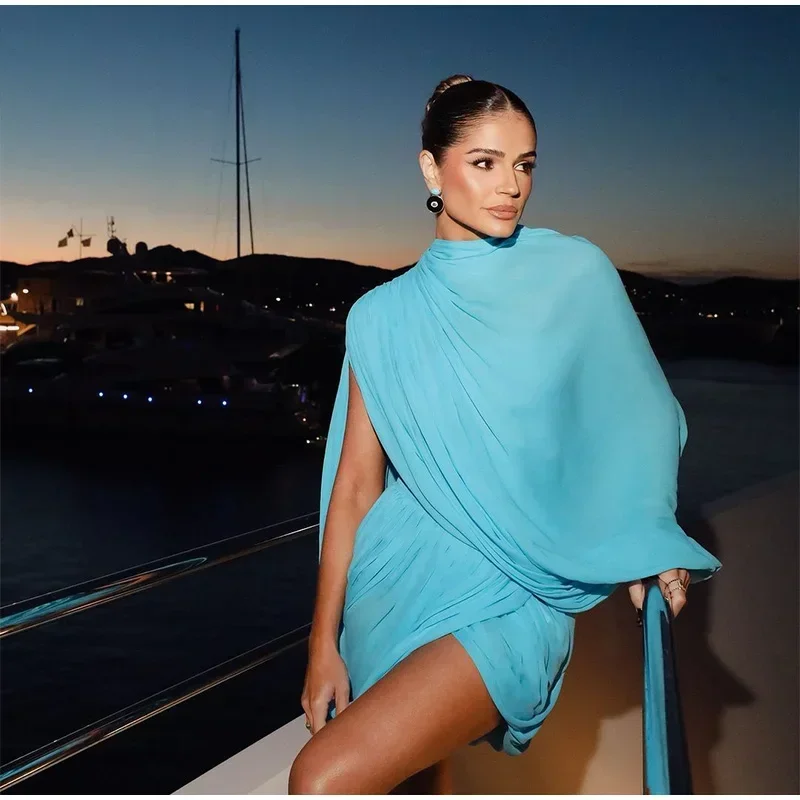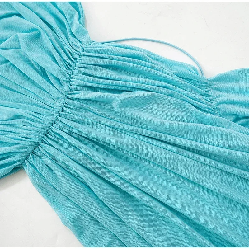 Elegant Tube Top Mesh Shawl Skirts Sets Women Beach Long Sleeve Pleated Asymmetric Skirt Suit 2025 Summer Party Lady Set