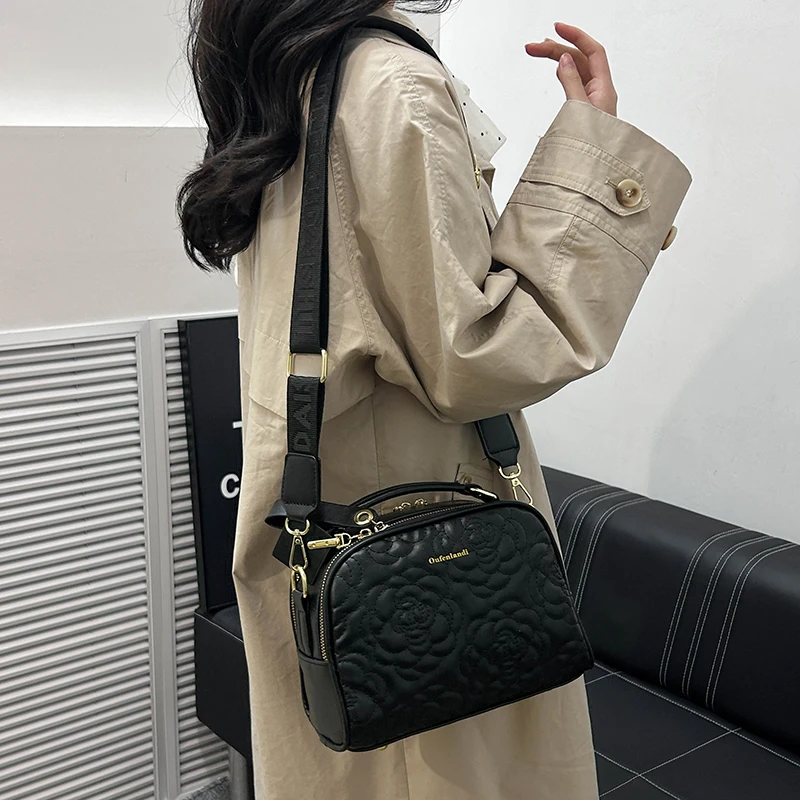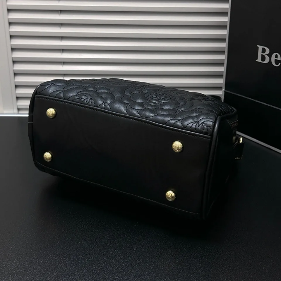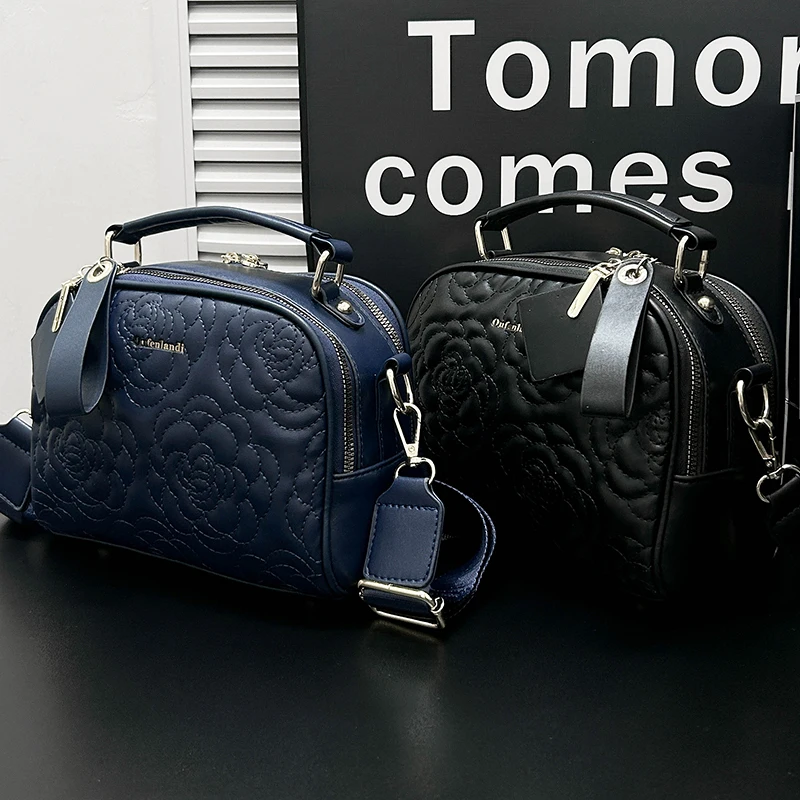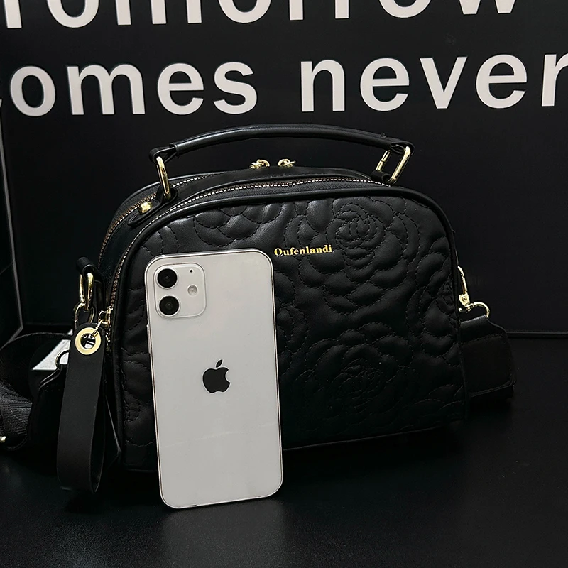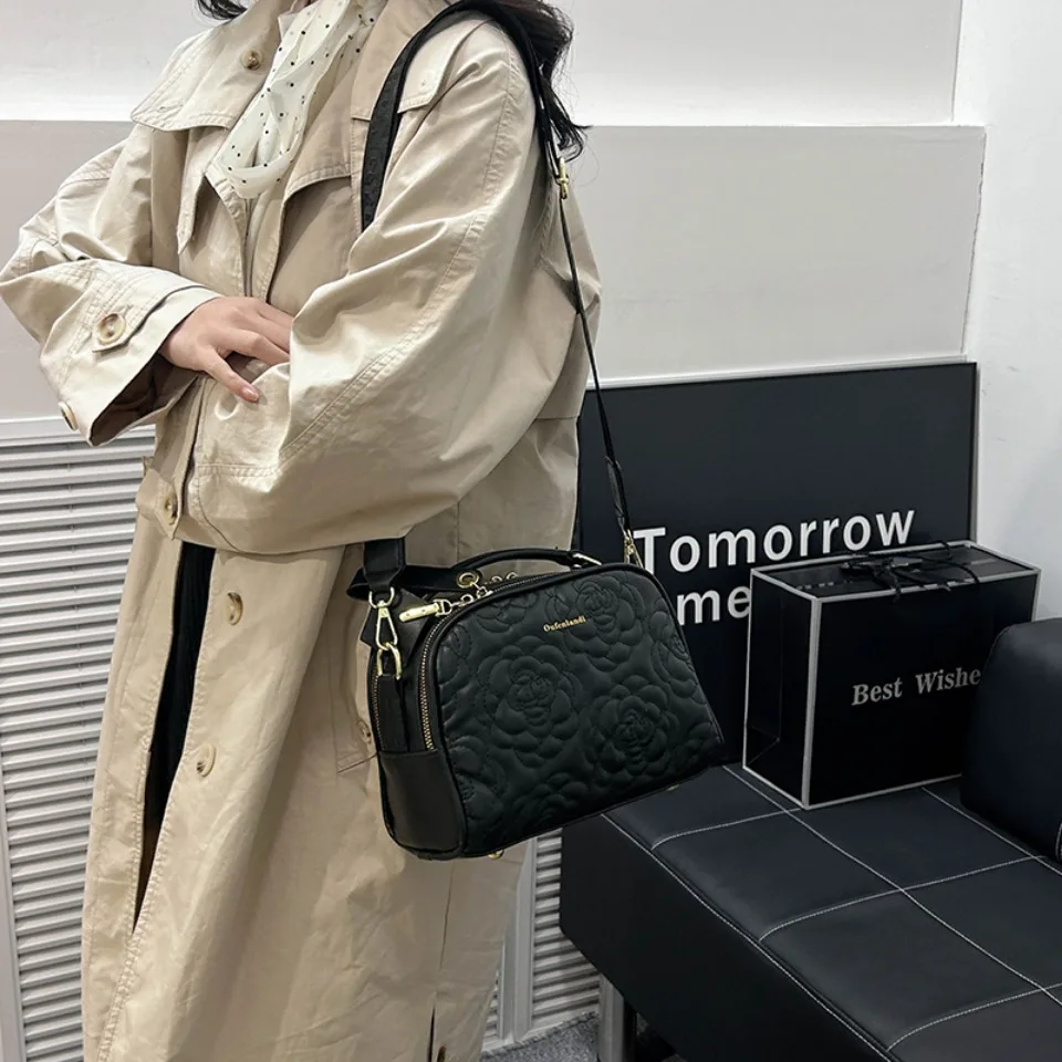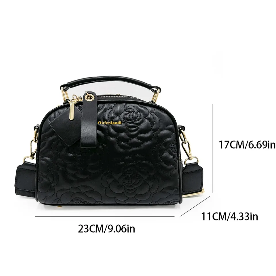 Elegant Women’s Soft Leather Top-Handle Bag Luxury Flower Pattern Design Handbag Ladies Shoulder Crossbody Bag Commuter Sac