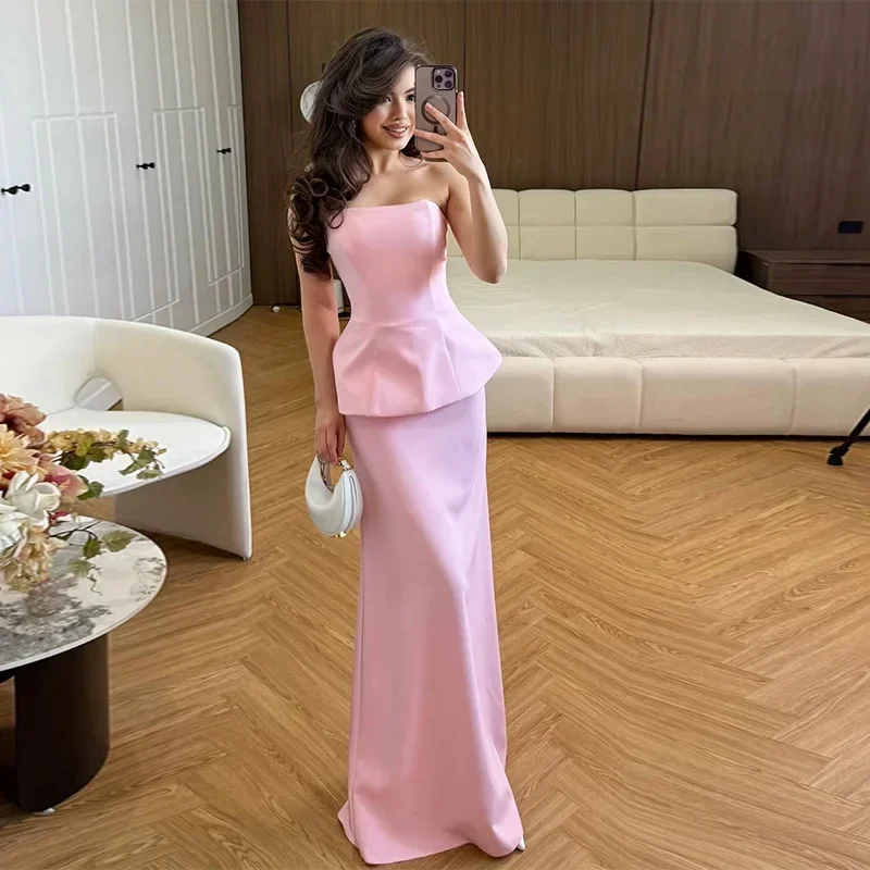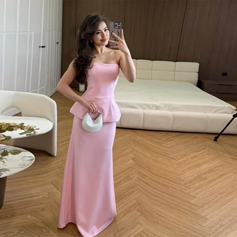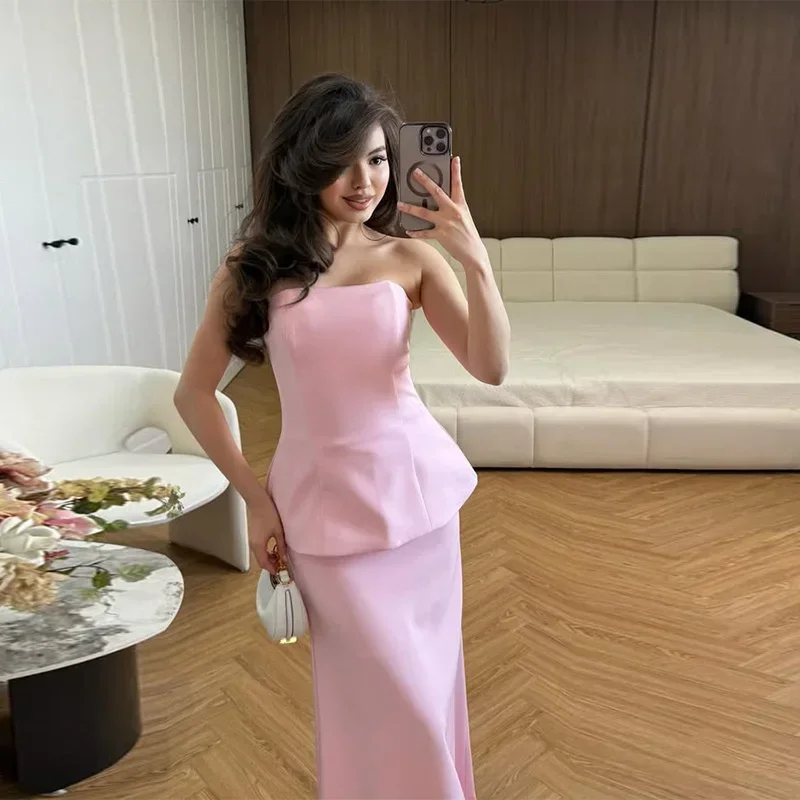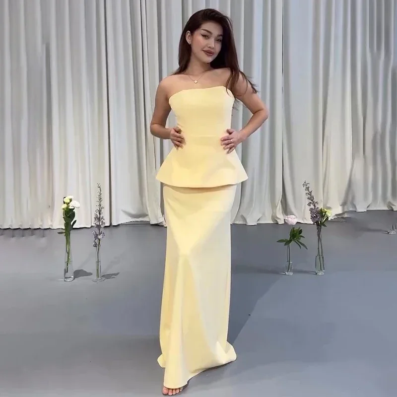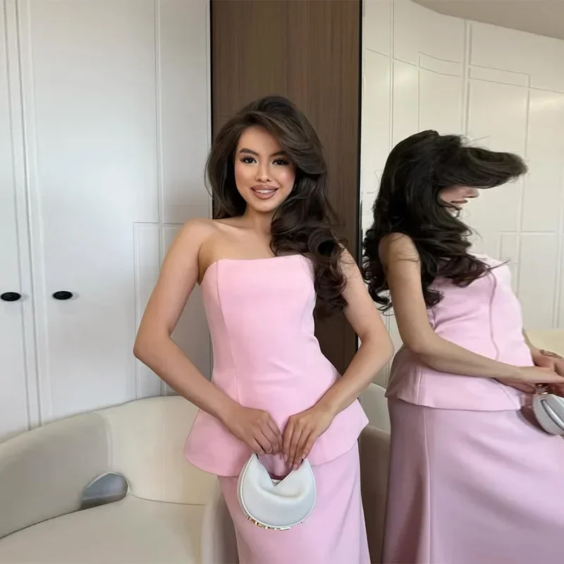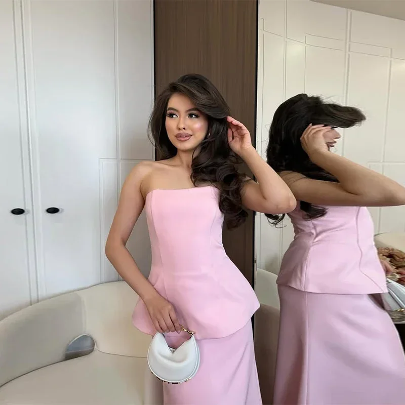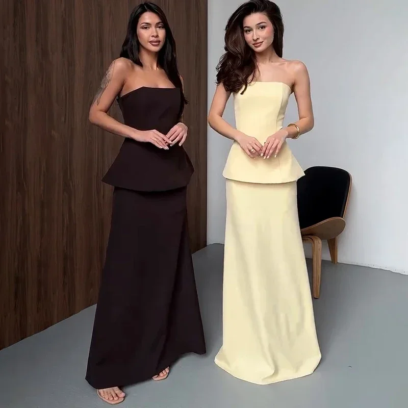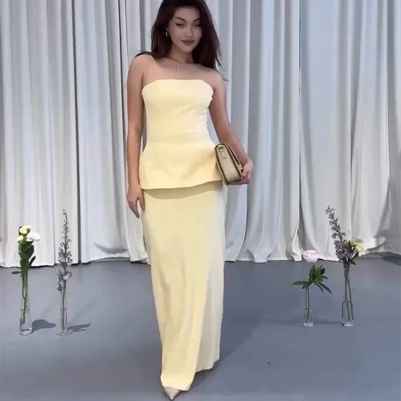 Elegant Women’s Tube Top Skirt Suit Sleeveless Solid Slim Lady Sets 2025 Spring Summer Set Women 2 Pieces Holiday Vacation