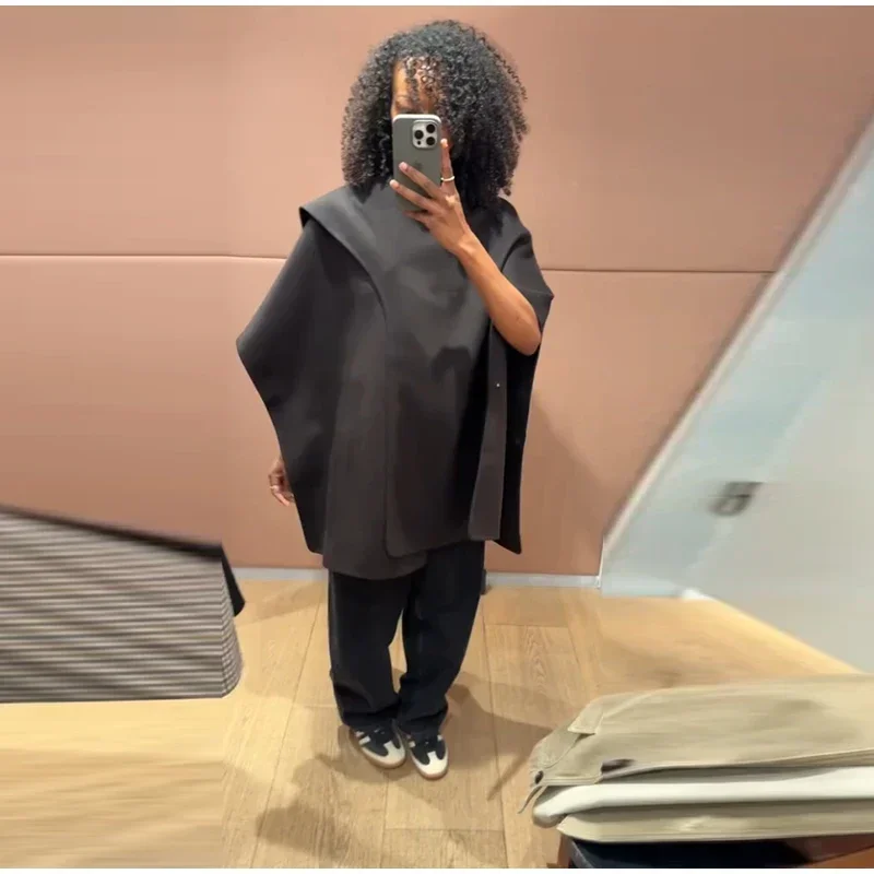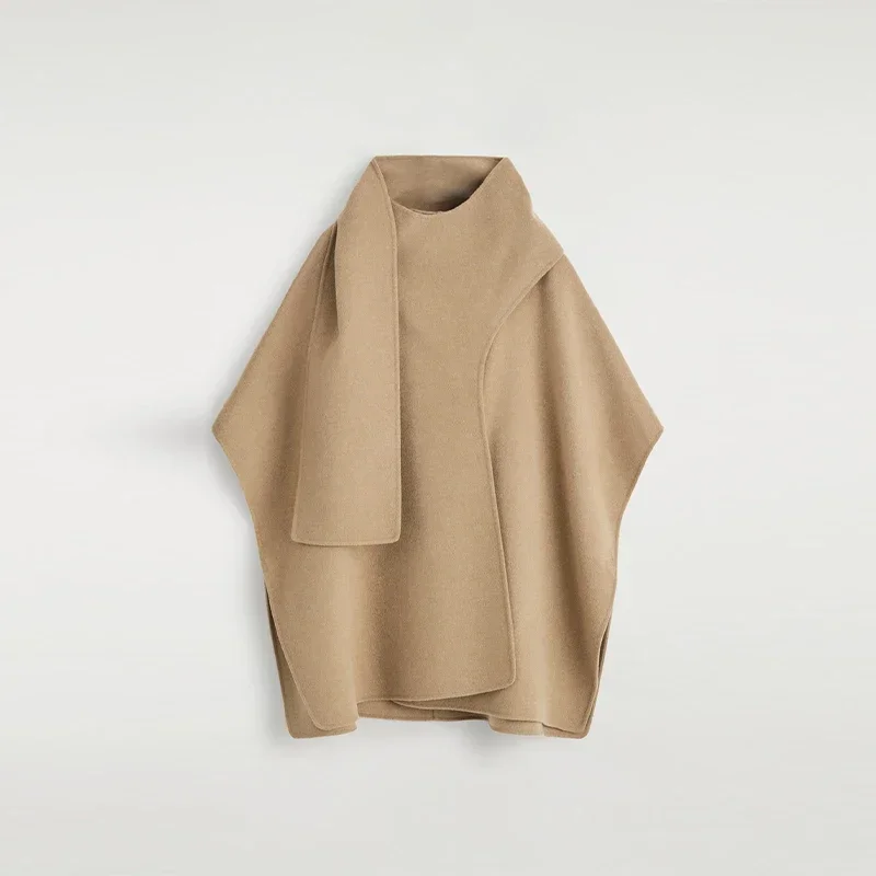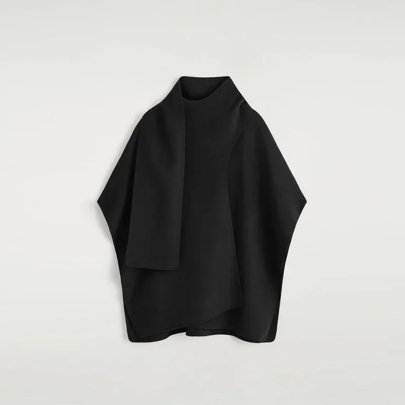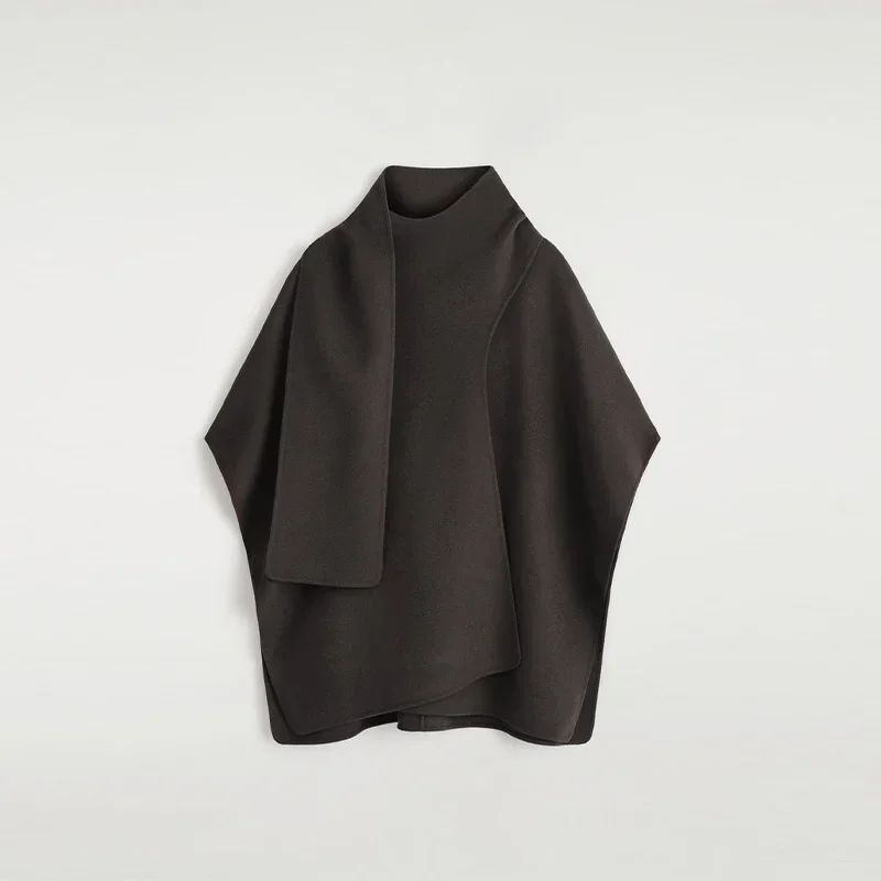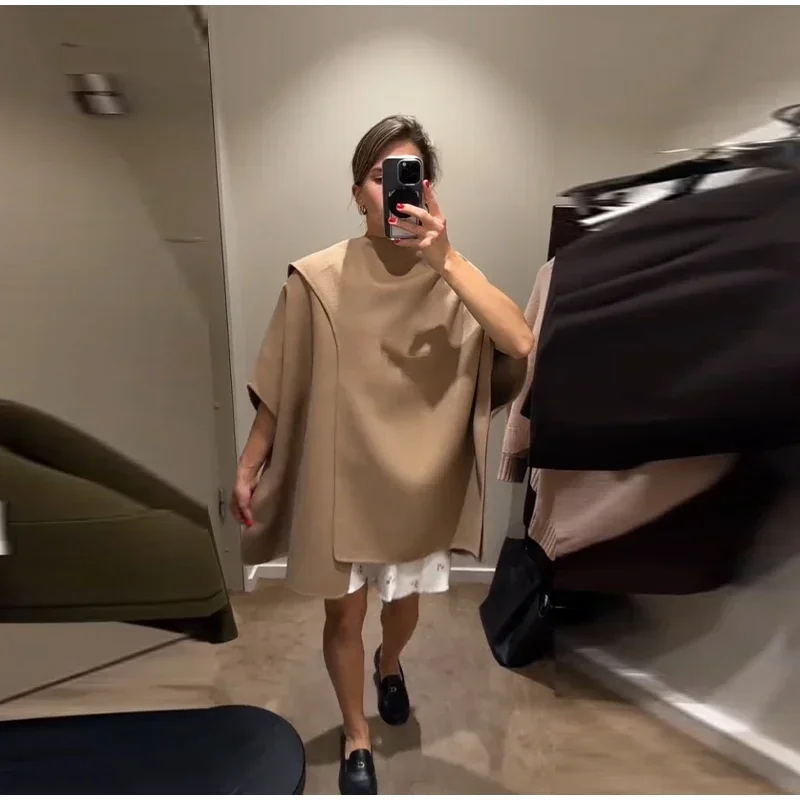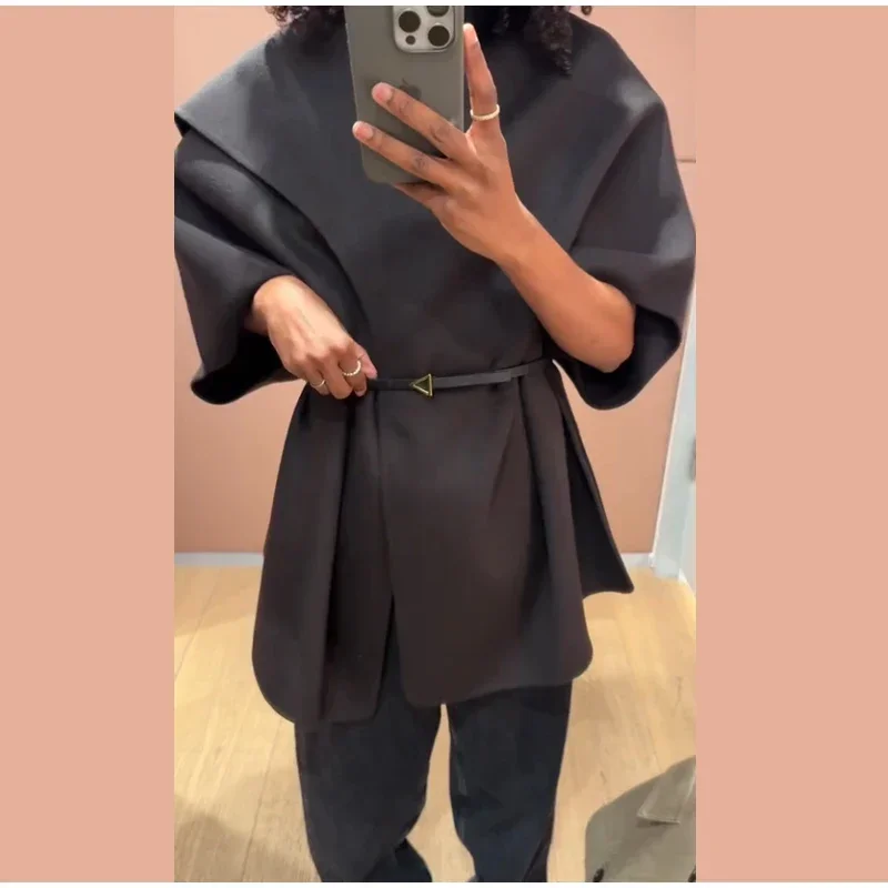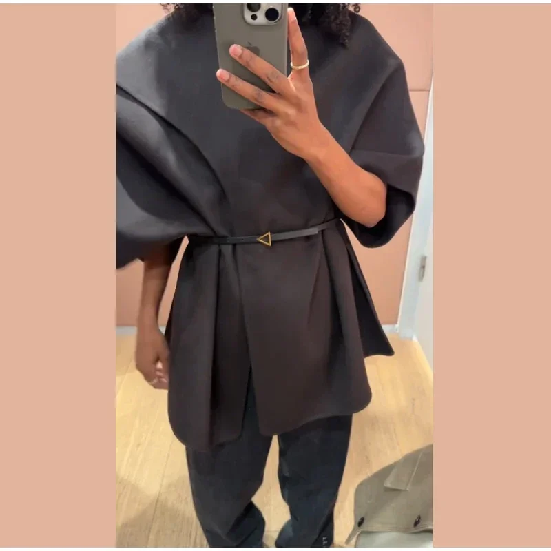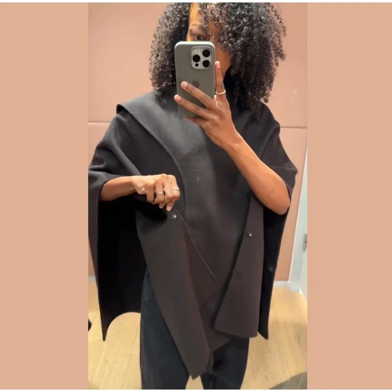 Elegant Woolen Scarf Jackets Women Solid Shawl Half Sleeves O-neck Button Loose Female Coats Fashion 2025 Fashion Lady Outwears