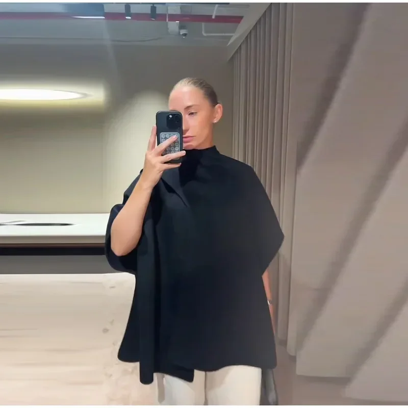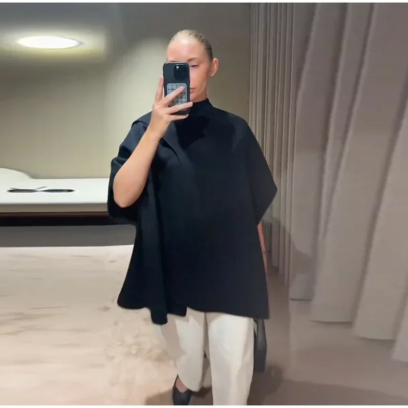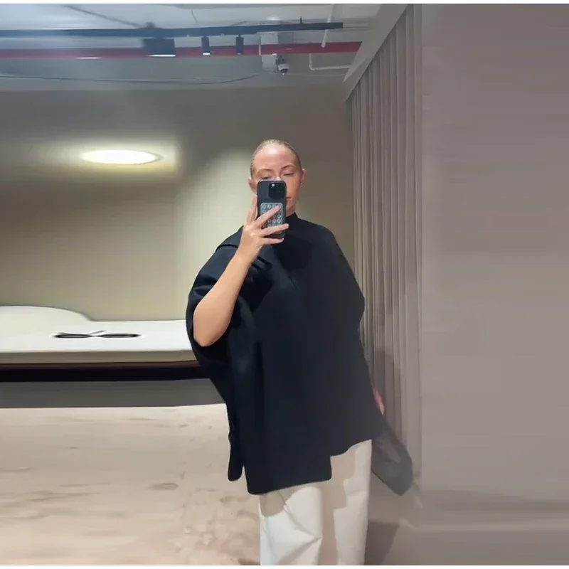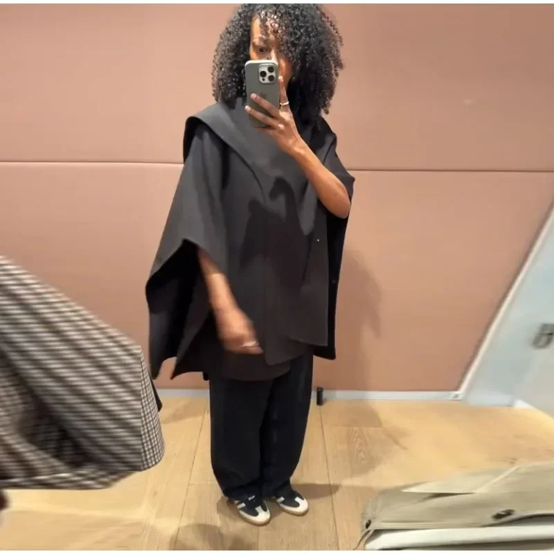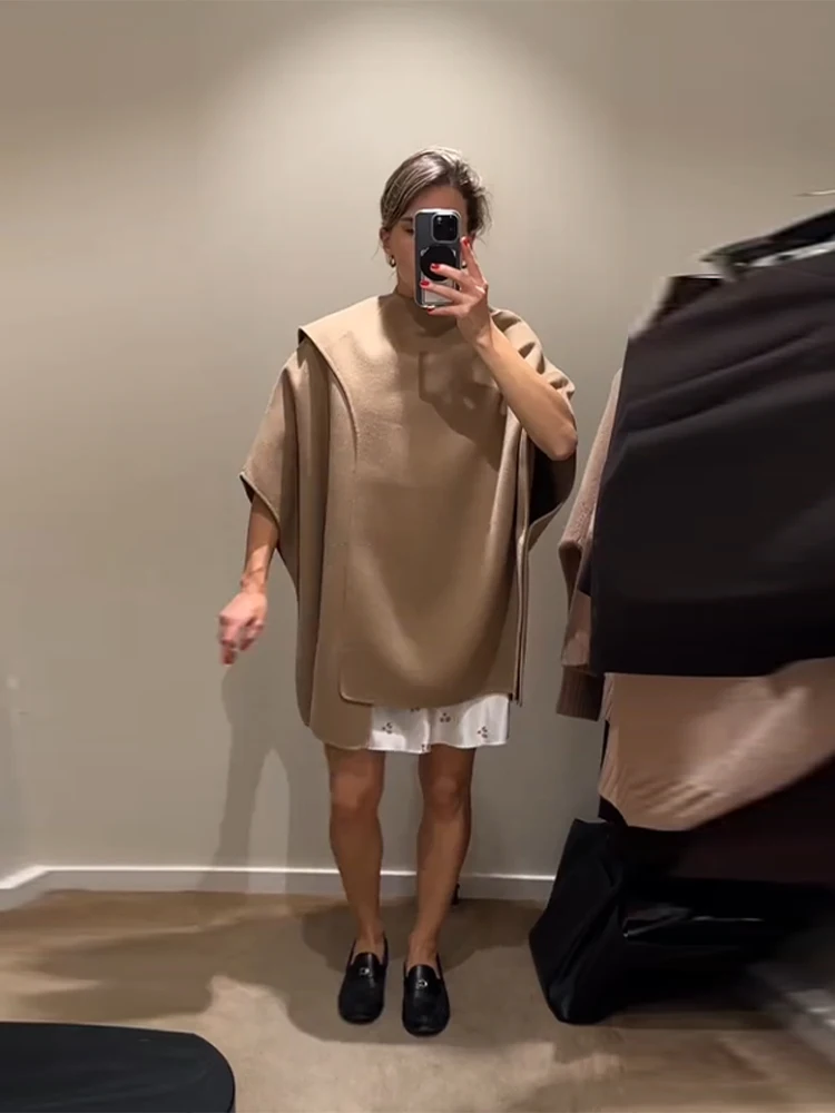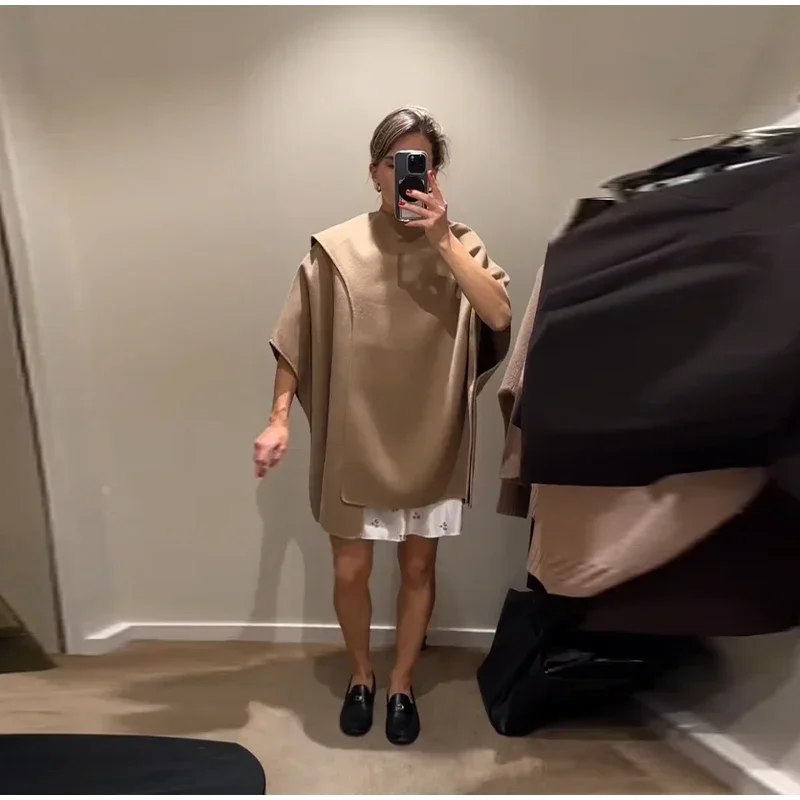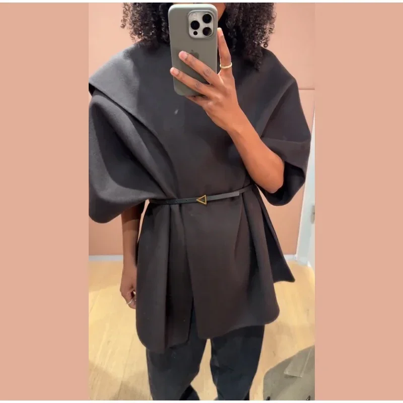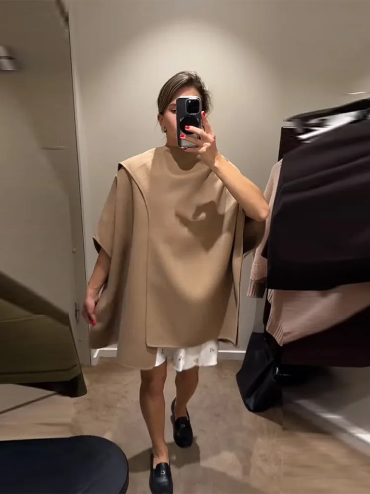 Elegant Woolen Scarf Jackets Women Solid Shawl Half Sleeves O-neck Button Loose Female Coats Fashion 2025 Fashion Lady Outwears