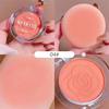 The shade is the same as shown. The blush is velvet and lies flat without stains. very cute shade. At first, I thought they were too light, but they fit well. Be careful, because this is Asian cosmetics and is designed for their skin tones. more precisely, it's almost whiteness. In the photo with the hand, the shade is brighter than it appears. I haven't worn it yet, but if you don't press it with powder, it washes off easily.