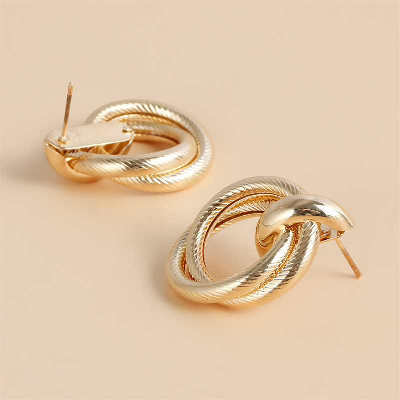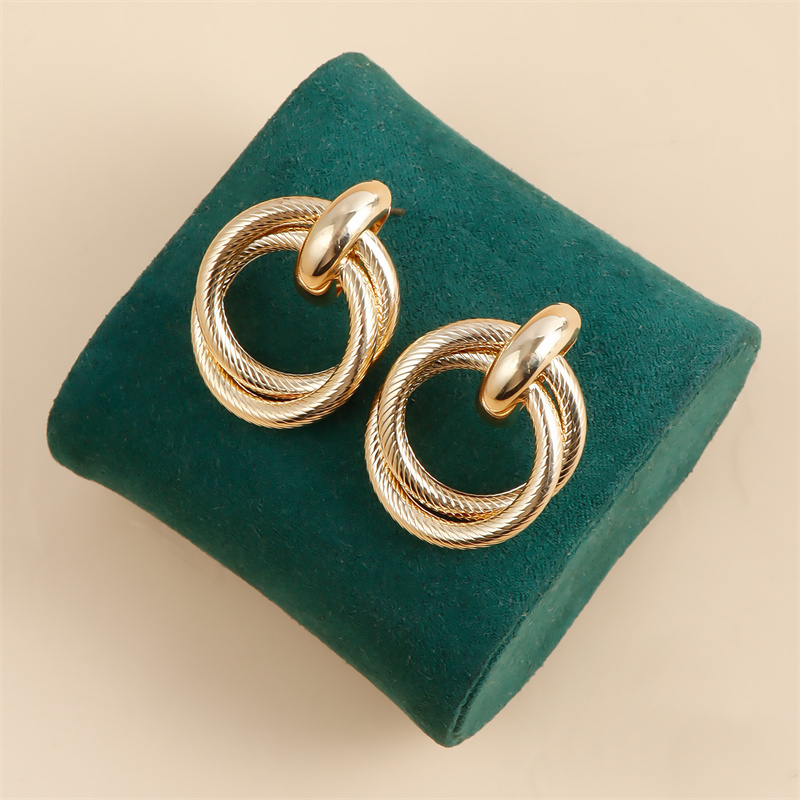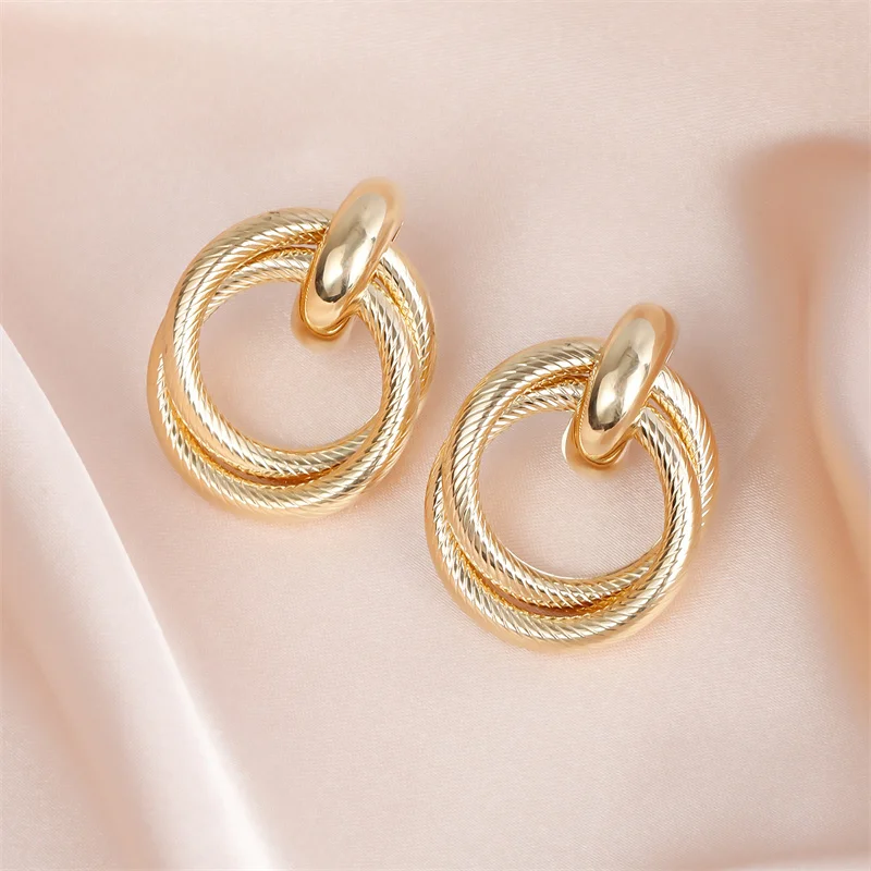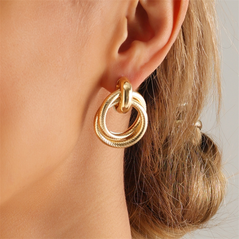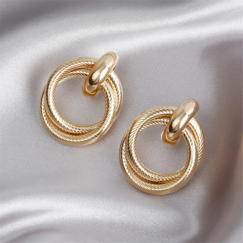 Exaggerated Twisted Dangle Earrings for Women Gold Color Metal Drop Earrings Heavy Multi Circles Earrings pendientes mujer