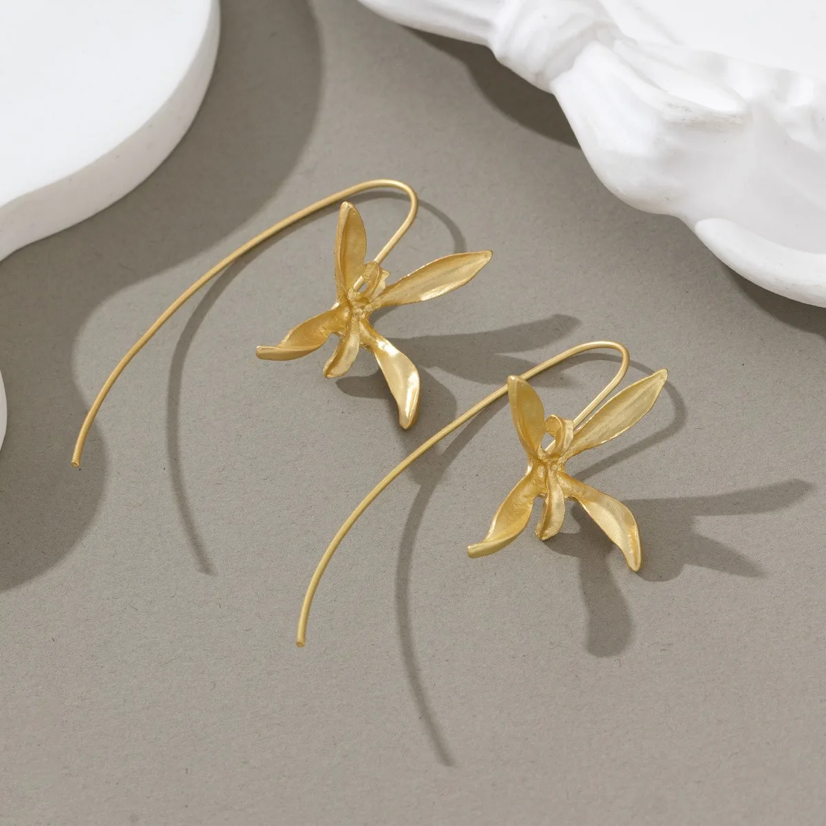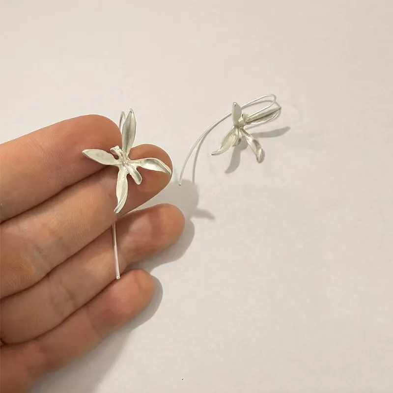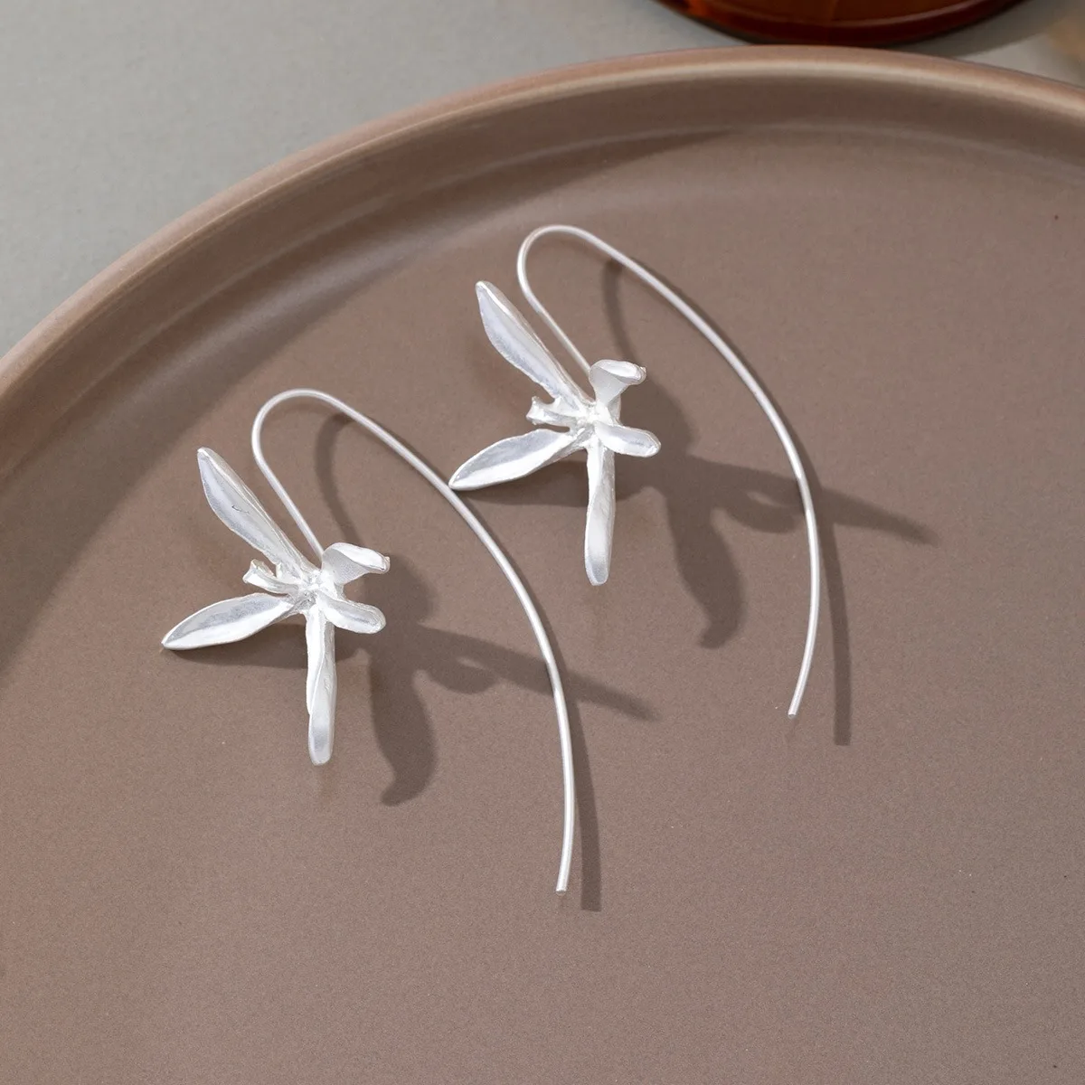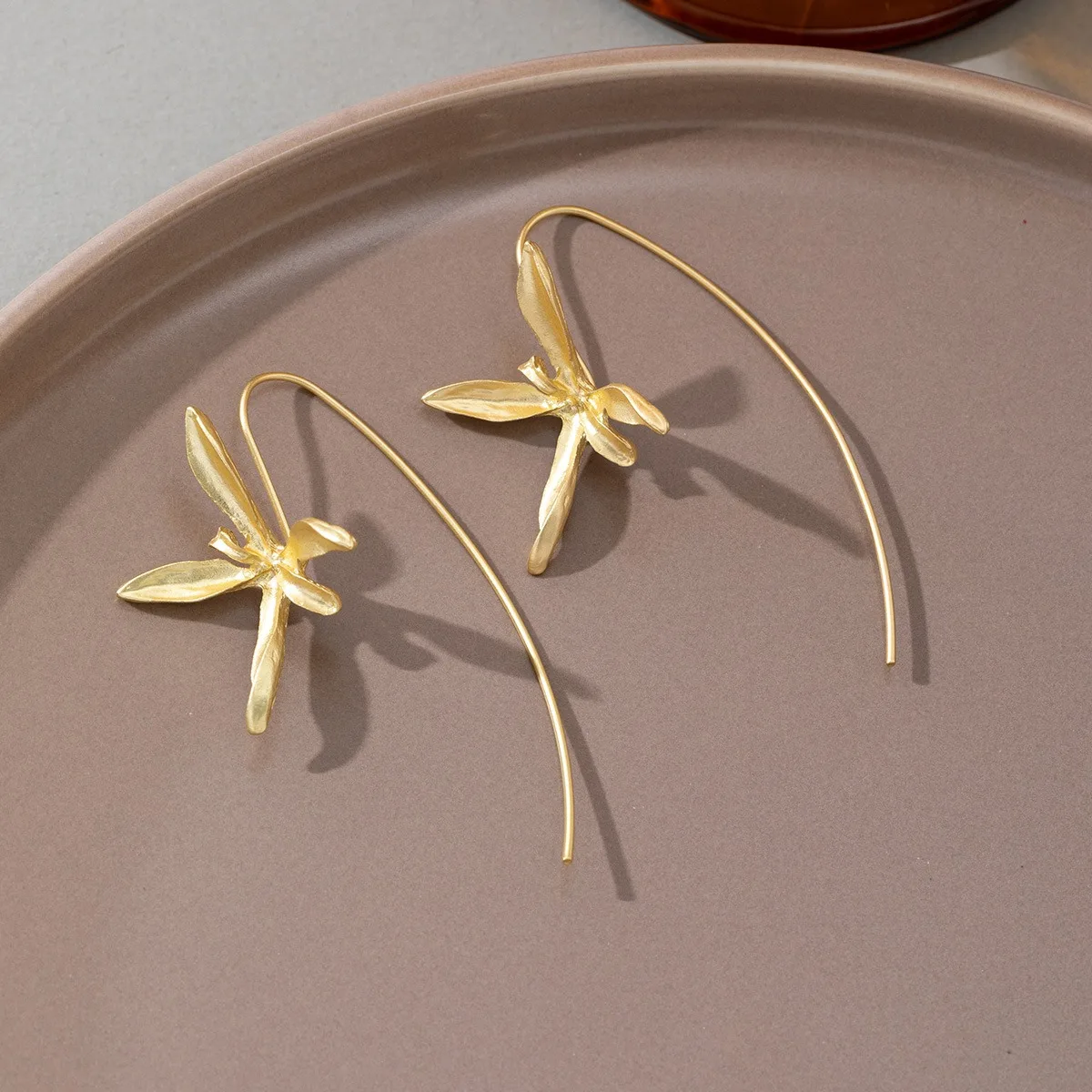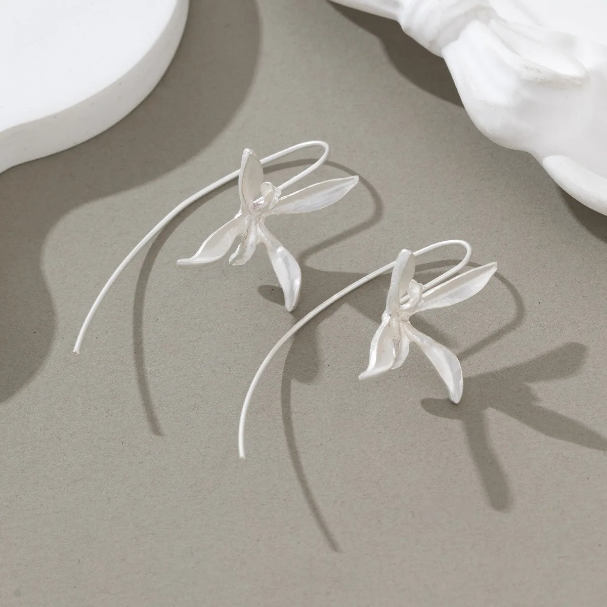 Exquisite Blooming Flower Hook Earrings Simple Accessories Gold Silver Color Plant Drop Dangle Earrings