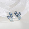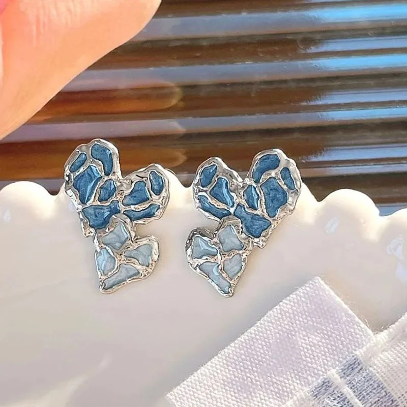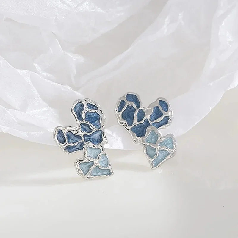 Exquisite Blue Irregular Heart Contrast Color Stud Earrings for Women New Fashion Personality Ear Jewelry Gift Girl