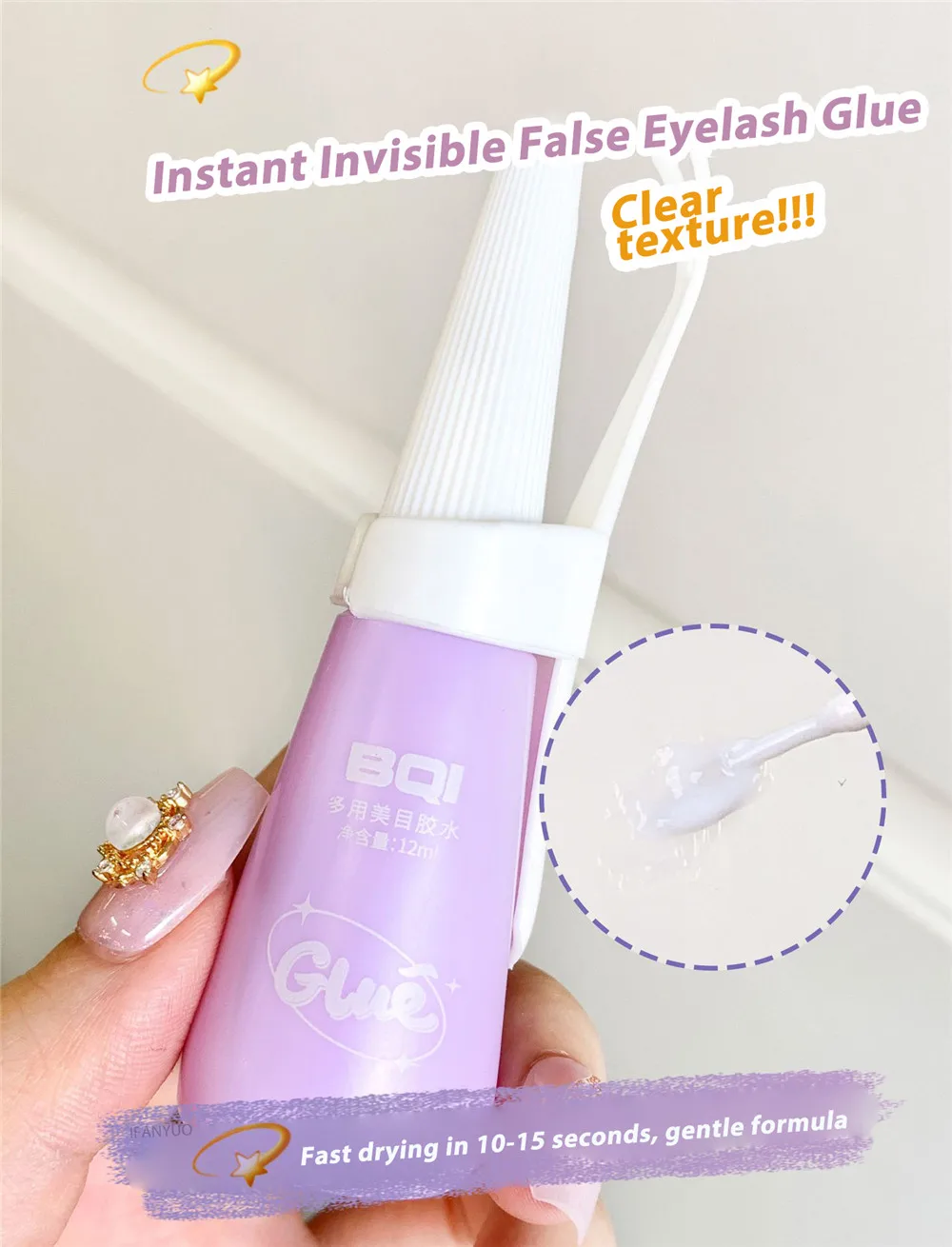 The glue is strong and firm, quick-drying and invisible, not easy to warp the edge of the Y-shaped stick, easy to create double eyelids!!!