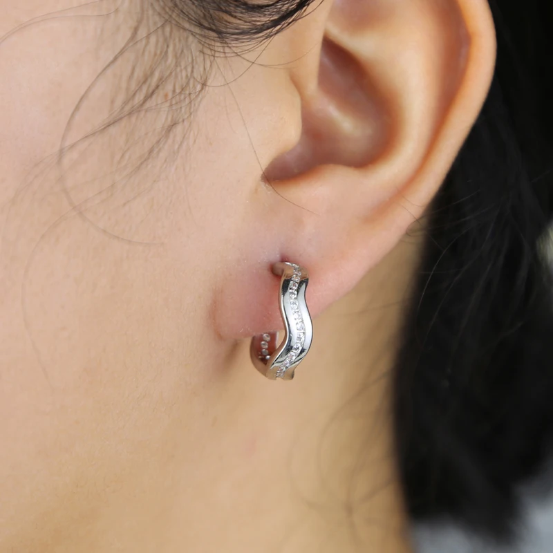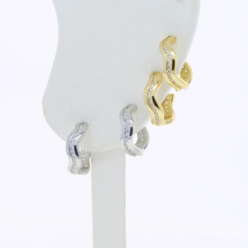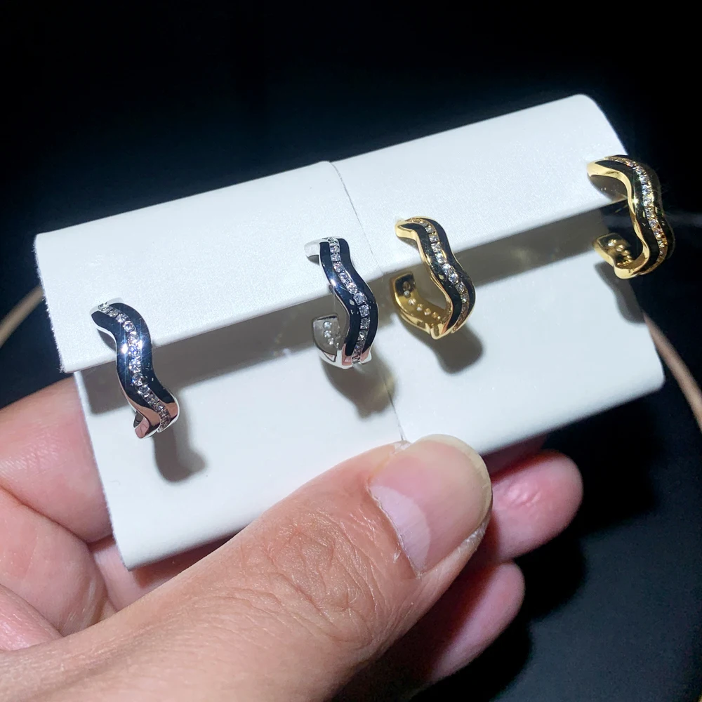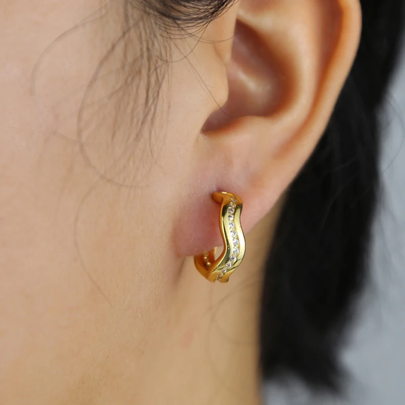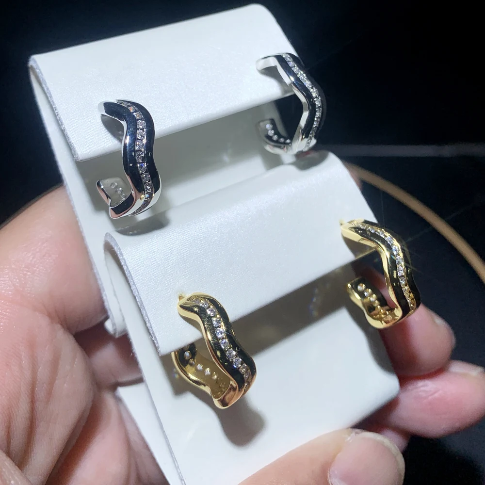 Fashion 5A Cubic Zirconia CZ Sparkingn Women Jewelry 16mm Small Round Wave Circle Round Hoop Earring