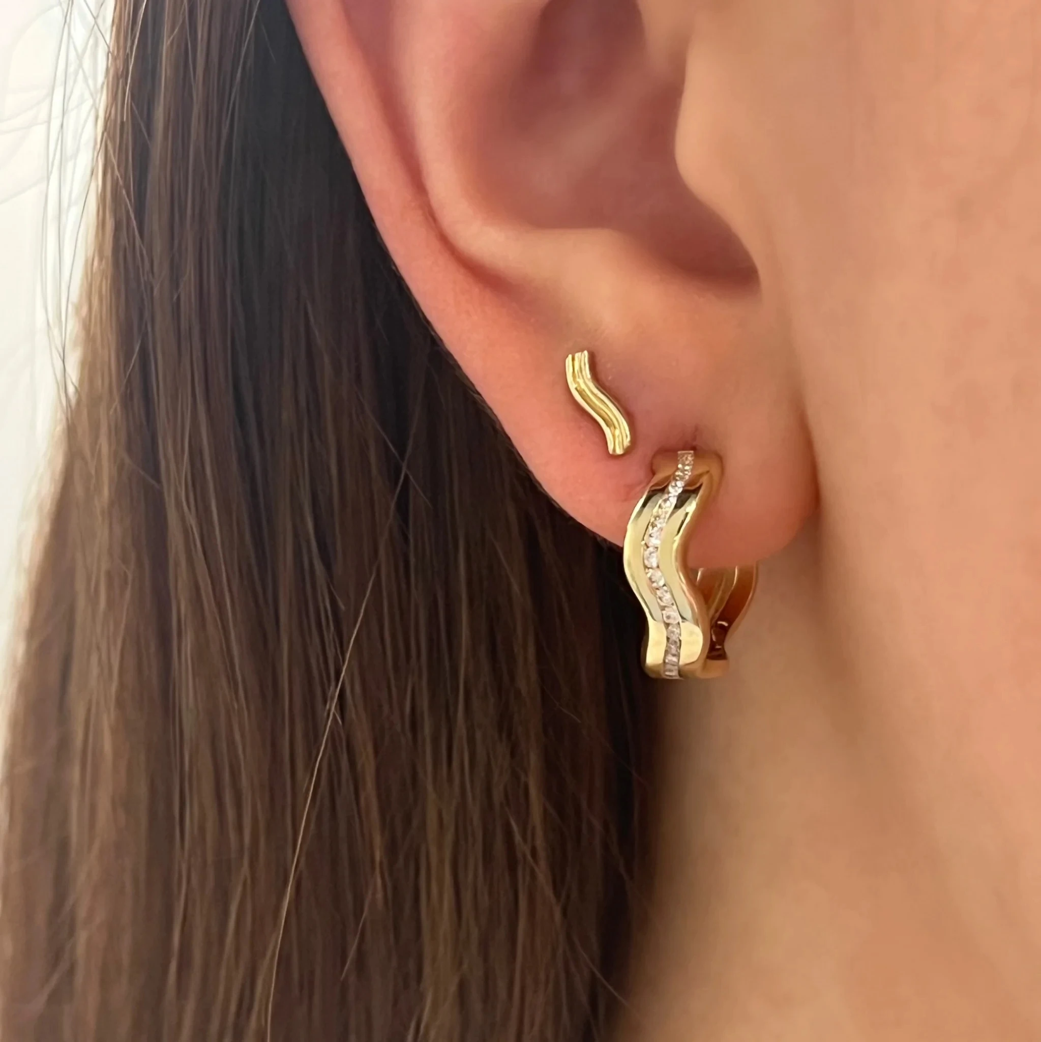 Bezel Set 5A Cubic Zirconia CZ Sparking Fashion Women Jewelry 16mm Small Round Wave Circle Round Hoop Earring