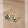 Fashion Asymmetric Ocean Style Drop Earrings For Women Starfish Shell Earring Ear Ring Imitation Pearl Zircon Jewelry Gift