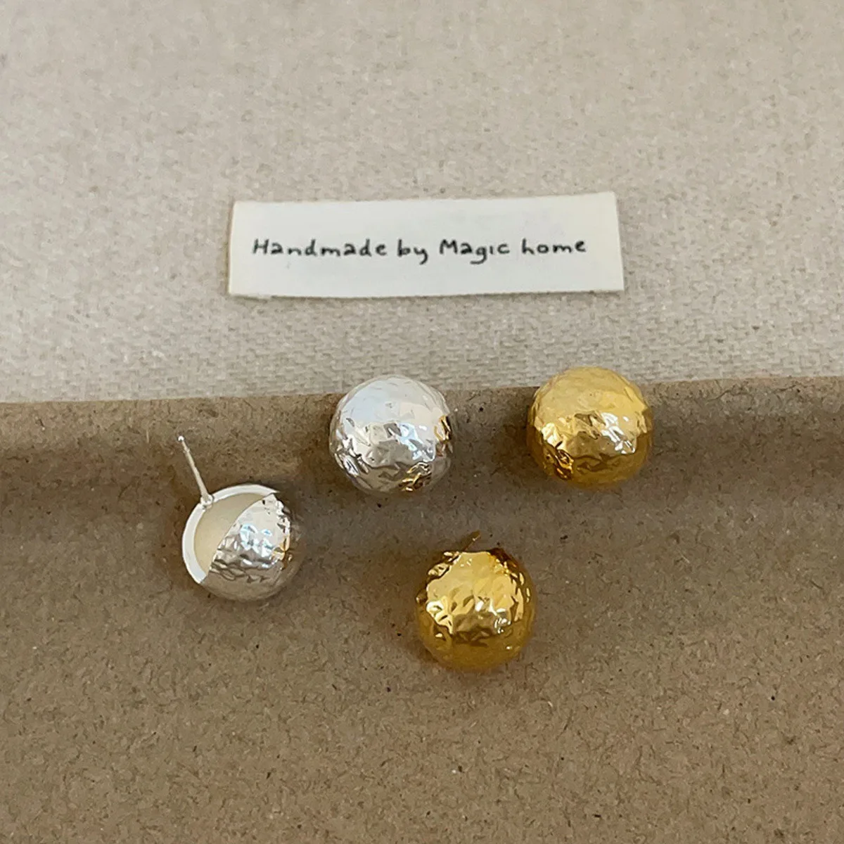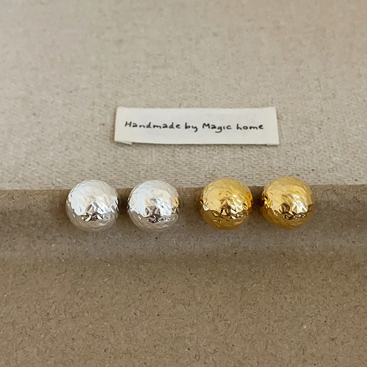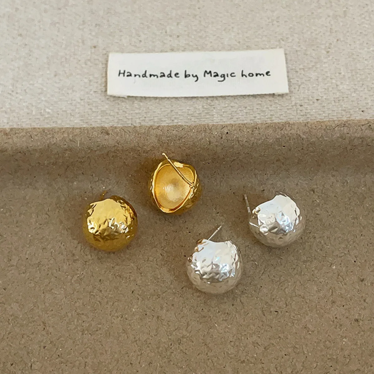 Fashion Folded Metal Round Small Stud Earrings for Women Men Korean Style Hammer Texture Compact Earrings Jewelry Accessories