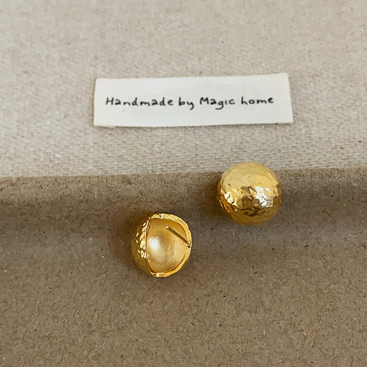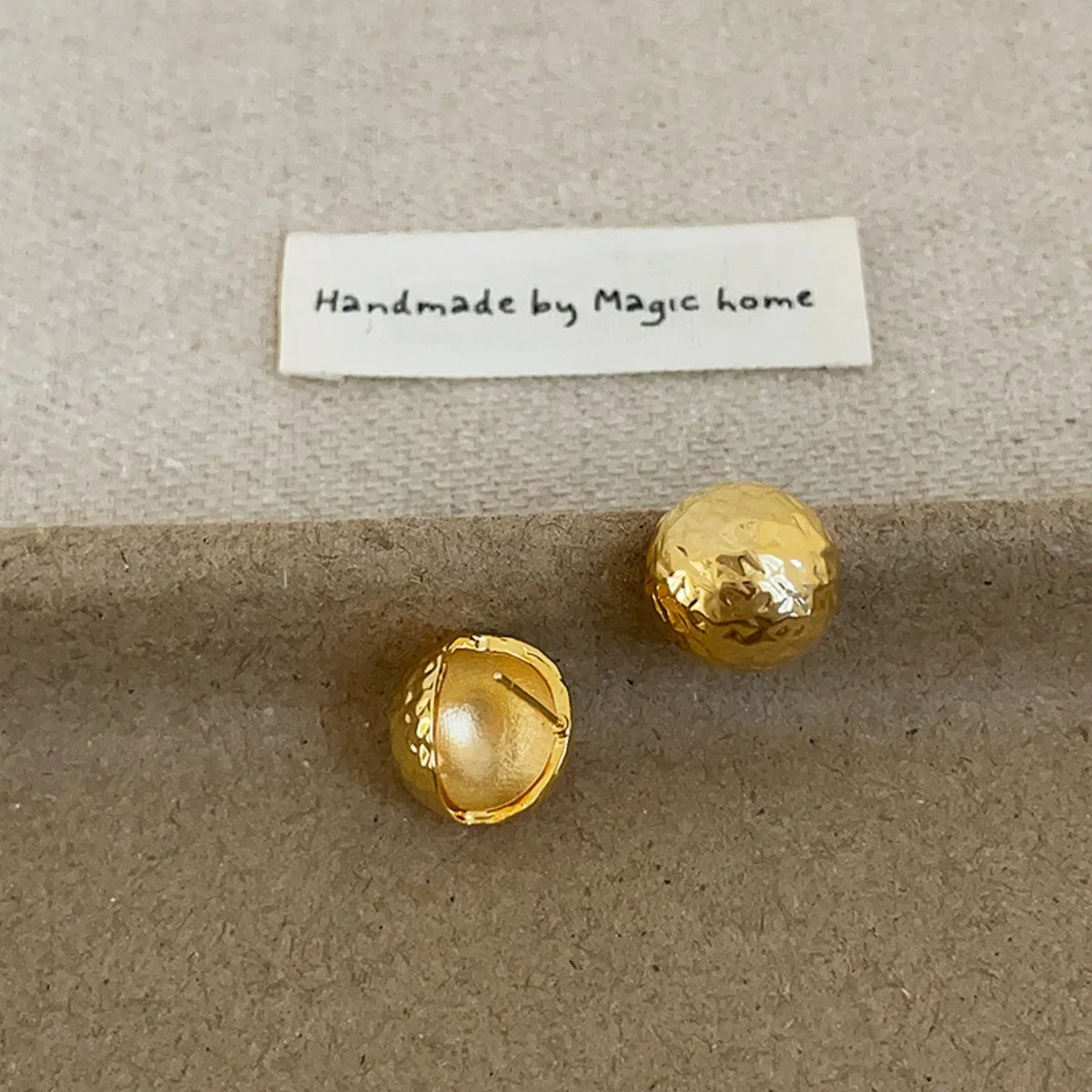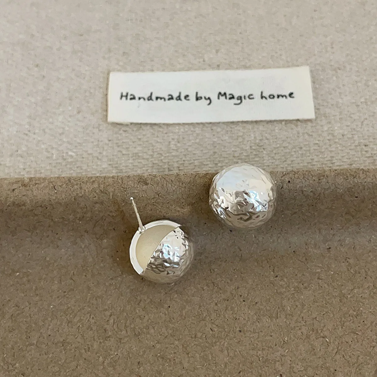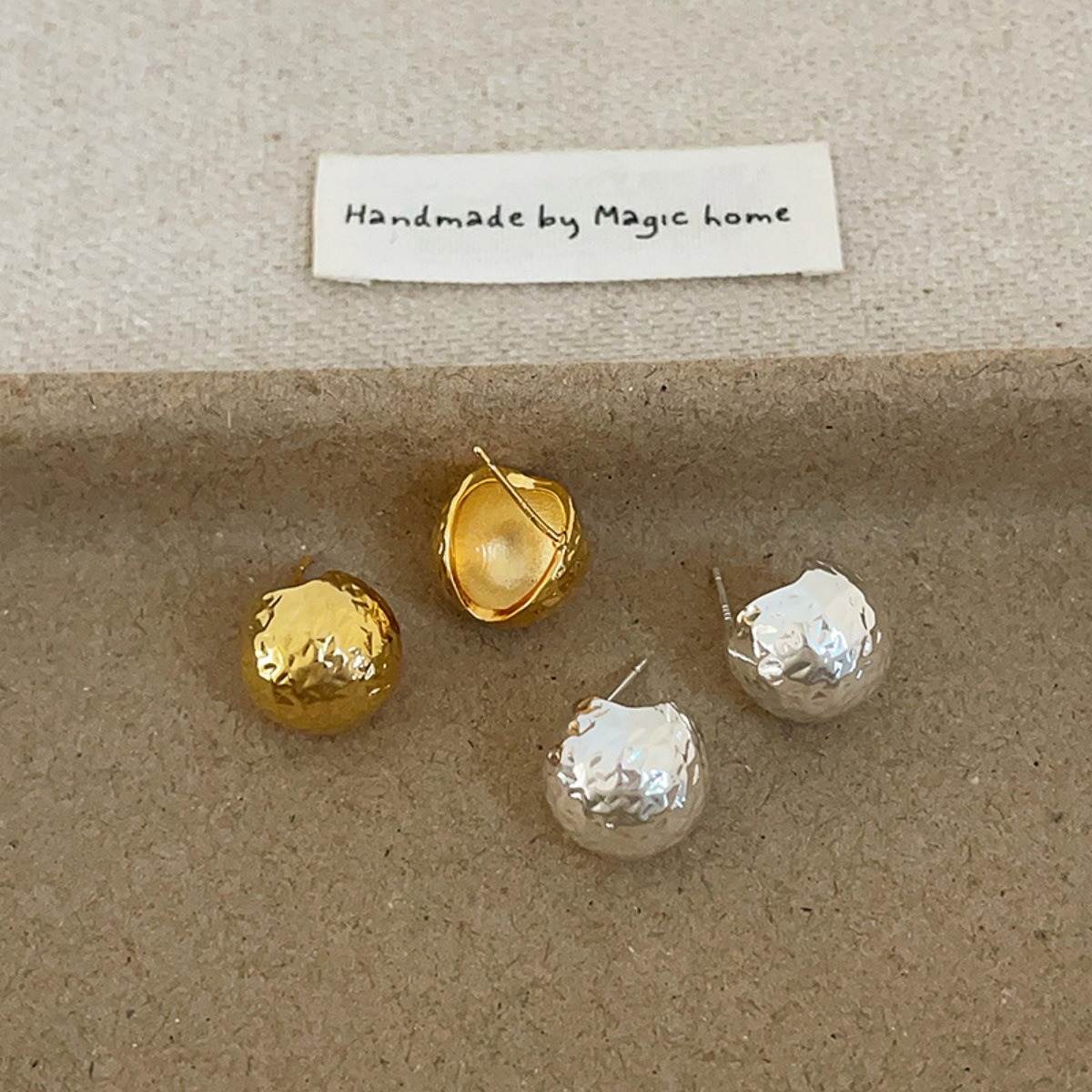 Fashion Folded Metal Round Small Stud Earrings for Women Men Korean Style Hammer Texture Compact Earrings Jewelry Accessories