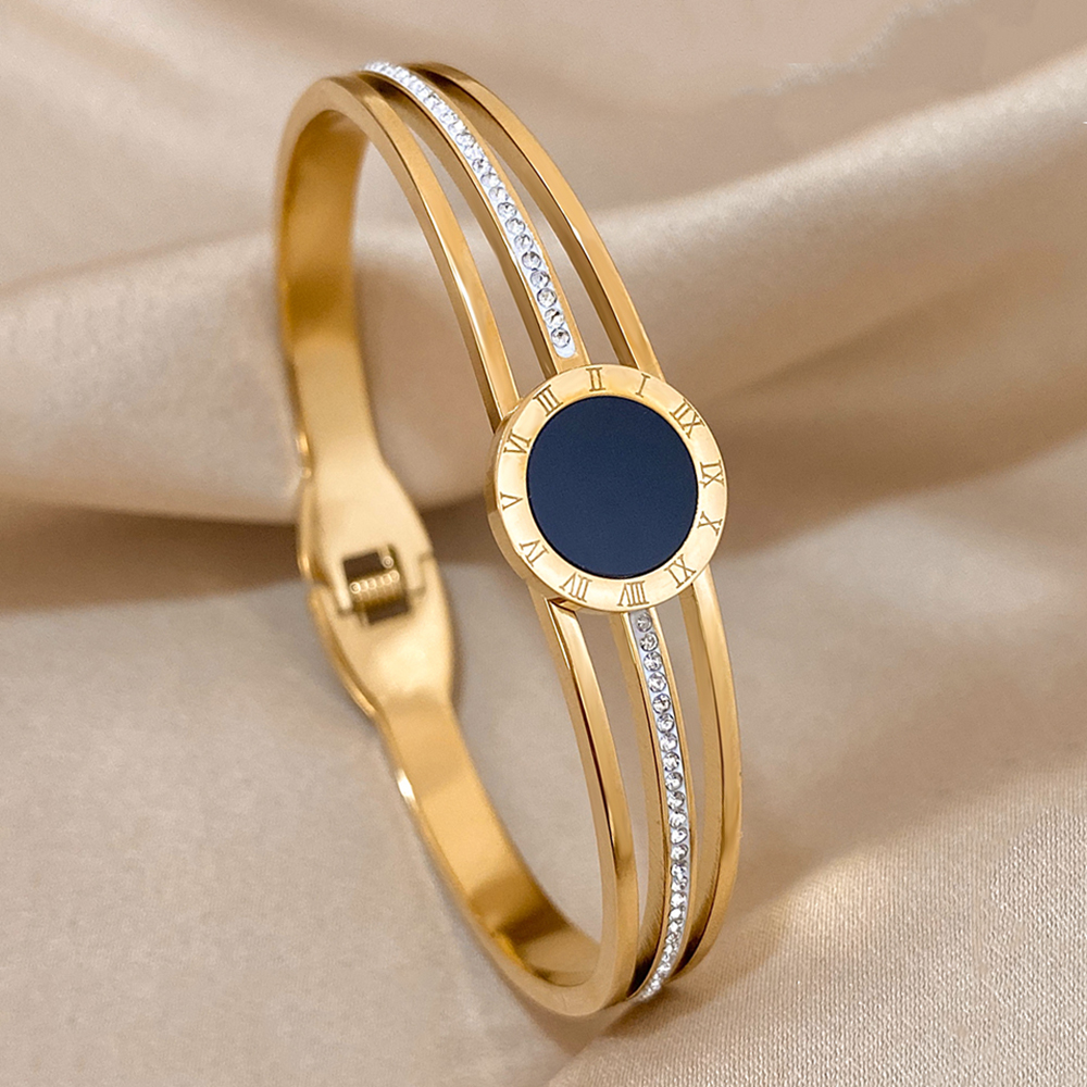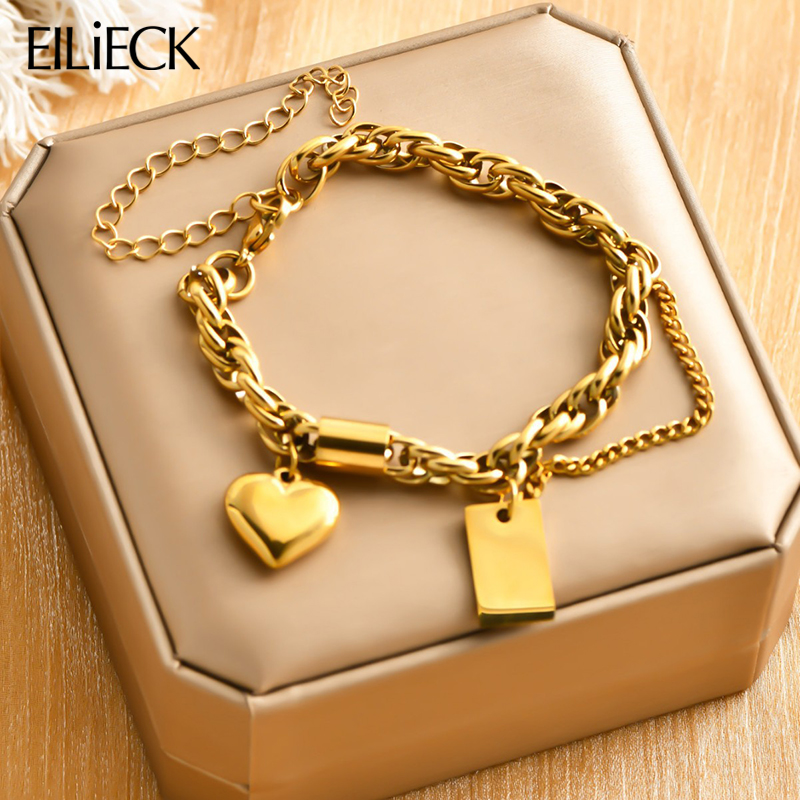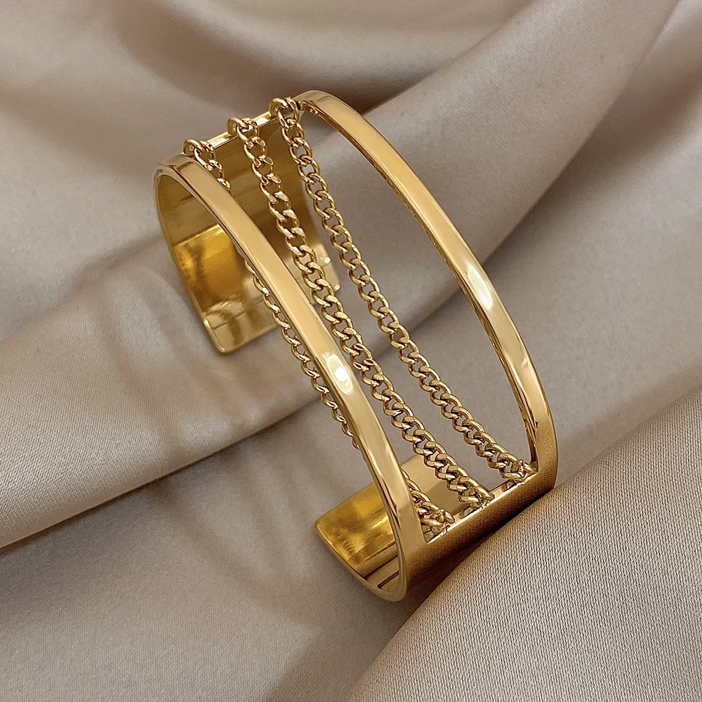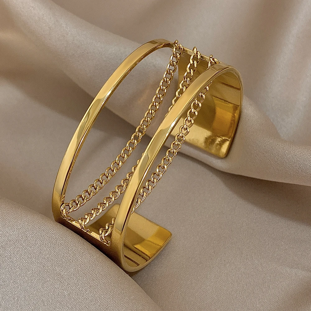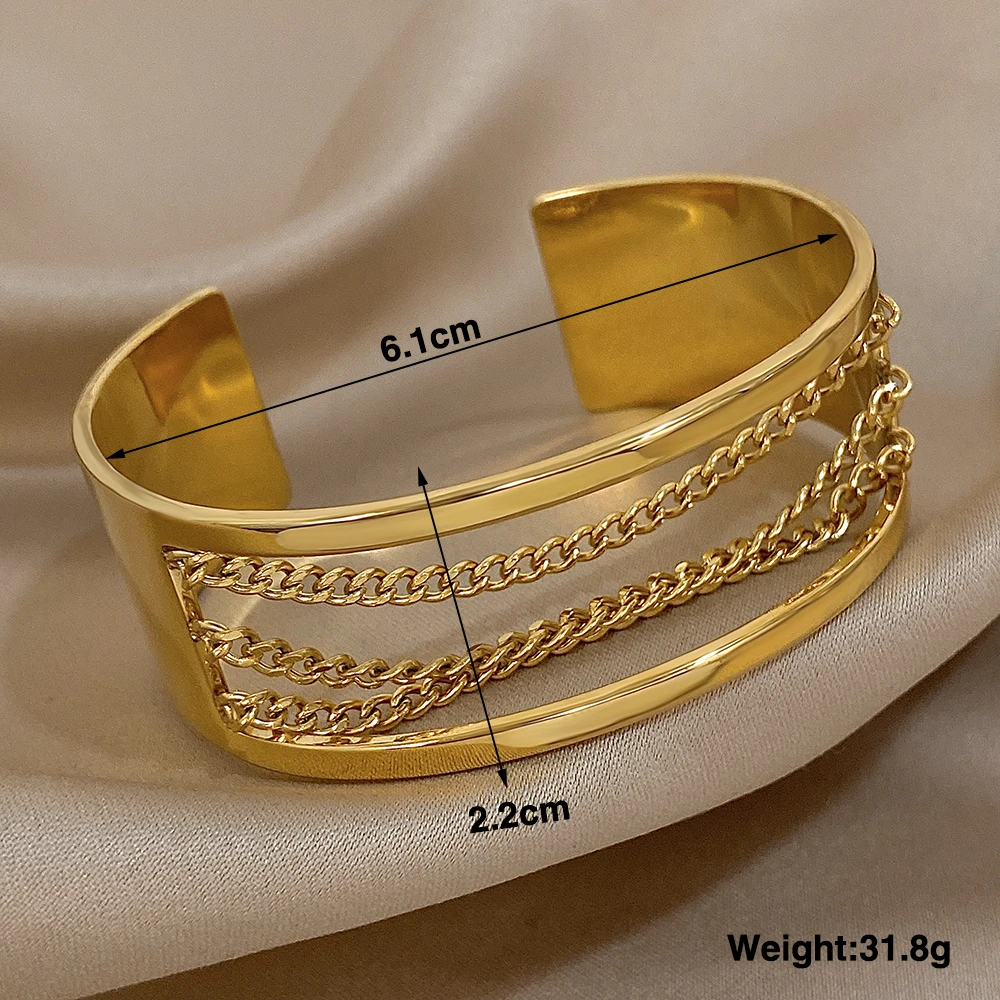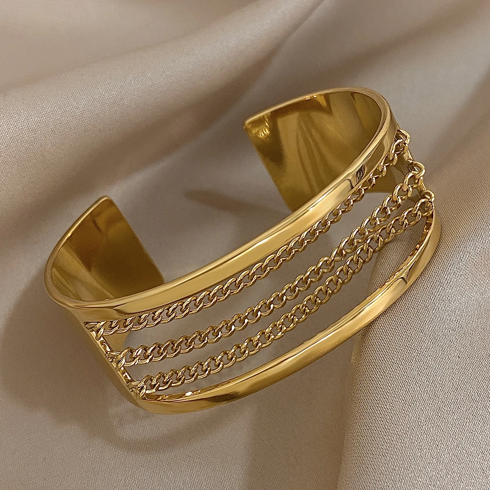 Fashion Gold Silver Color Stainless Steel Cuff Bracelets for Women Chunky Multilayer Thick Chain Wide Bangle Waterproof Jewelry