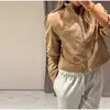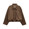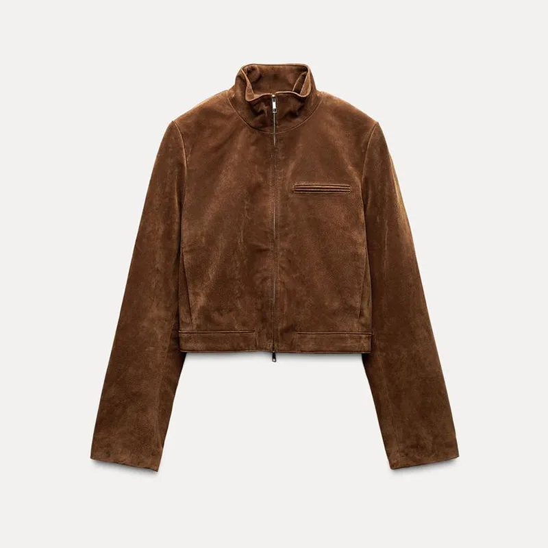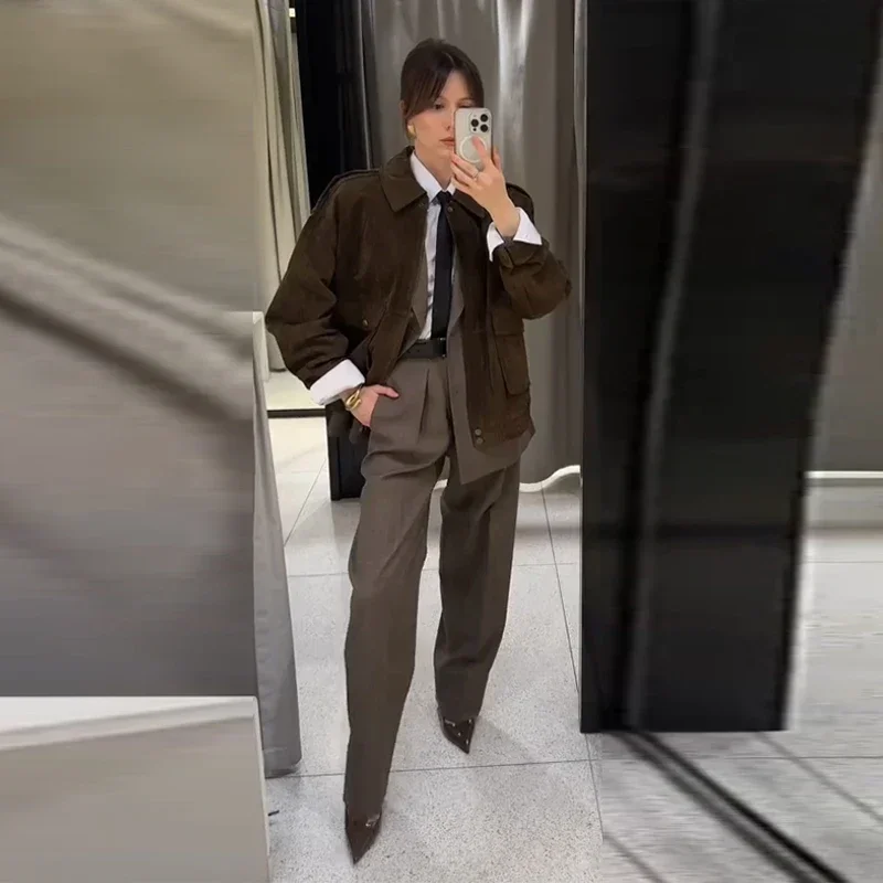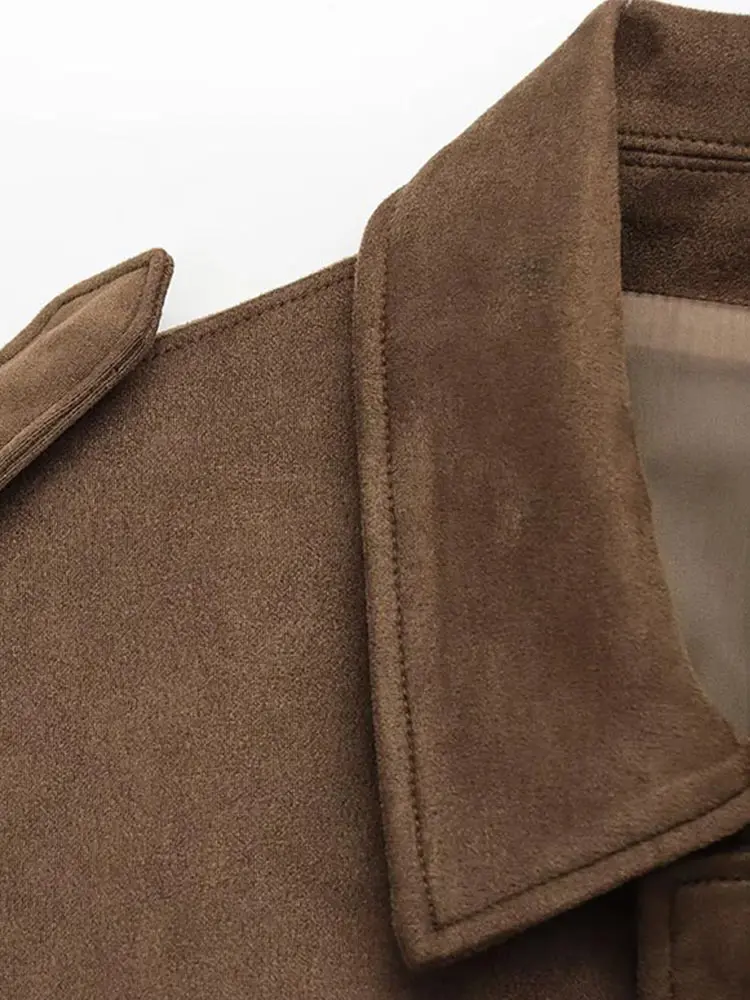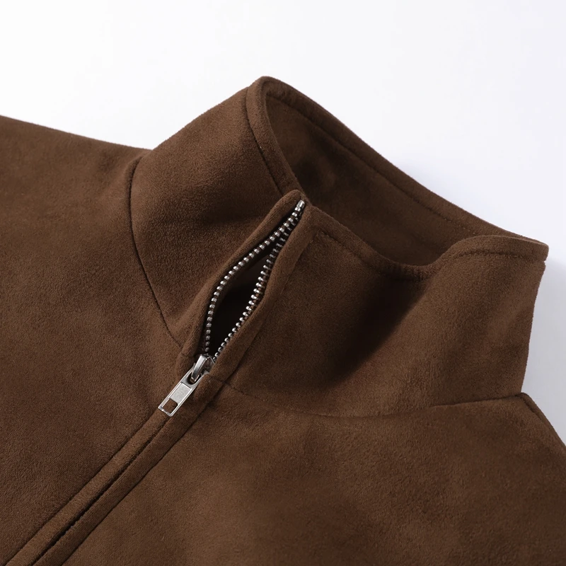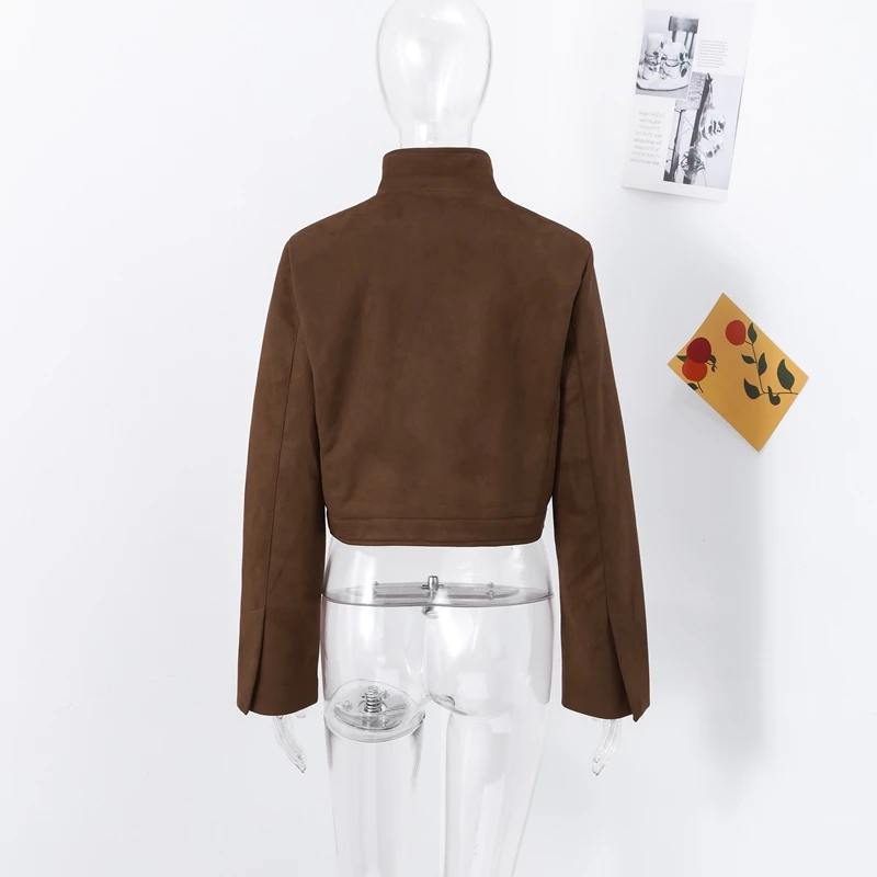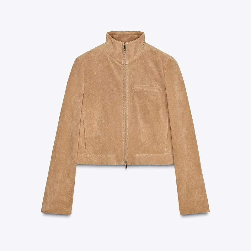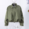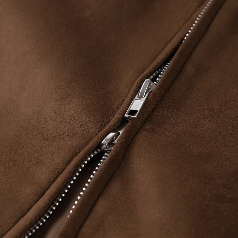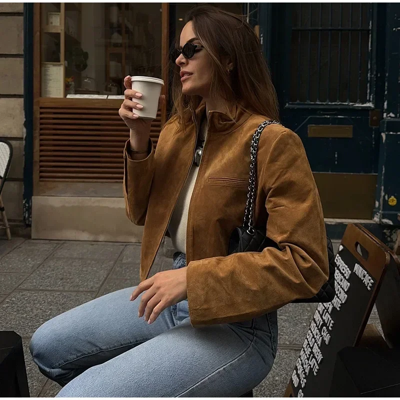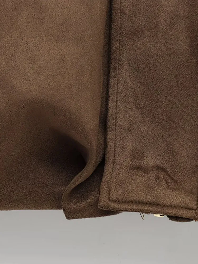 Fashion Green Suede Jacket Women Loose Lapel Zipper Long Sleeve Pockets Bomber Coat 2025 Autumn Lady Motorcycle Outwears
