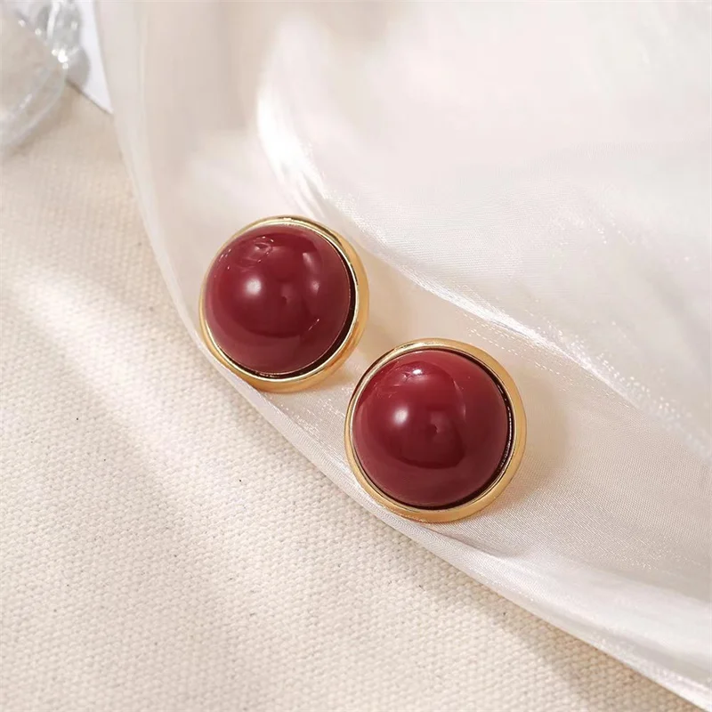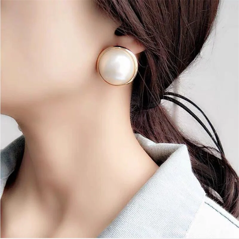 Fashion Jewelry Red White Imitation Pearl Earrings big Round 2CM Pearl Studs Earrings Statement Earrings for femal