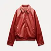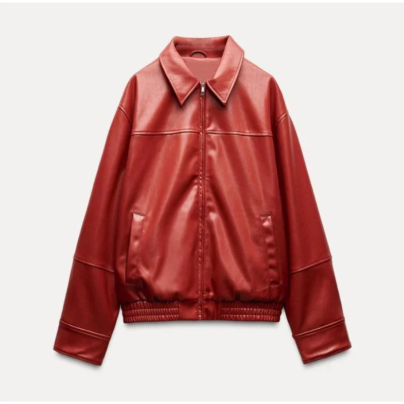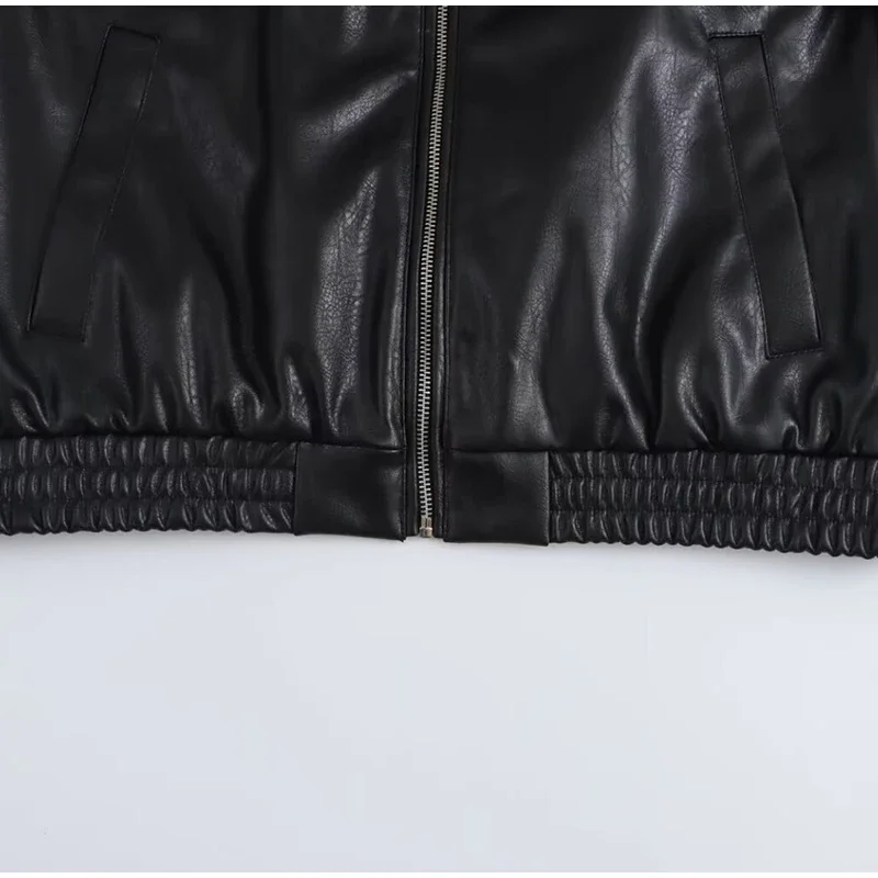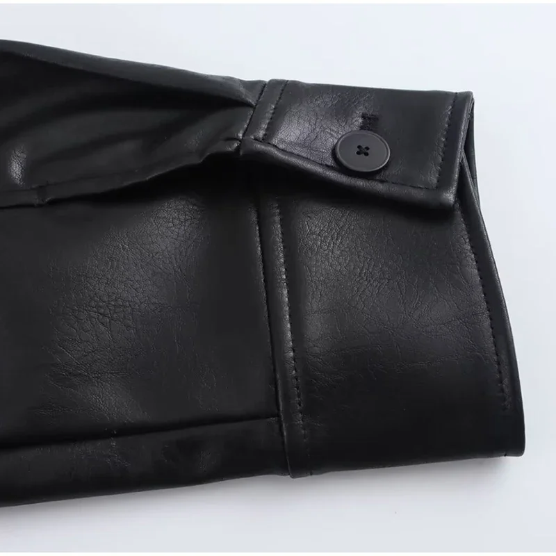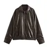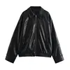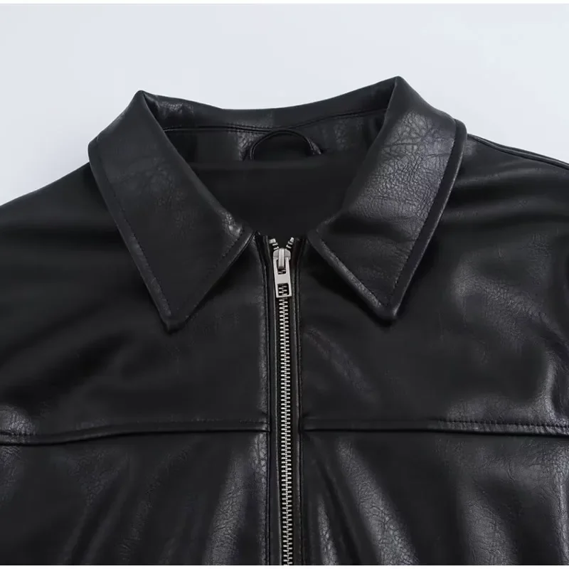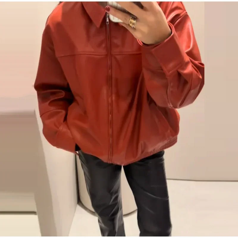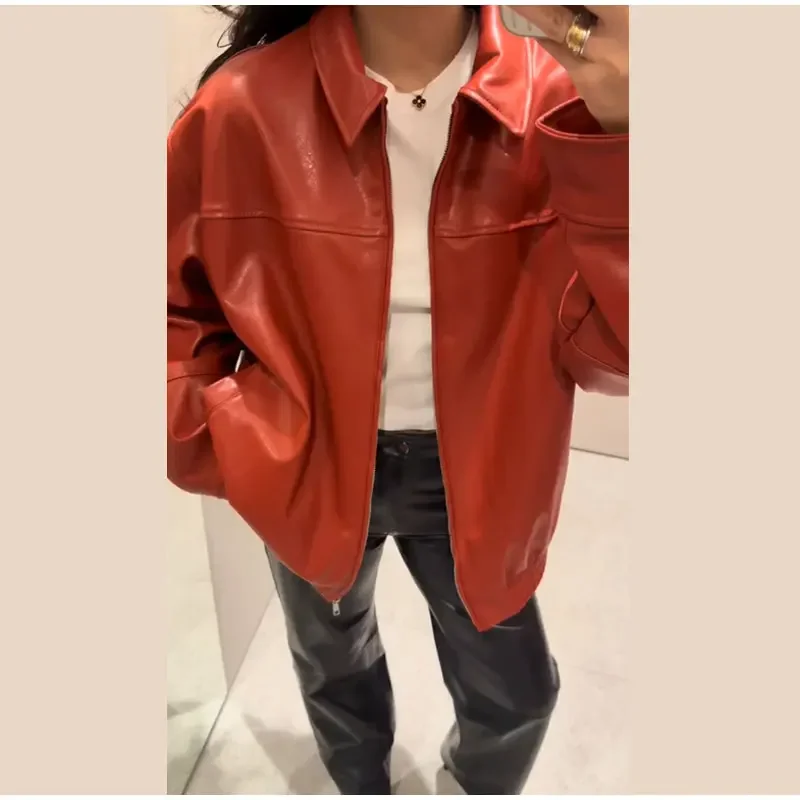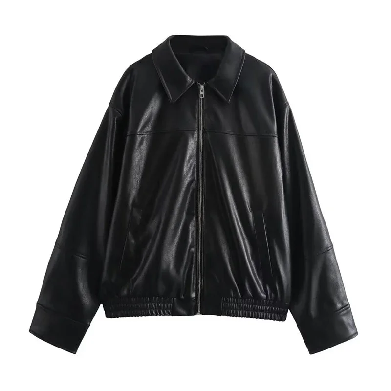 Fashion Leather Coat Women Casual Loose Lapel Zippers Pocket Long Sleeve Female Jacket 2025 Spring High Street Lady Outwear