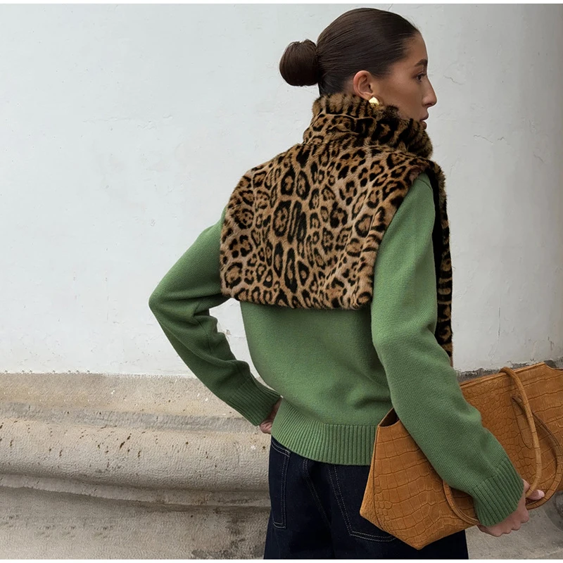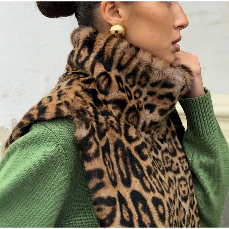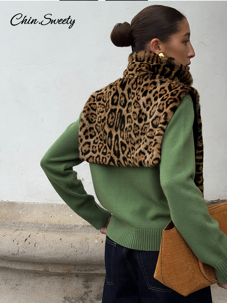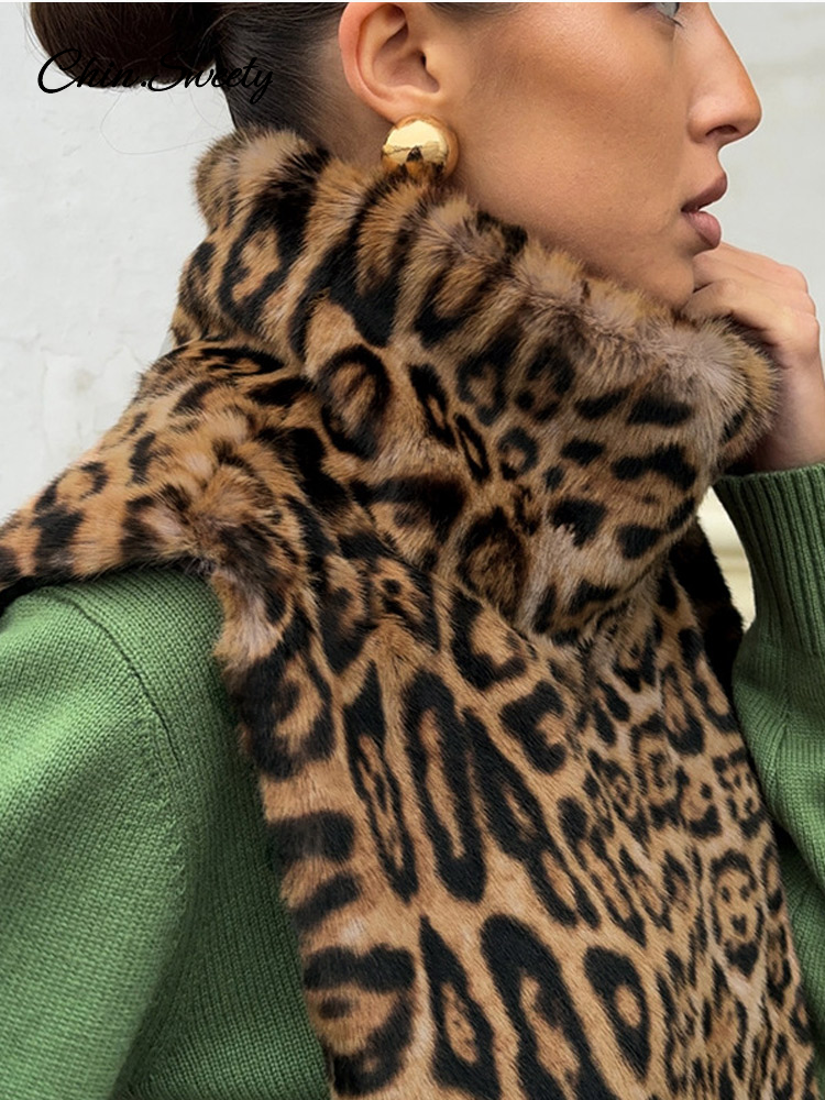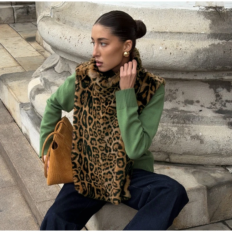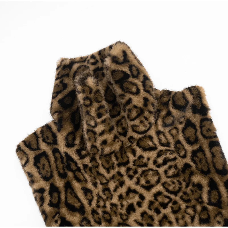 Fashion Leopard Print Faux Fur Vests Women High Neck Sleeveless Shawl Plush Tops Lady New Street Vintage Daily Waistcoat 2026
