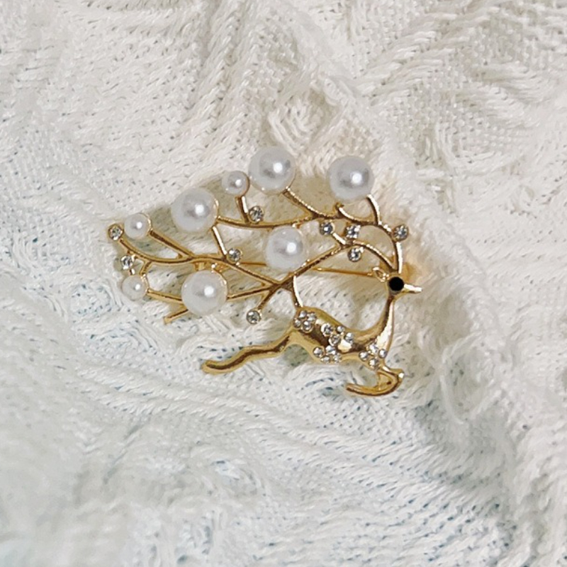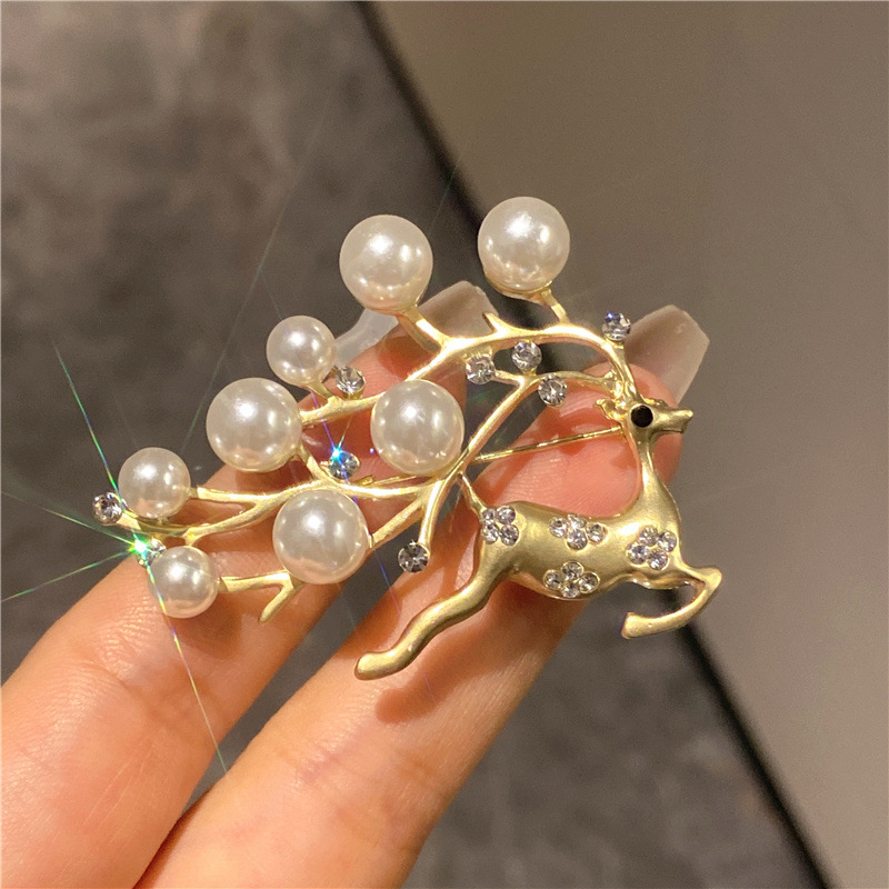 Fashion Rhinestone Imitation Pearls Deer Brooch Elk Animal Pins Woman Daily Colthes Accessories New Year Christmas Gifts