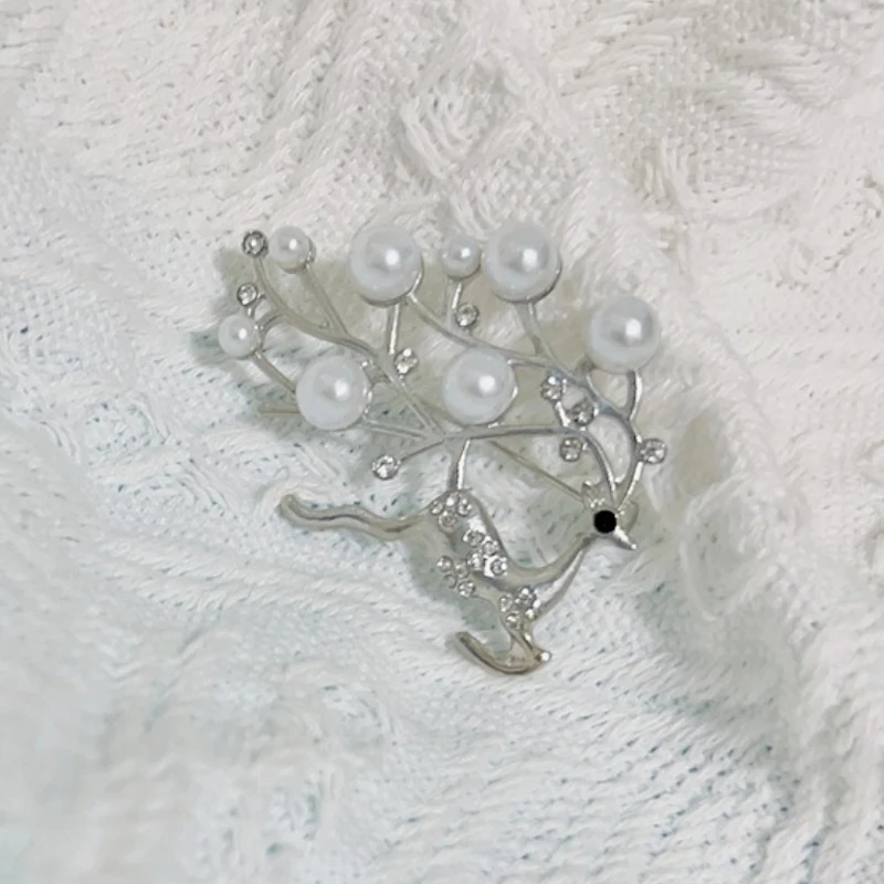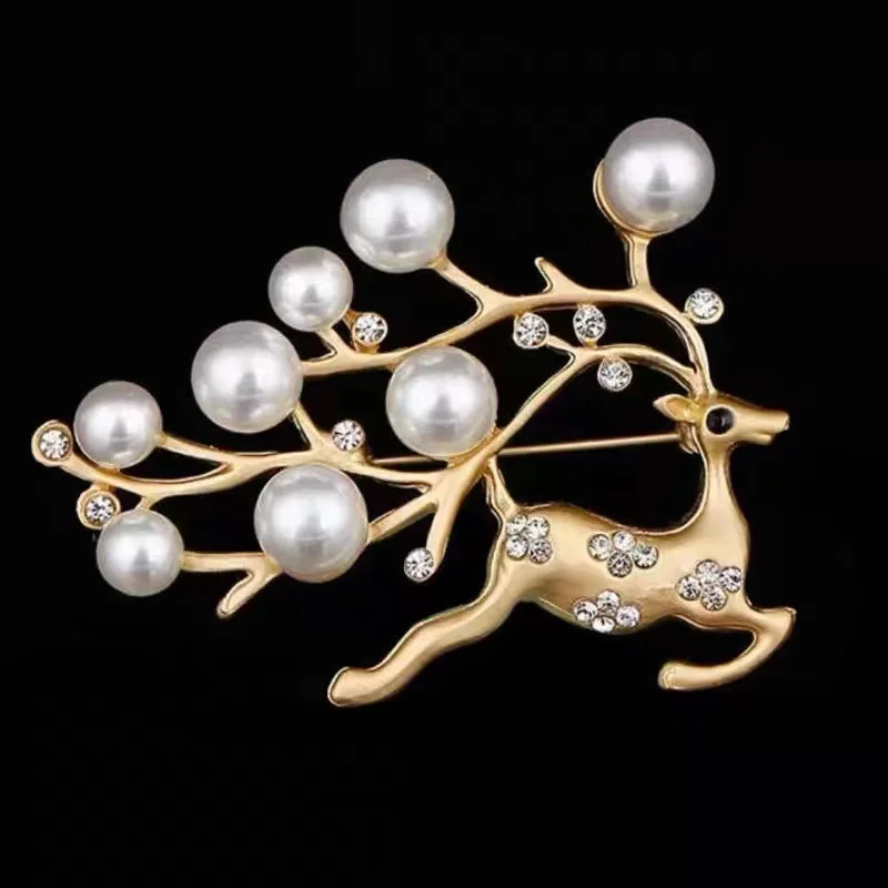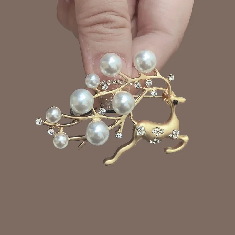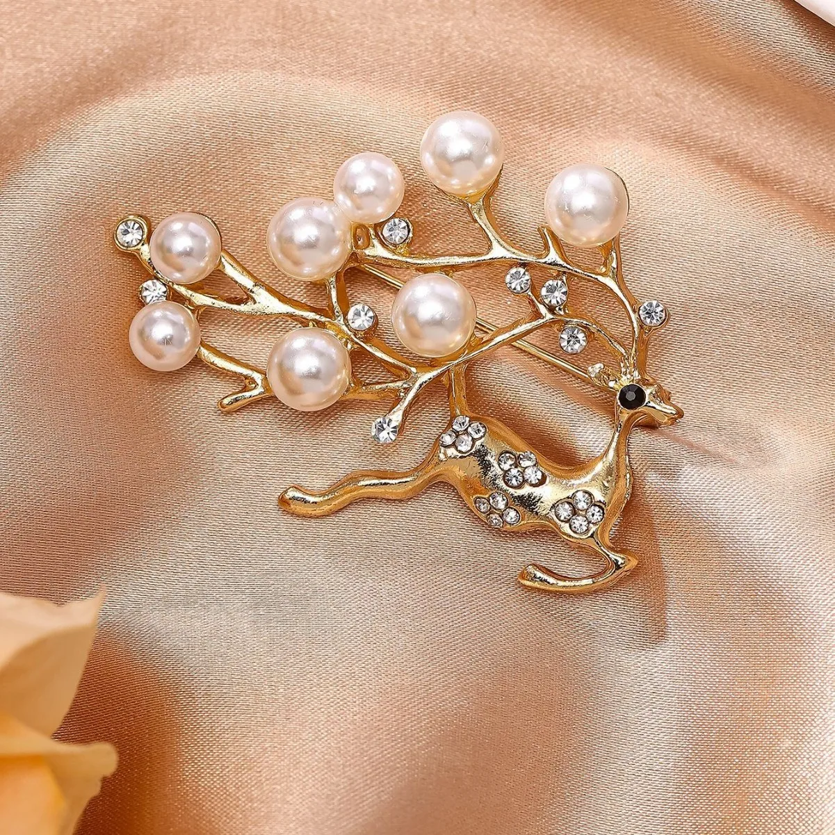 Fashion Rhinestone Imitation Pearls Deer Brooch Elk Animal Pins Woman Daily Colthes Accessories New Year Christmas Gifts