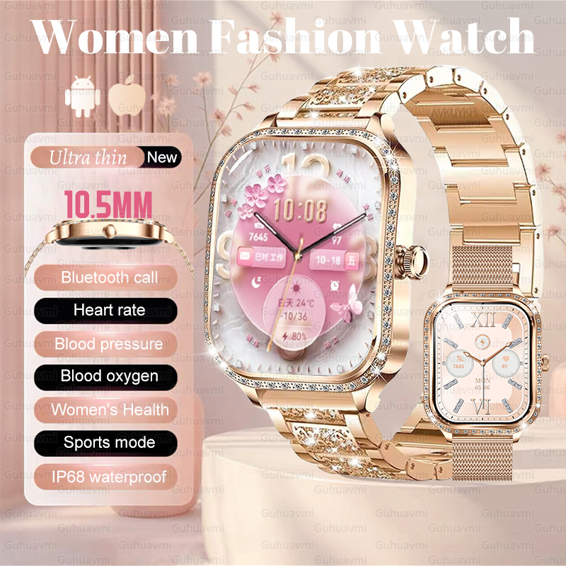 Fashion Rose Gold Smart Watch Women 1.75″ HD Display Heart Rate Sports Fitness IP68 Waterproof BT Call Smartwatch For Lady Gifts