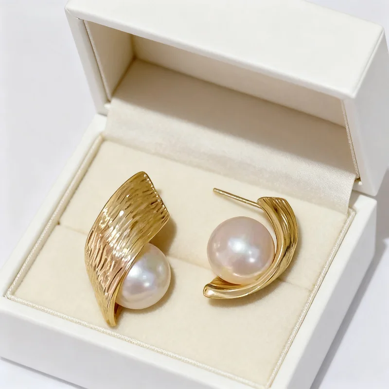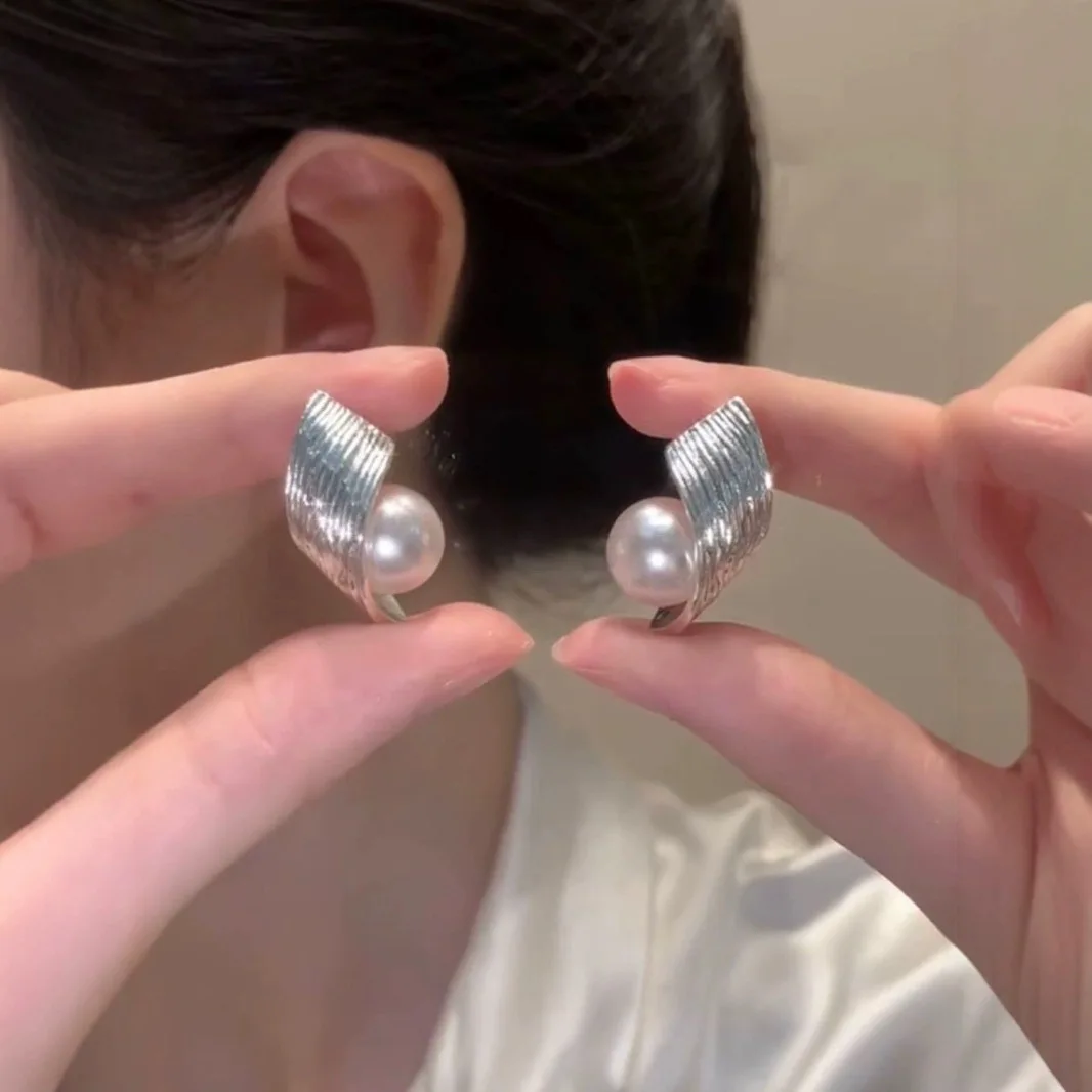 Fashion Simple Personality Metal Style Surround Pearl Stud Earrings for Women Unique Design Earring Jewelry Gift Wholesale