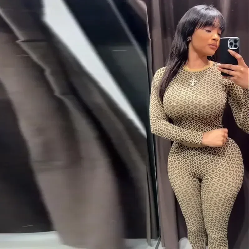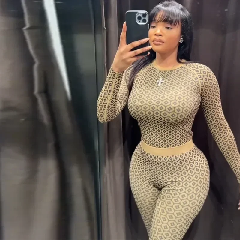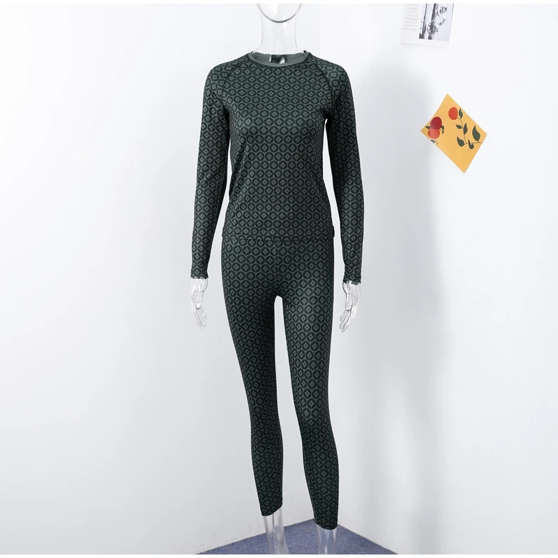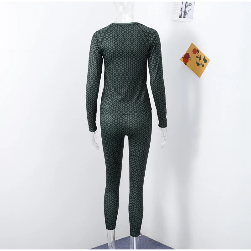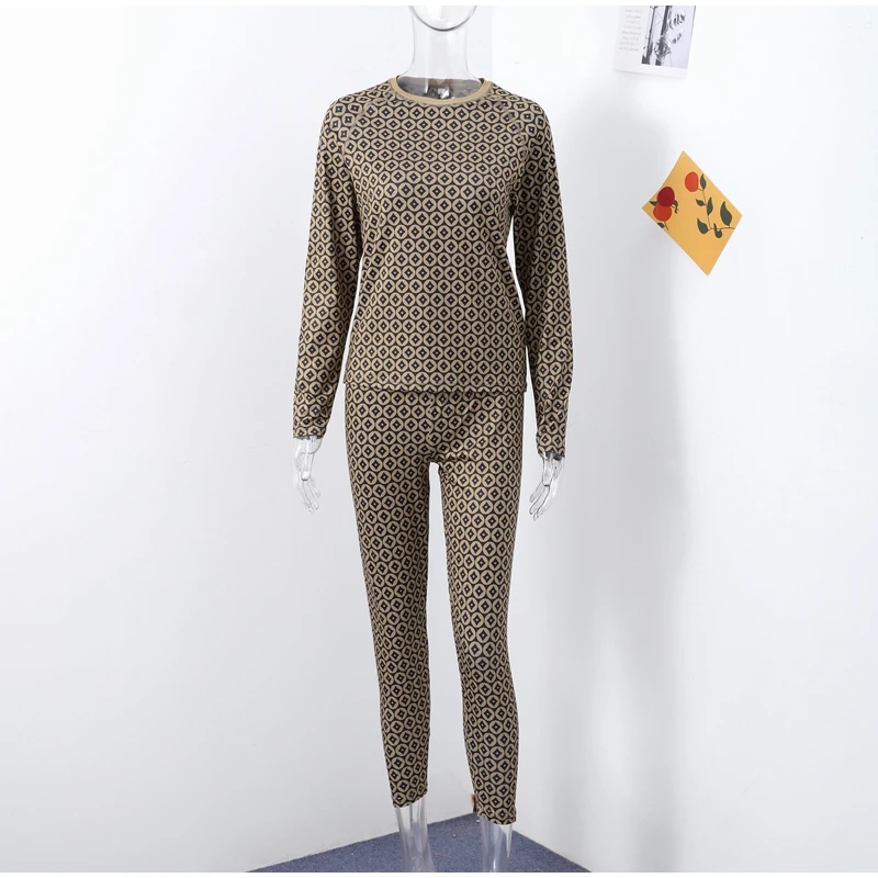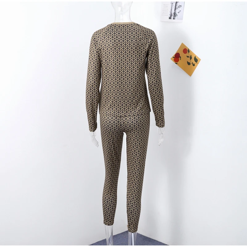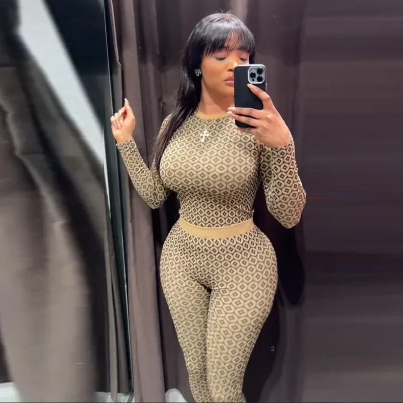 Fashion Slim Print Pants Sets Women Y2K O-neck Long Sleeve Top Stretch Hip Package Pencil Trousers 2025 Spring Sexy Lady Suits