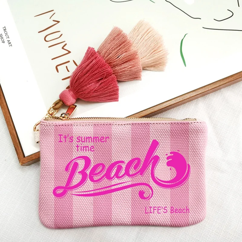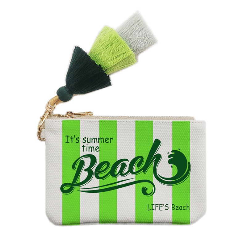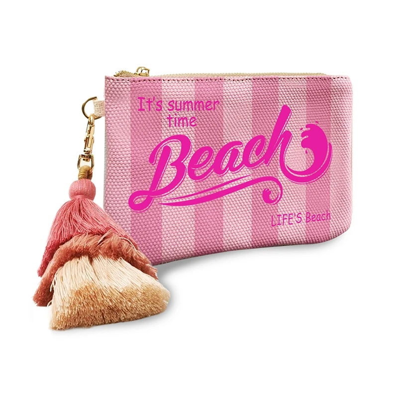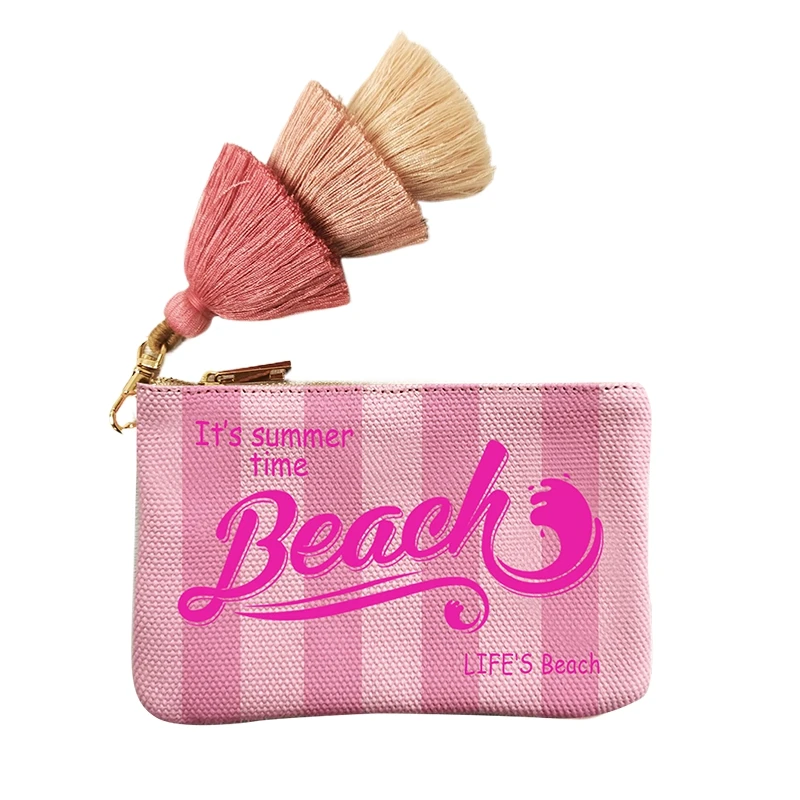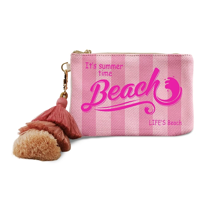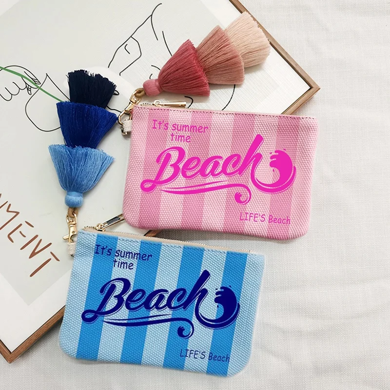 Fashion Solid Vertical Stripe Design Letter Wallets For Women Personality Printing Cotton Clutch Purse Ladies Party Beach Bag