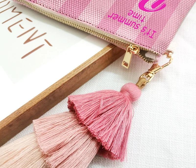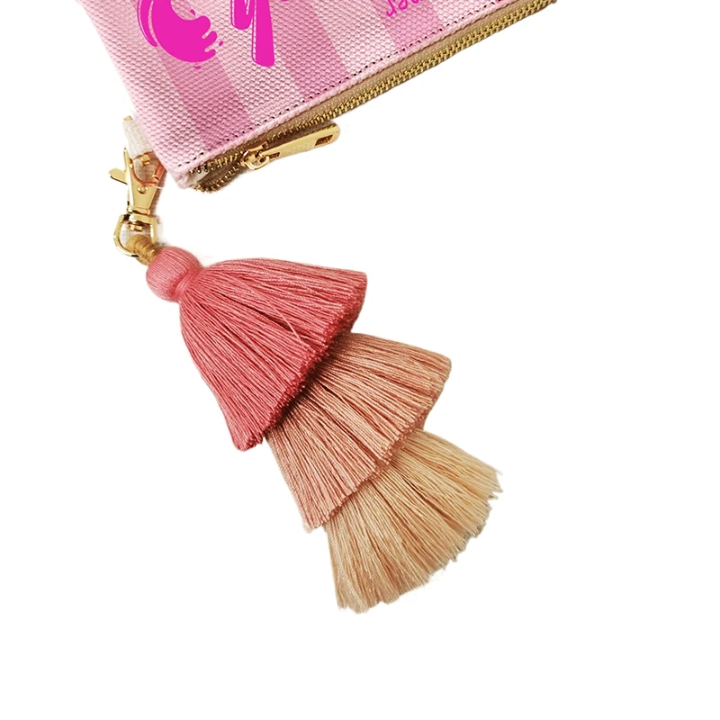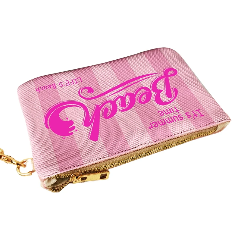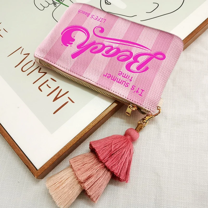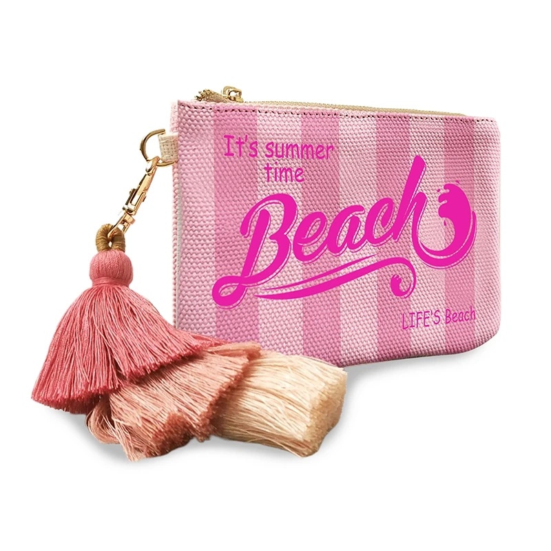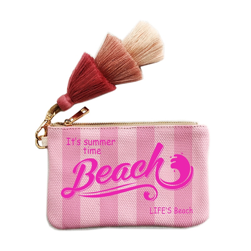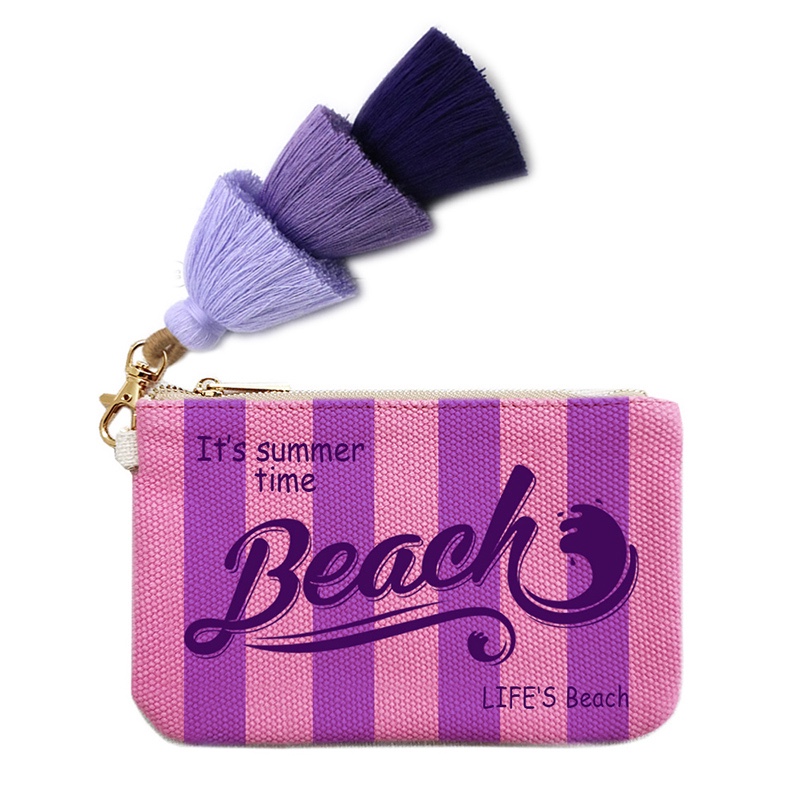 Fashion Solid Vertical Stripe Design Letter Wallets For Women Personality Printing Cotton Clutch Purse Ladies Party Beach Bag