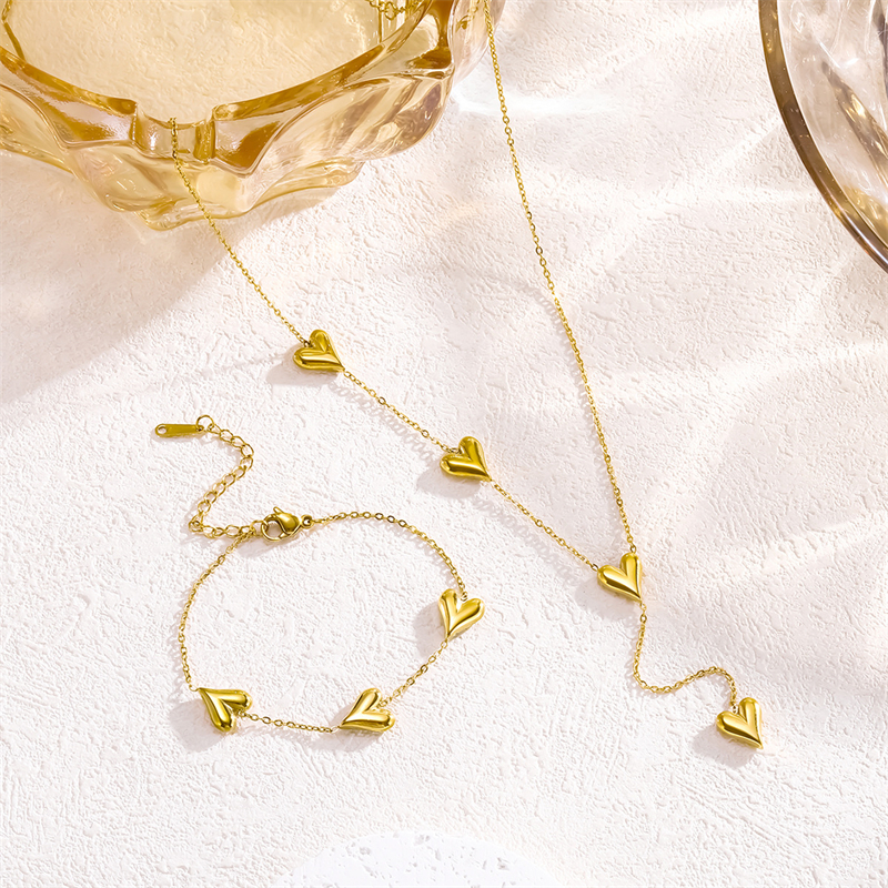 Fashion Stainless Steel Peach Heart Pendant Necklace For Women Gold Color Y-Shaped Tassel Chain Choker Bracelet Party Jewelry