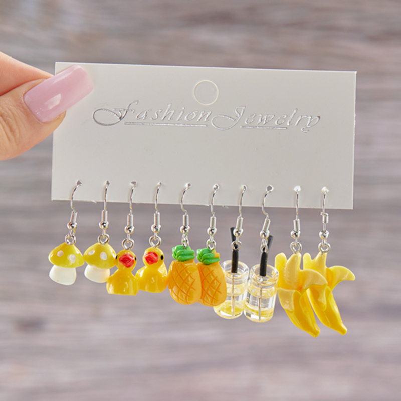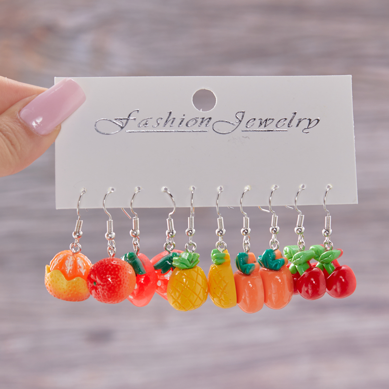 Fashion Sweet Fruit Drink Earrings Set for Women Cute Cartoon Strawberry Cherry Ice Cream Funny Resin Earring Party Jewelry Gift