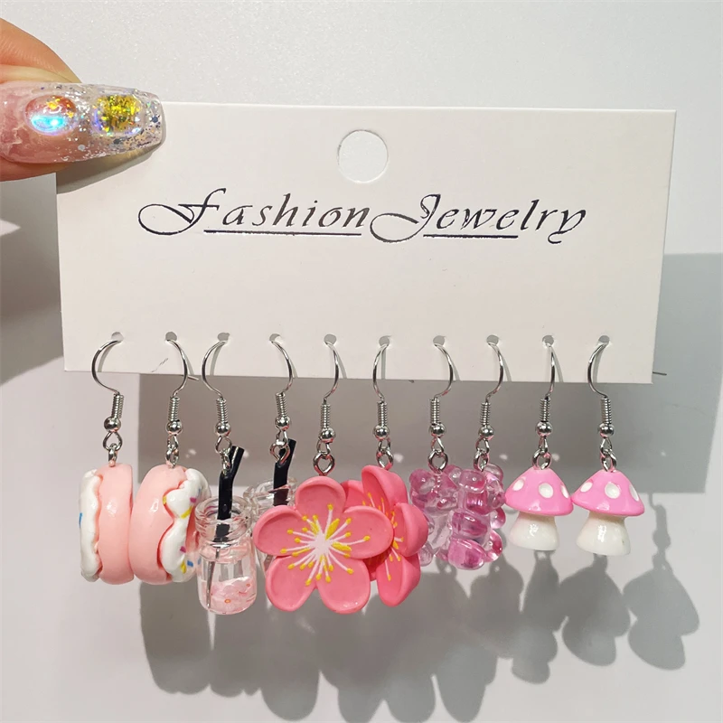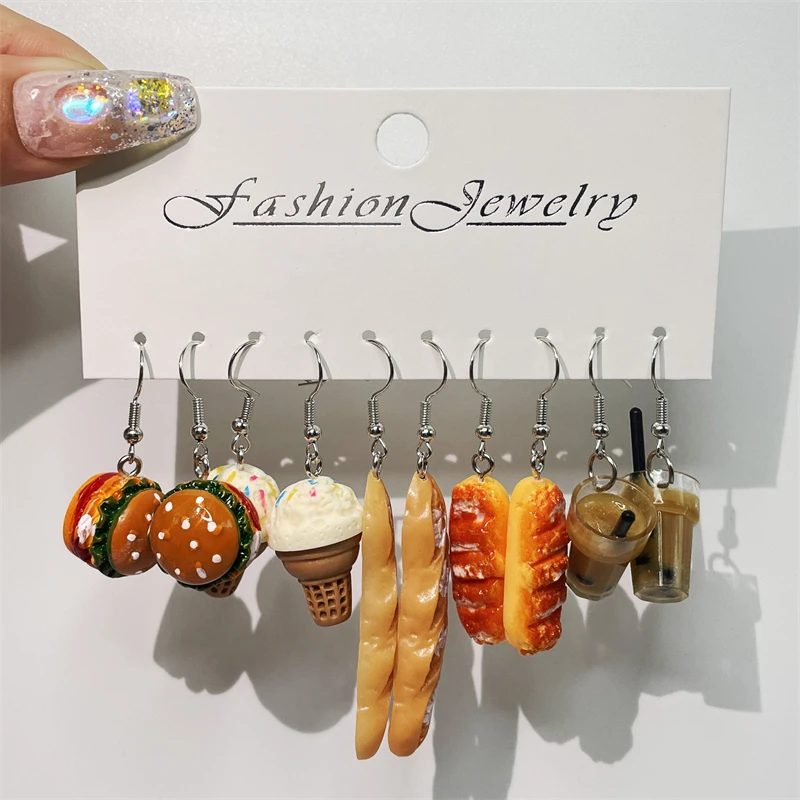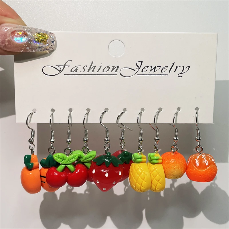 Fashion Sweet Fruit Drink Earrings Set for Women Cute Cartoon Strawberry Cherry Ice Cream Funny Resin Earring Party Jewelry Gift