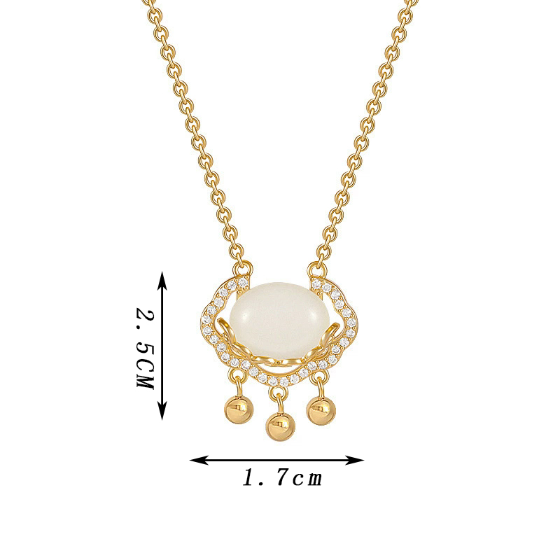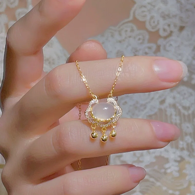 Fashion Sweet Rhinestones Lock Pendant Necklace for Women Golden Short Chain Chokers Neck Oval Acrylic Bell Jewelry Girls Gifts