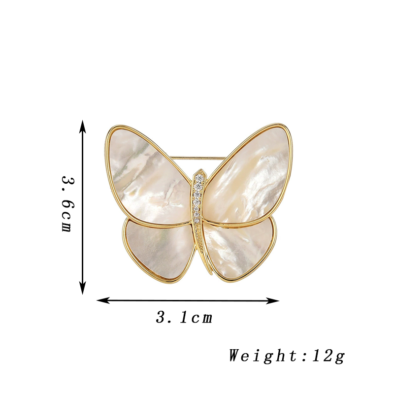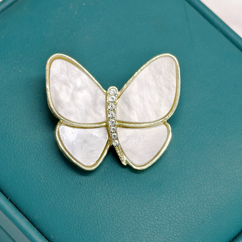 Fashion Temperament Butterfly Brooches for Women Elegant White Acrylic Shell Wings Rhinestone Brooch Pins Clothing Jewelry Gifts