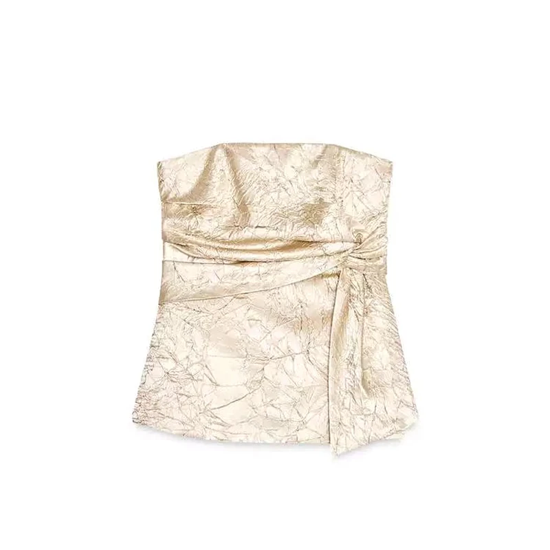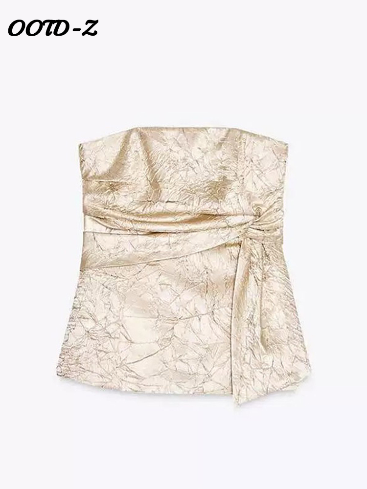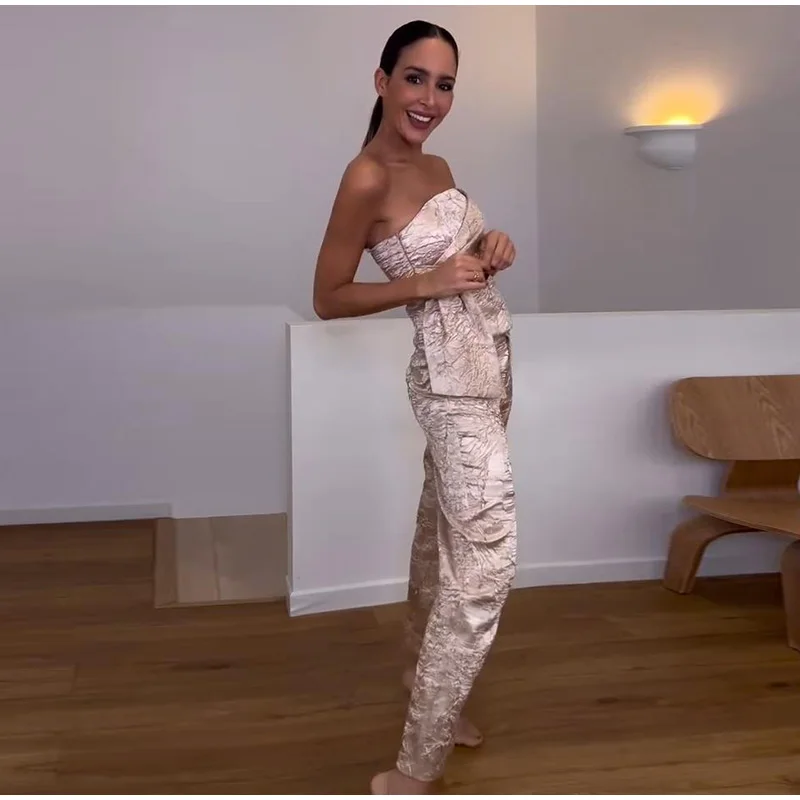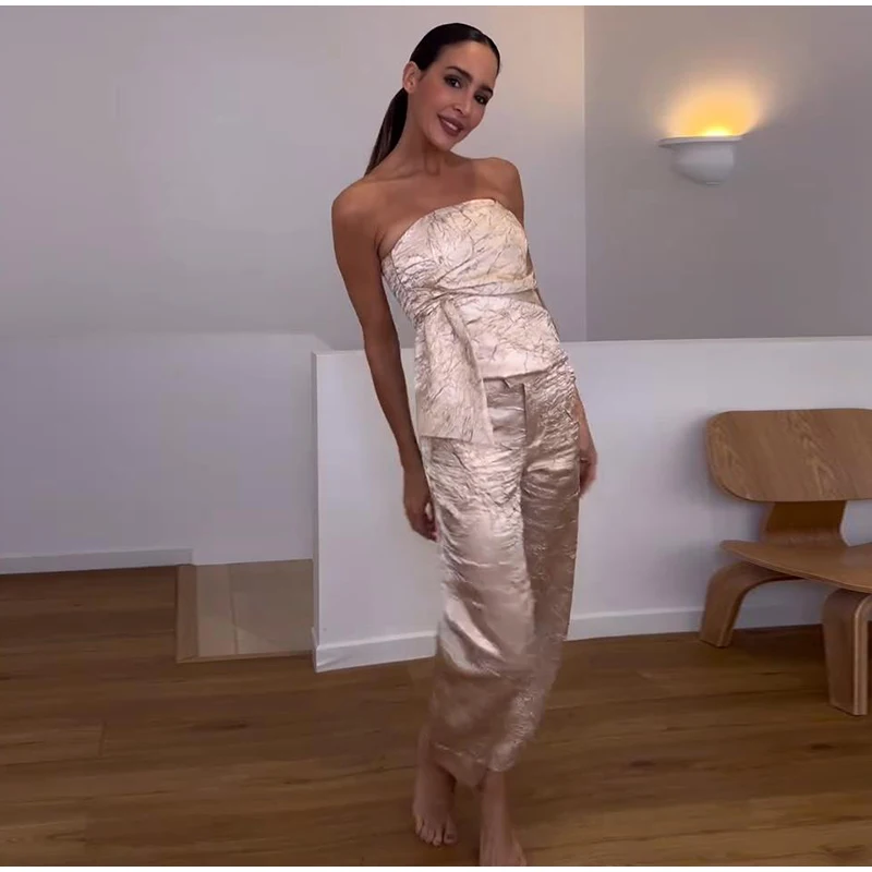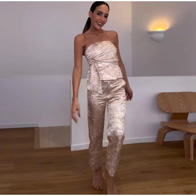 Fashion Trousers Women Set Sleeveless Tube Pleated Tops Straight Pant Suit 2025 Summer High Street Party Lady Pants Sets