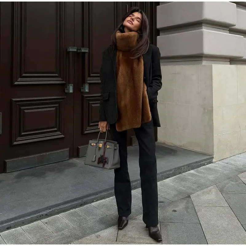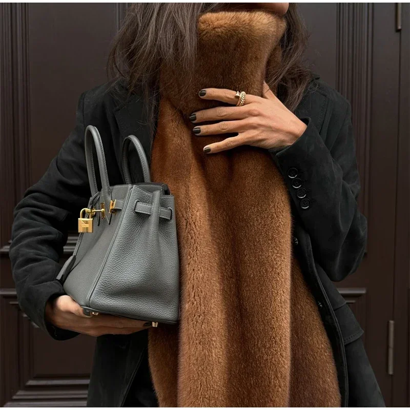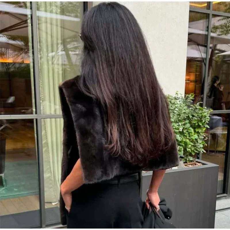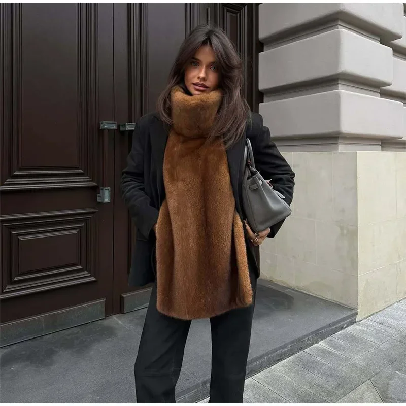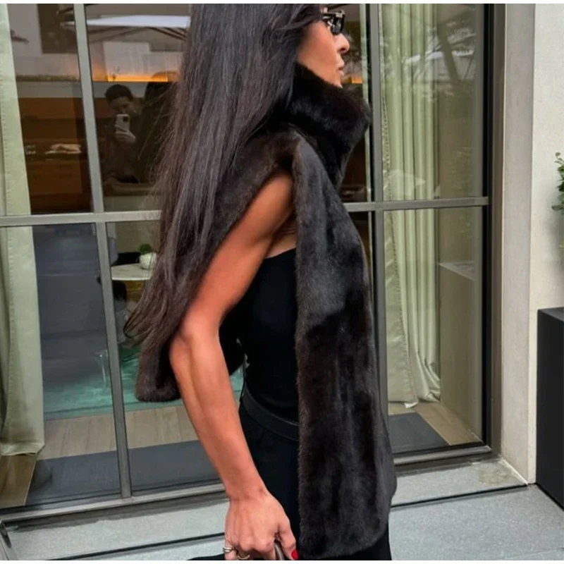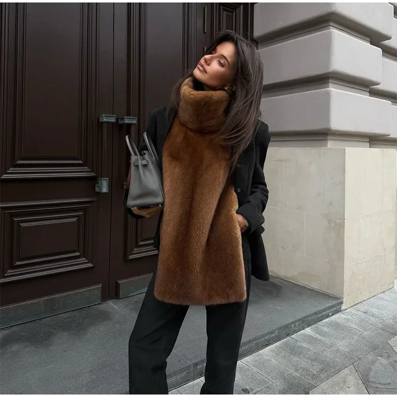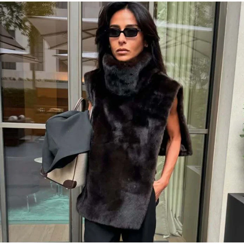 Fashion Turtleneck Furry Waistcoats Women Sleeveless Thick Warm Female Cape Vests 2025 Spring Lady High Street New in Outwears