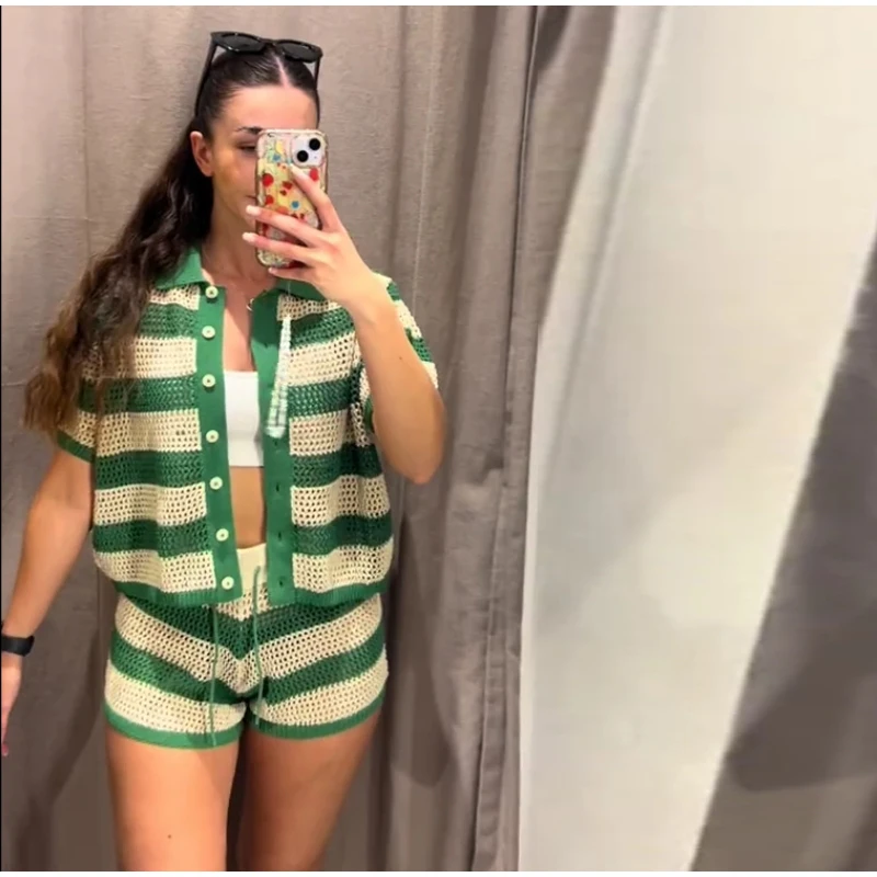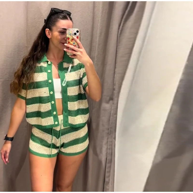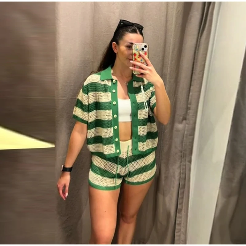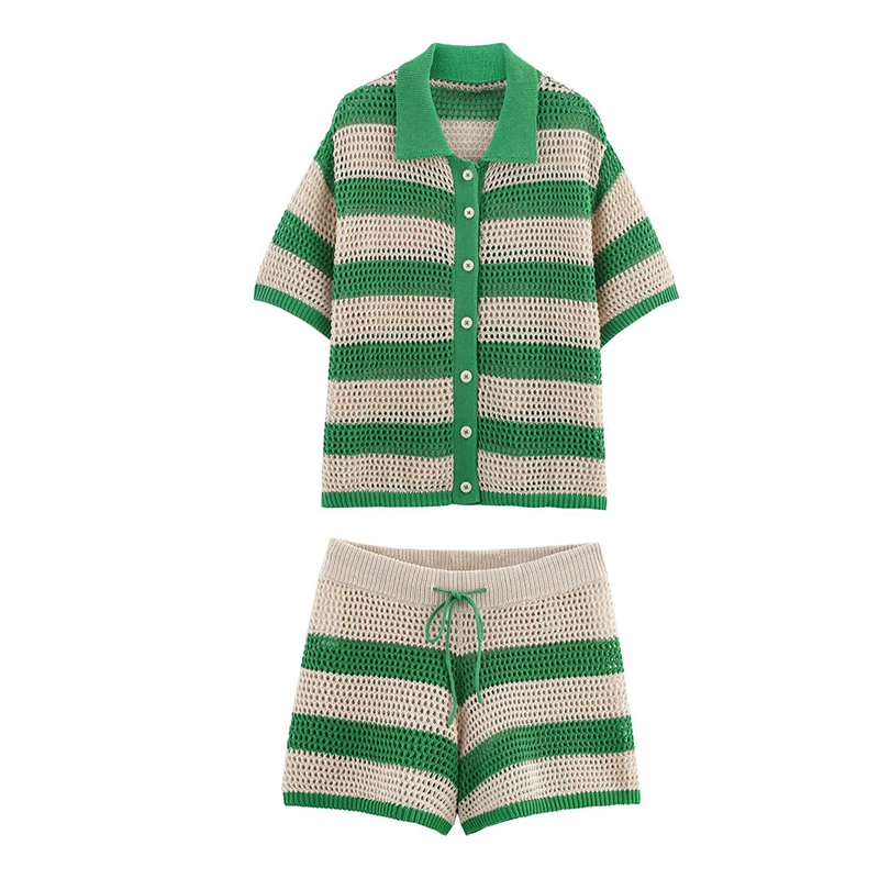 Fashion Two Piece Shorts Set Women Striped Loose Lapel Shirt Elastic Waist Shorts Suit 2025 Summer Lady Beach Vacation Outfits