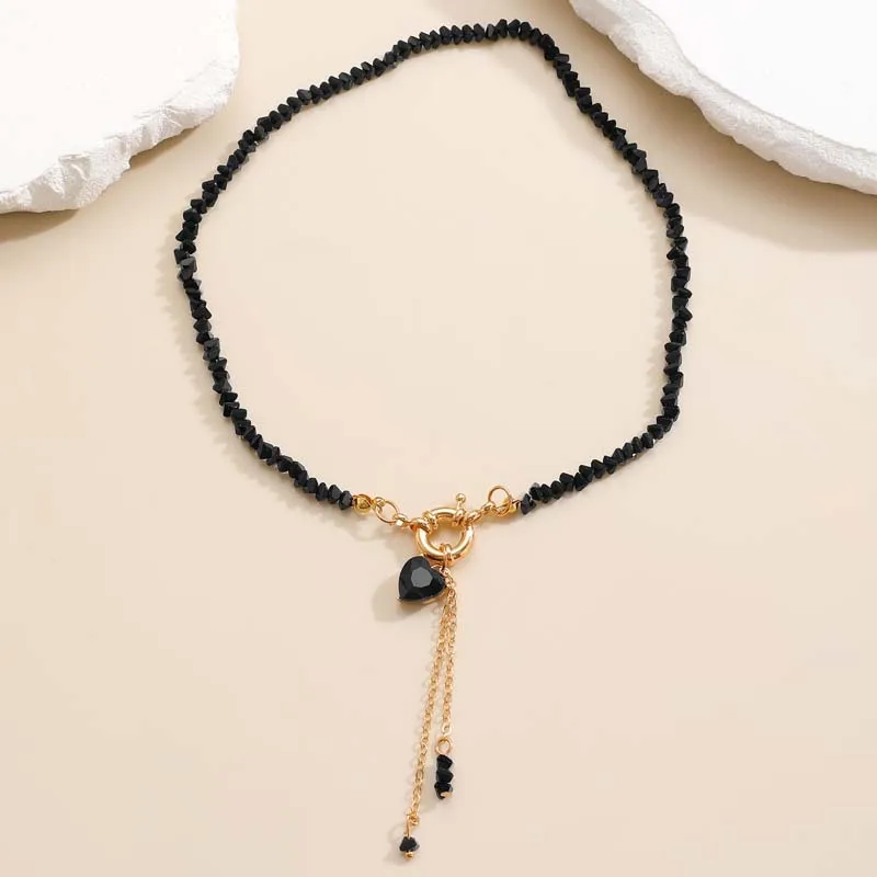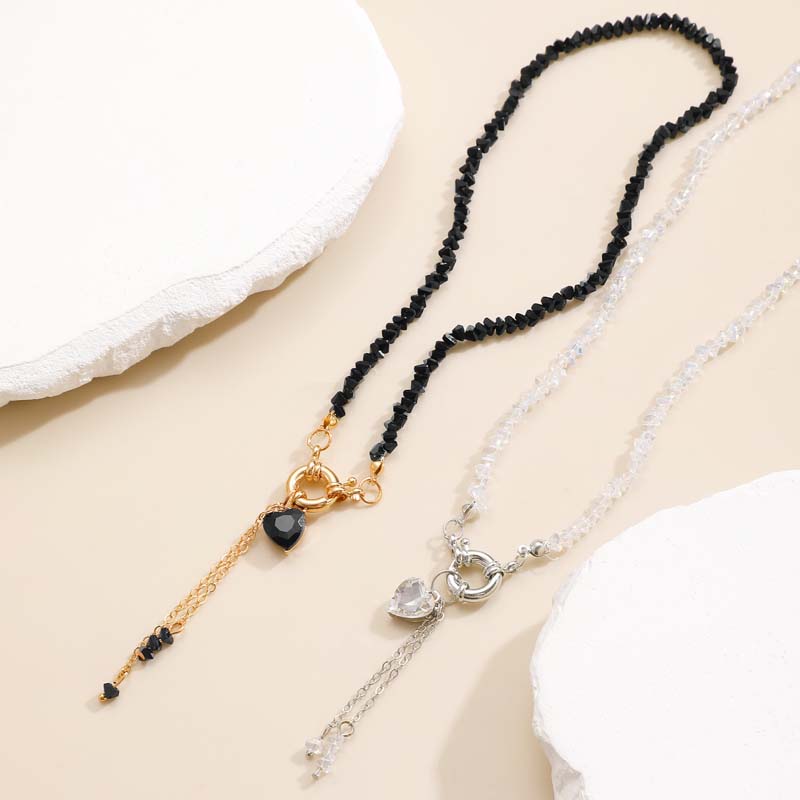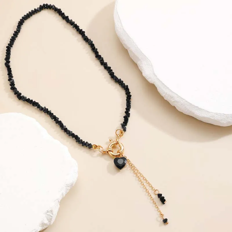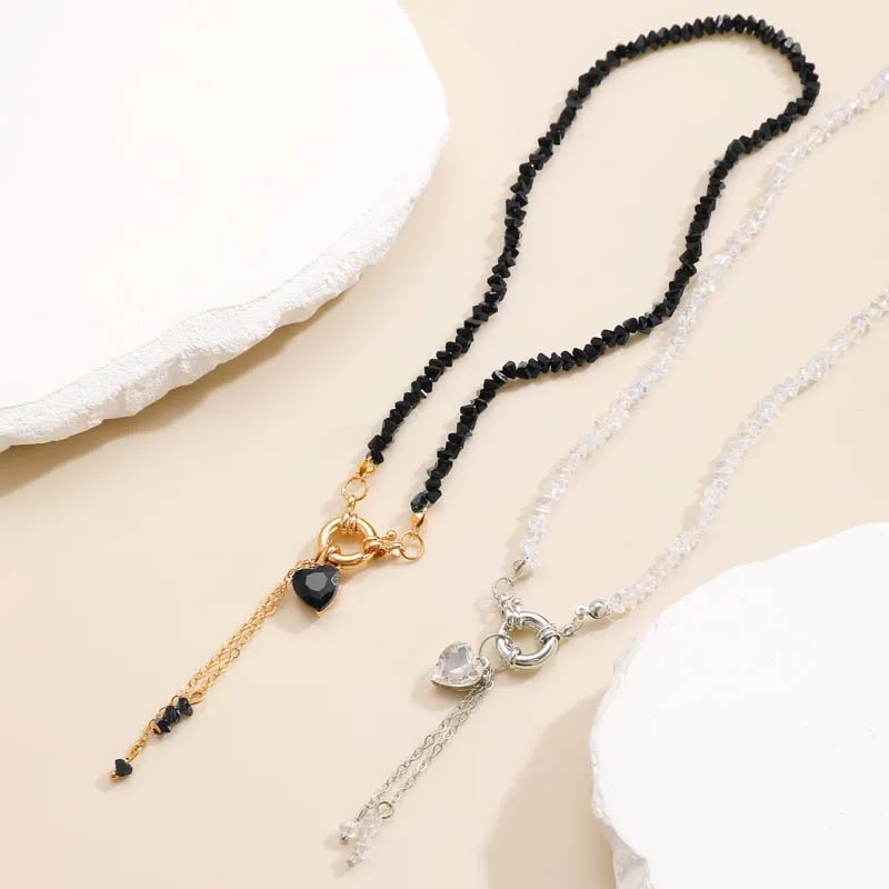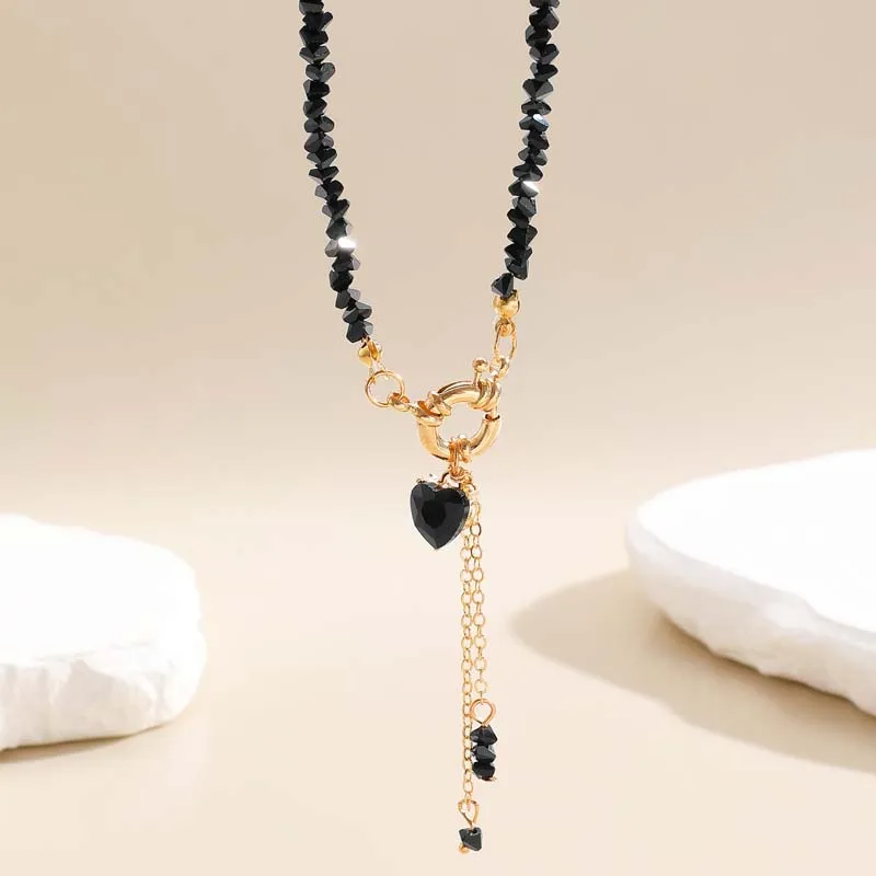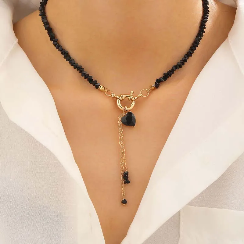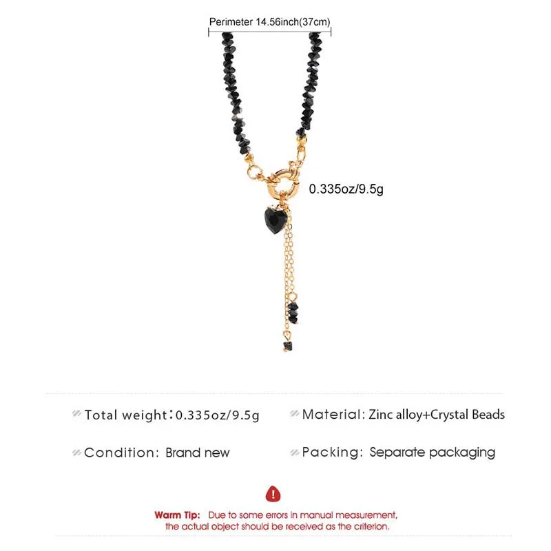 Fashion Vintage Black Geometric Crystal Chain Zircon Crystal Heart-shaped Pendant Necklace For Women Female Boho Jewelry