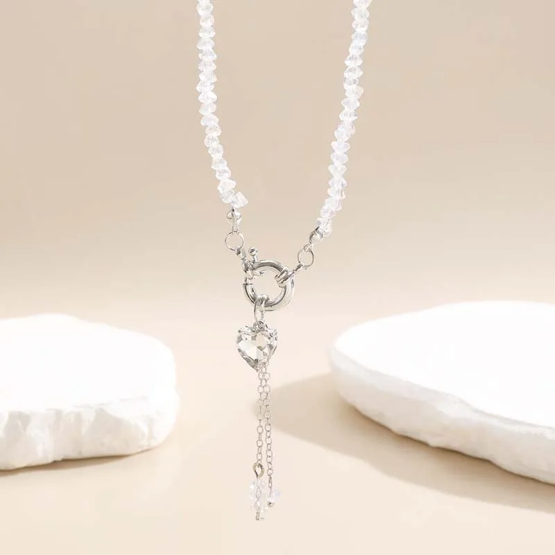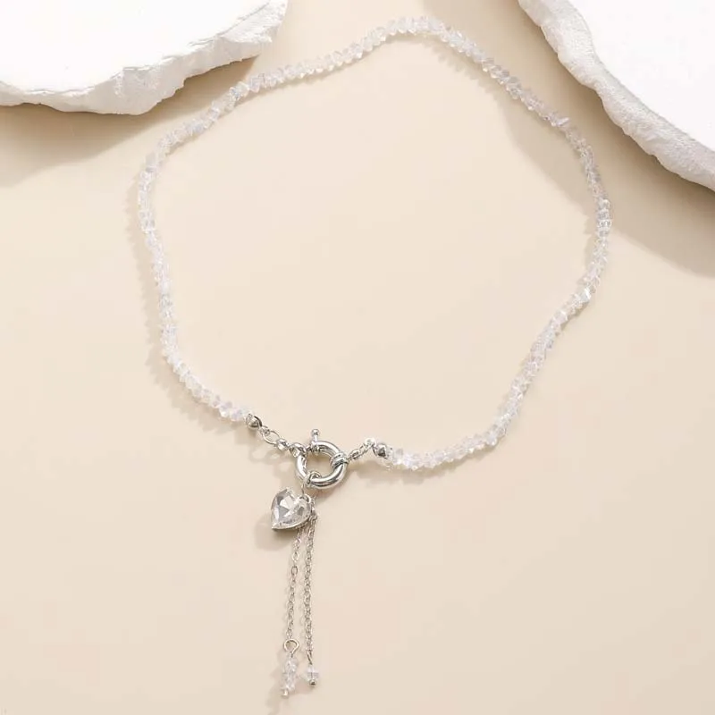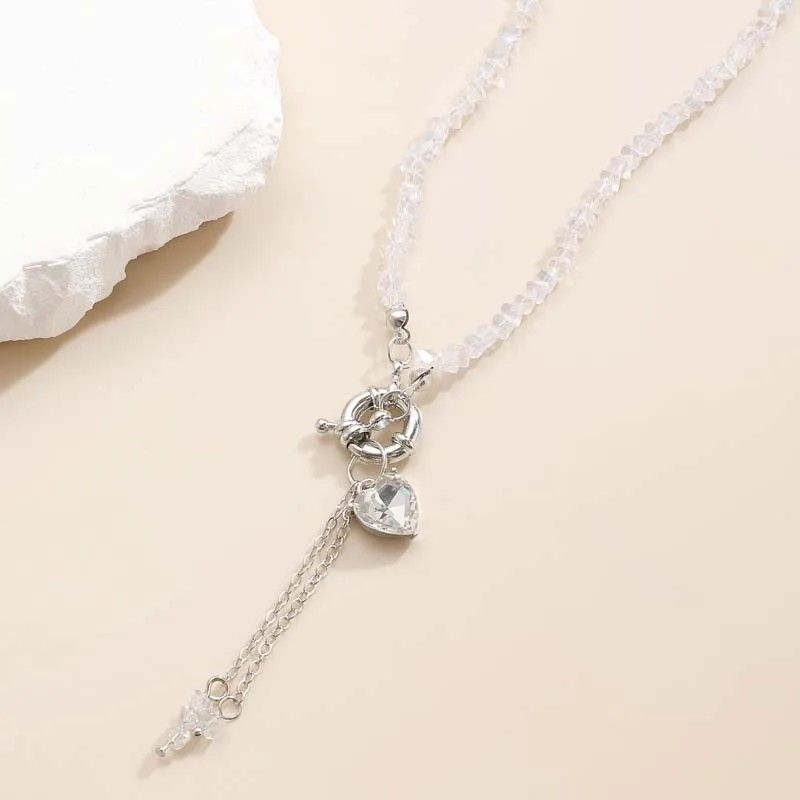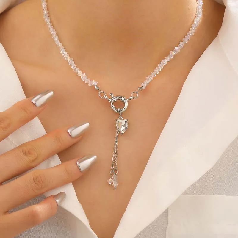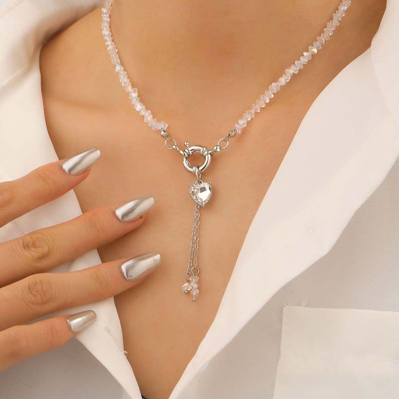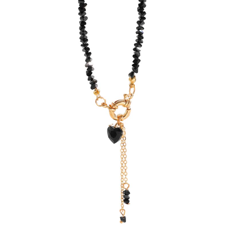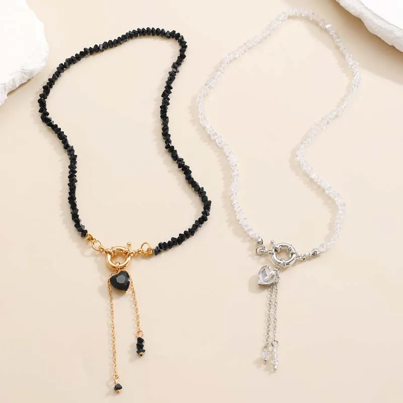 Fashion Vintage Black Geometric Crystal Chain Zircon Crystal Heart-shaped Pendant Necklace For Women Female Boho Jewelry