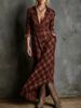 Fashion Vintage Waisted Long Dress for Women Comfy Long Sleeve Plaid Single-breasted Maxi Dress Female Casual Vestidos Robe