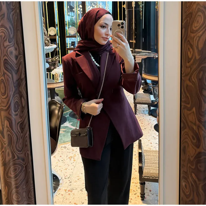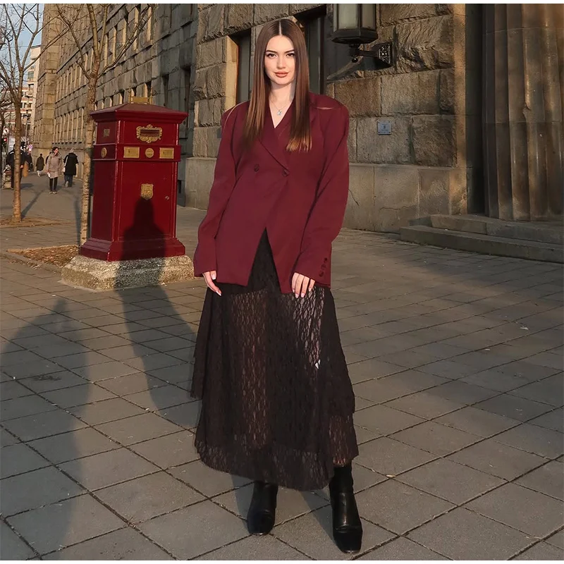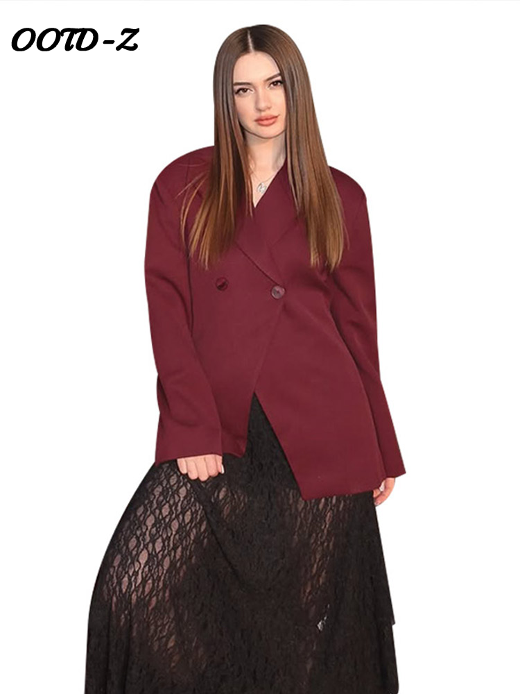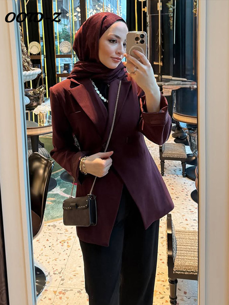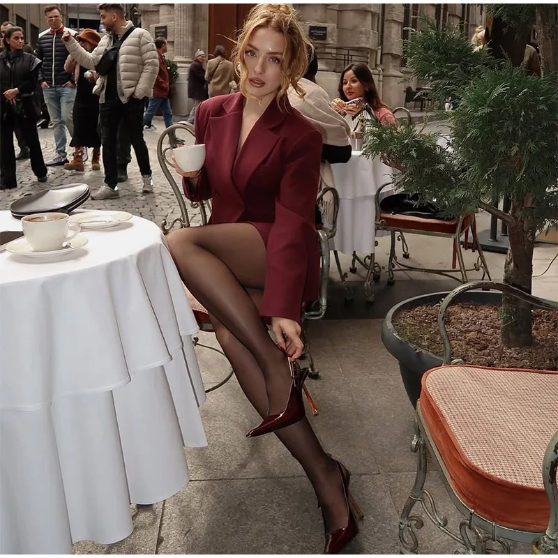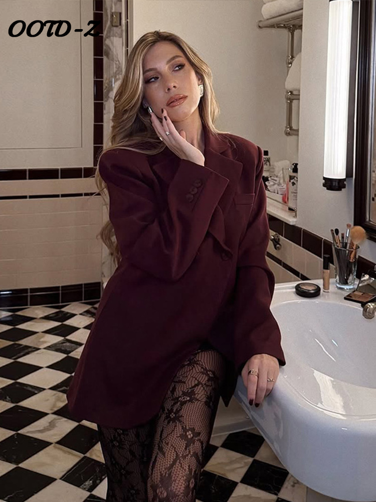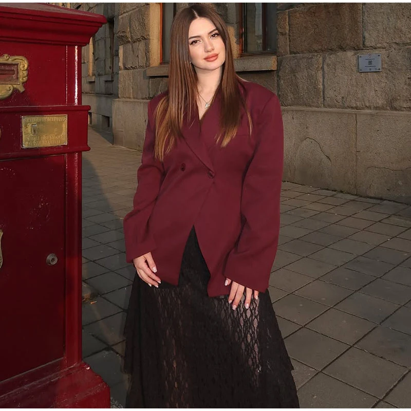Fashion Wine Red Women Blazer Set Casual Long Sleeve Single Breasted Lapel Female Suit 2025 Spring Streetwear Lady Suits